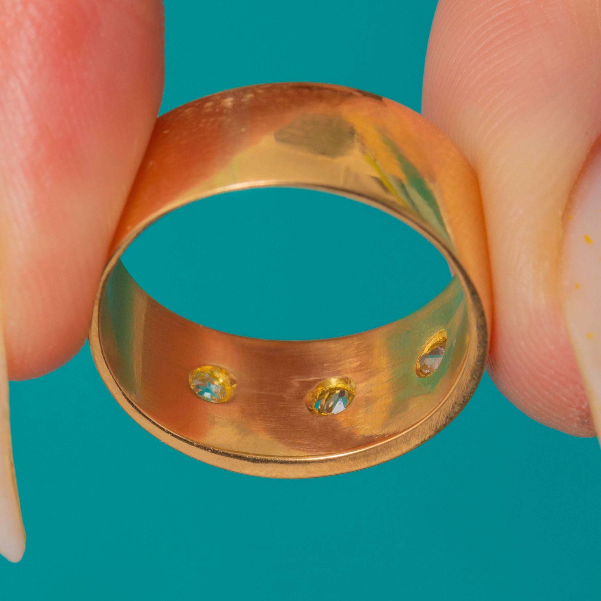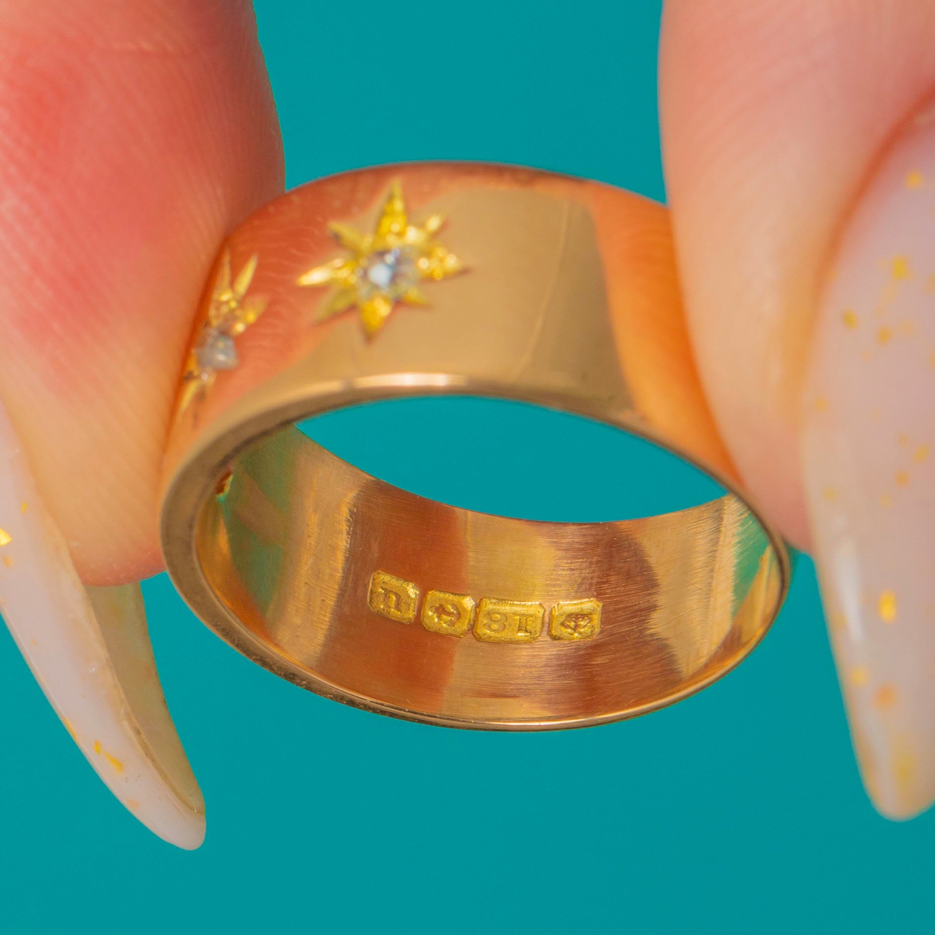 Evoking the romance of 19th-century craftsmanship, this timeless band is fully hallmarked for Birmingham and dating to 1869—an elegant classic that moves effortlessly from everyday to evening.