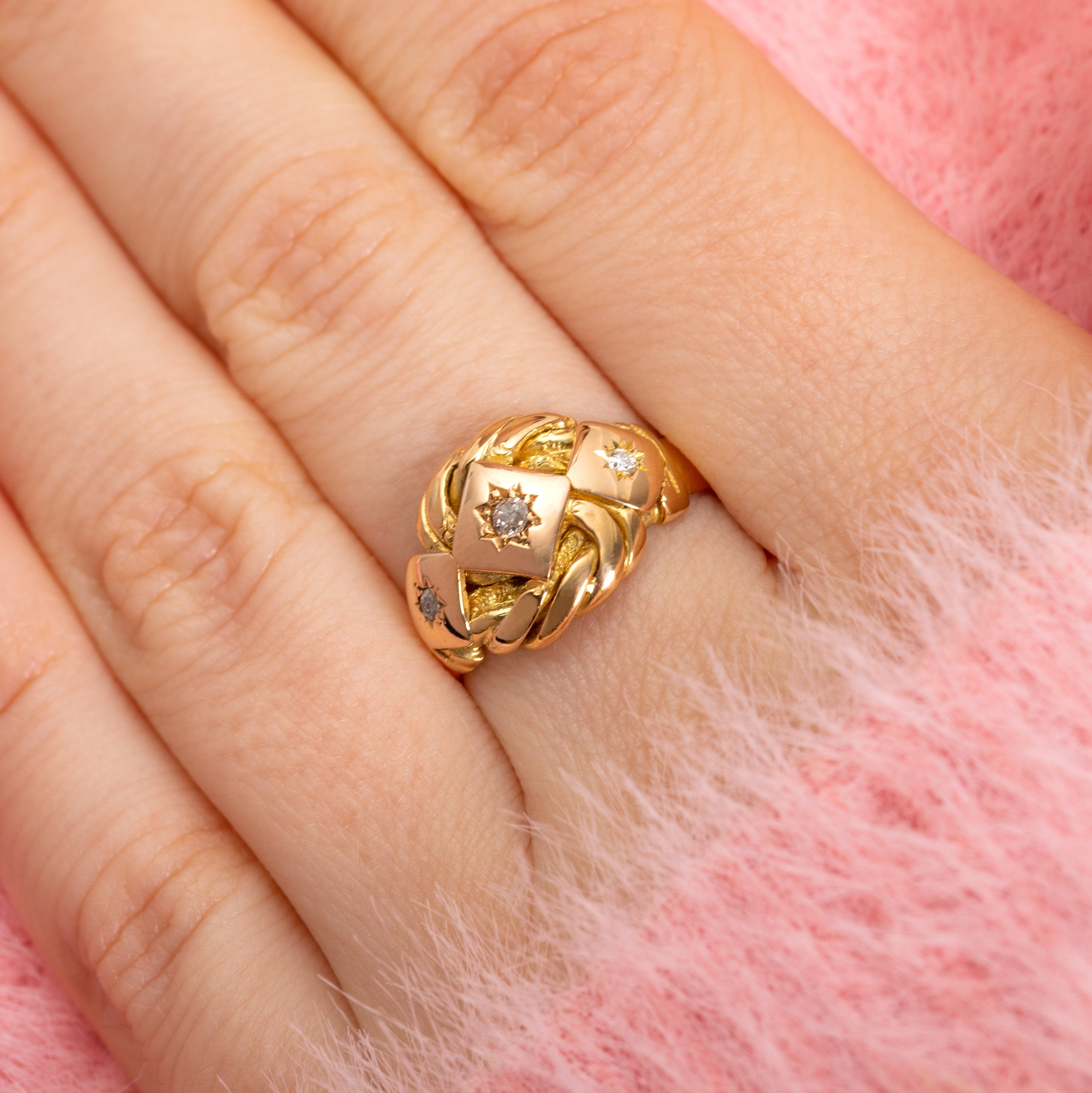 Antique 18ct Gold Diamond Trilogy Knot Ring
