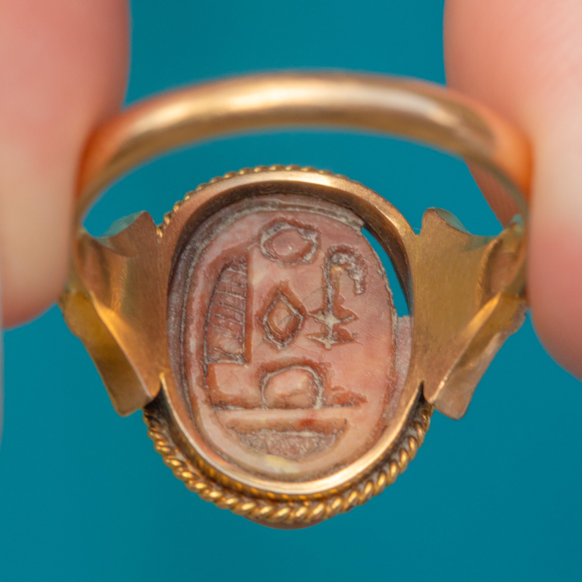 MATERIALS: Tests as 18ct Gold, Faience Scarab.