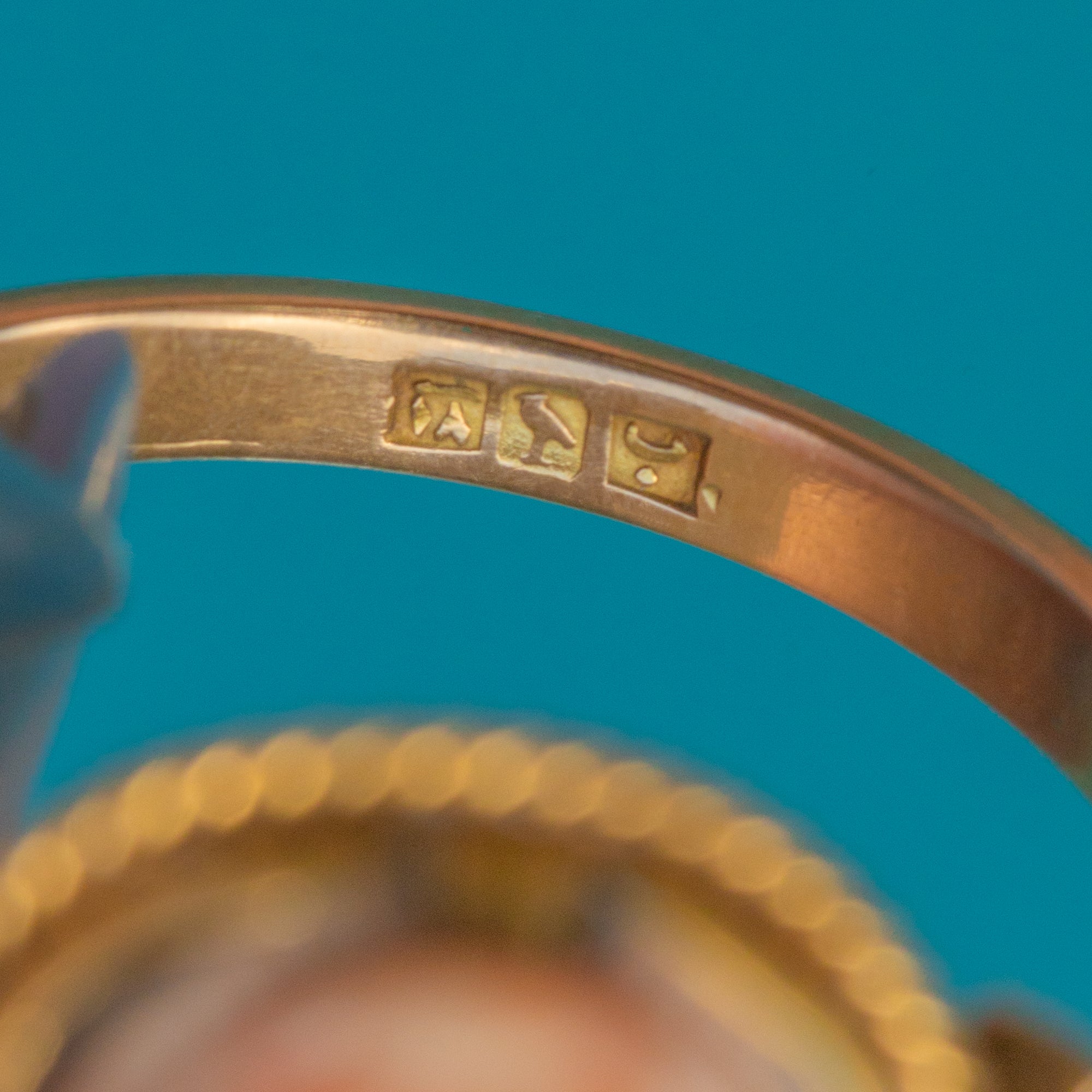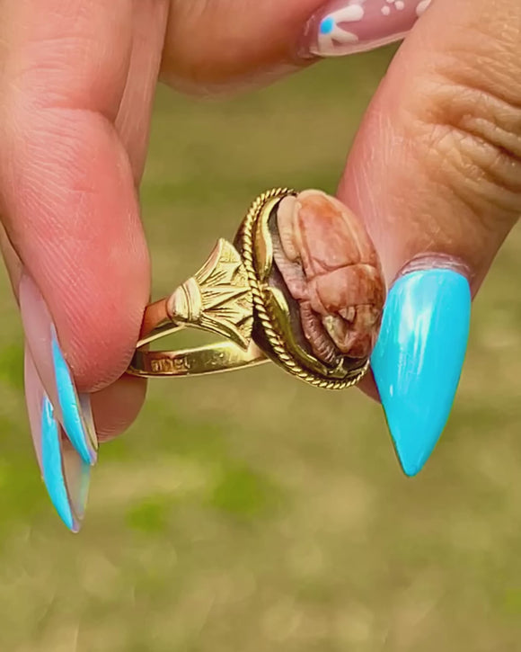 Egyptian revival jewellery rose to popularity in 1922 after the discovery of Tutankhamun's tomb, sparking a wave of jewellery inspired by the ancient motifs of Egypt. The inside of the band has Egyptian stamps, further enhancing its authentic allure.