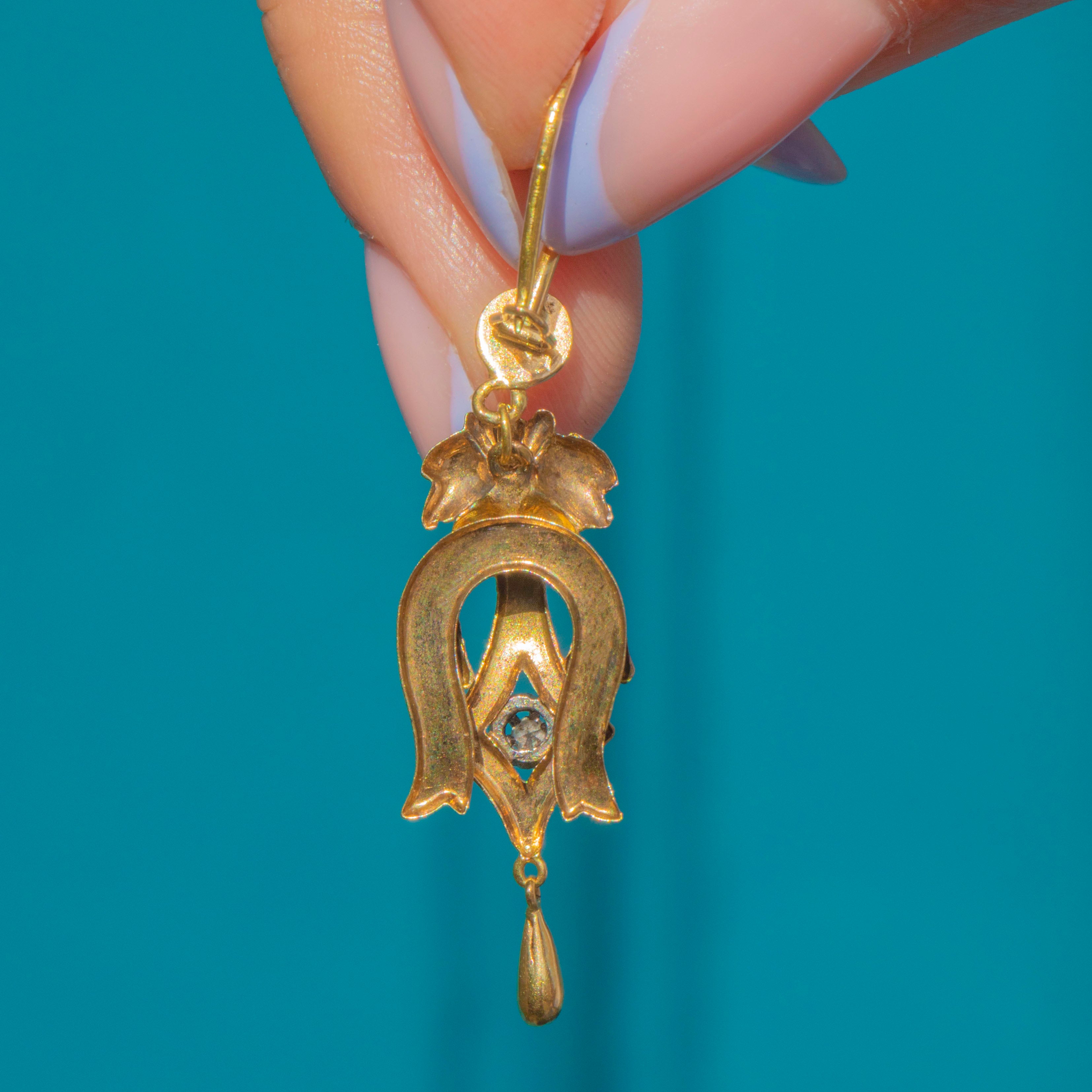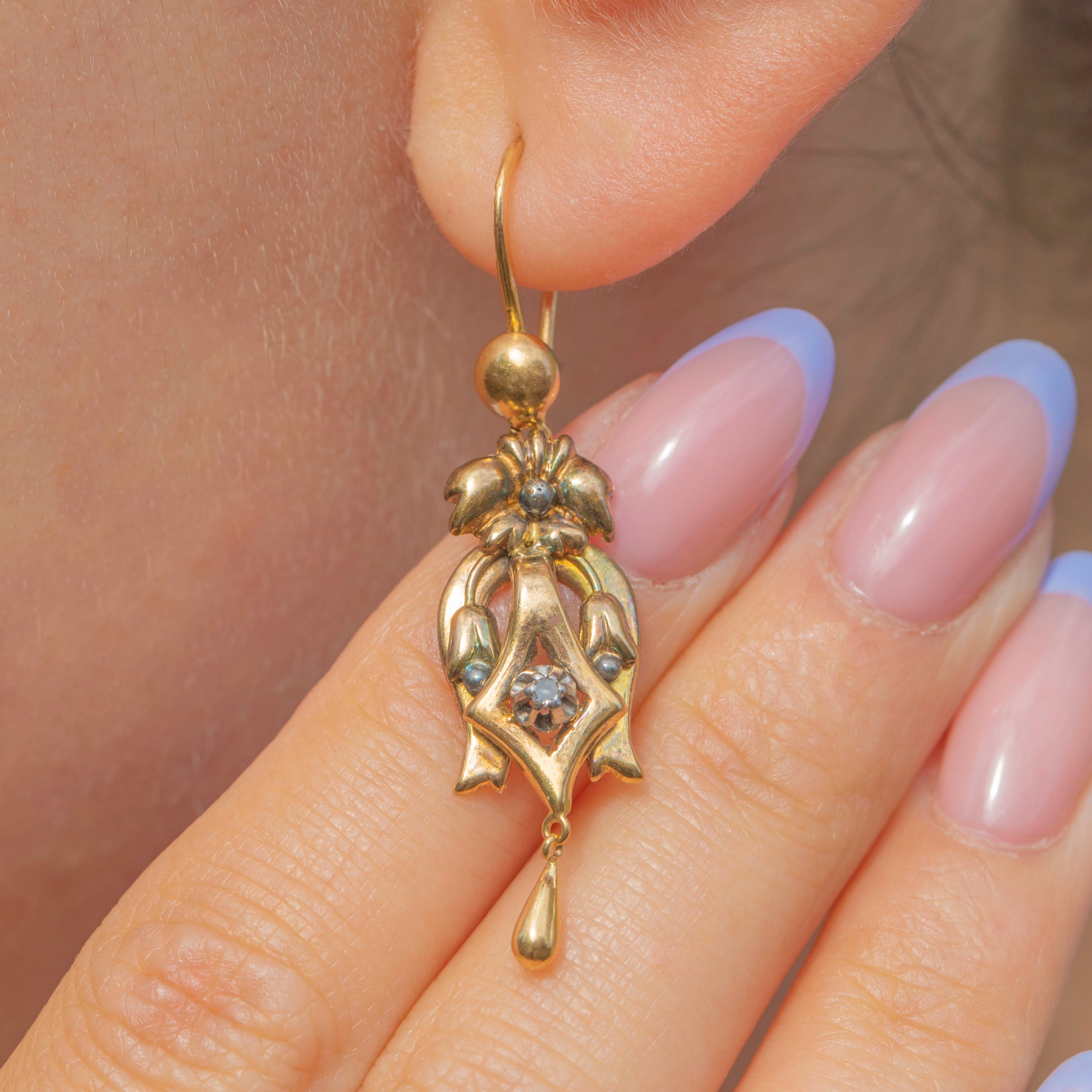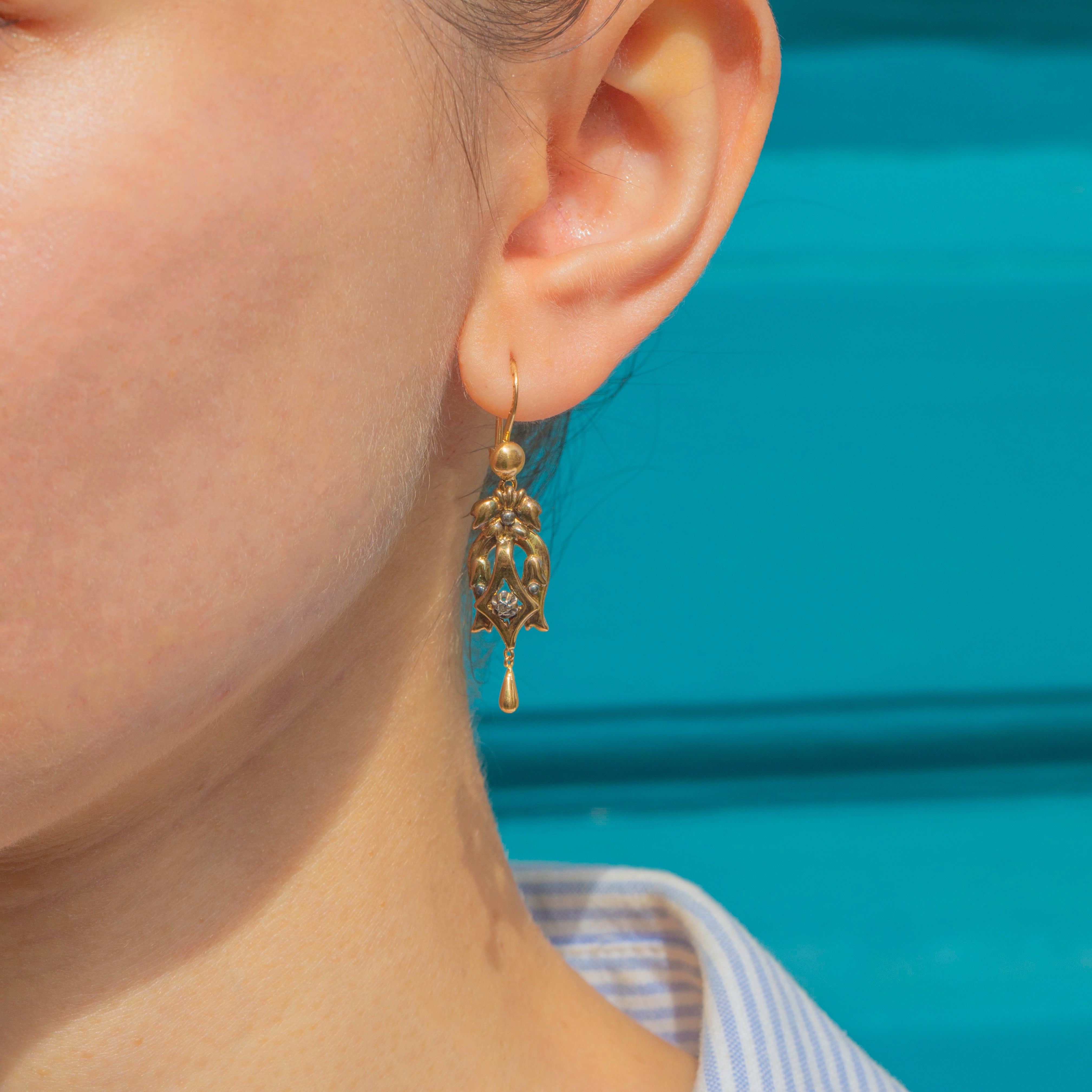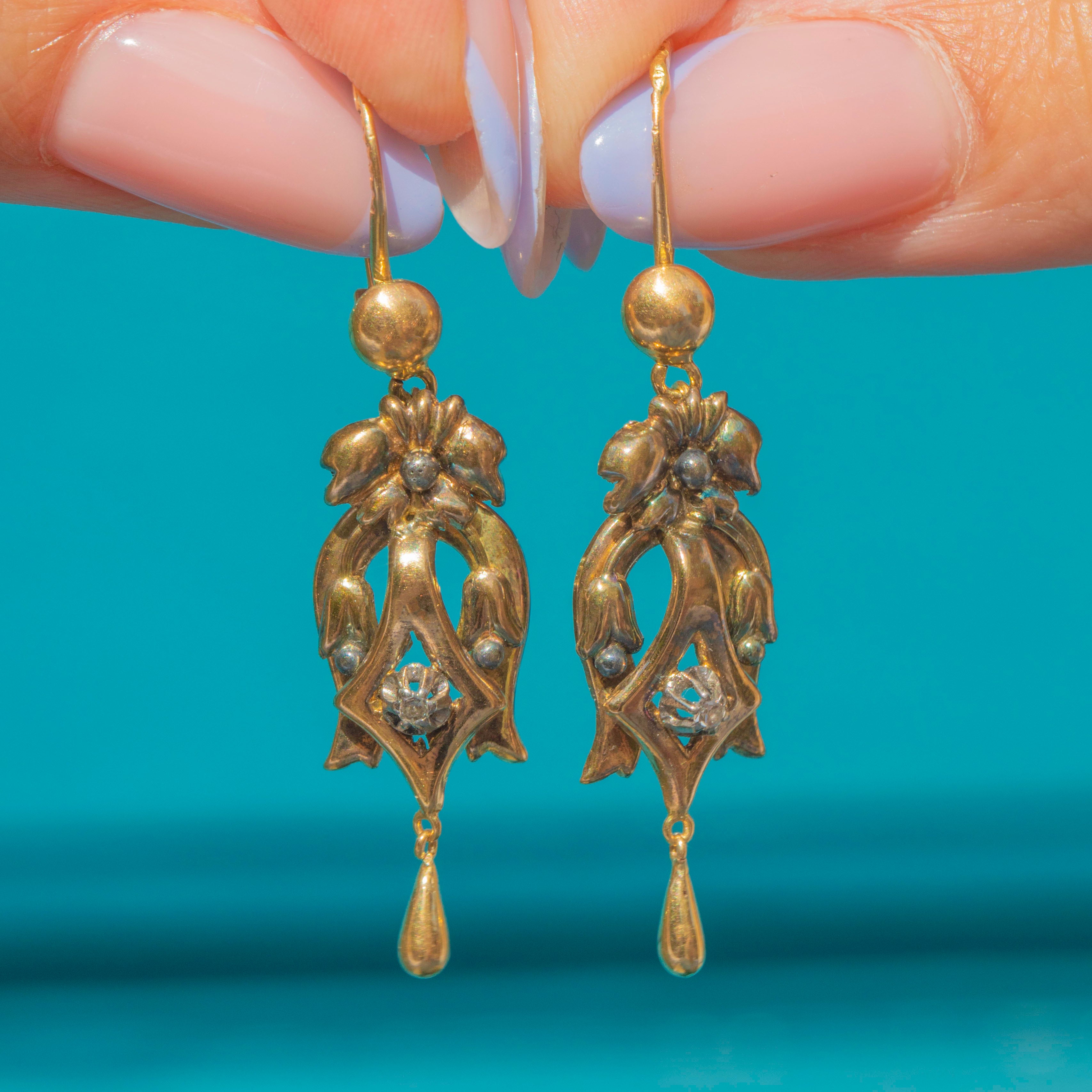 These Victorian 18ct Gold floral Diamond drop earrings are a radiant pair!