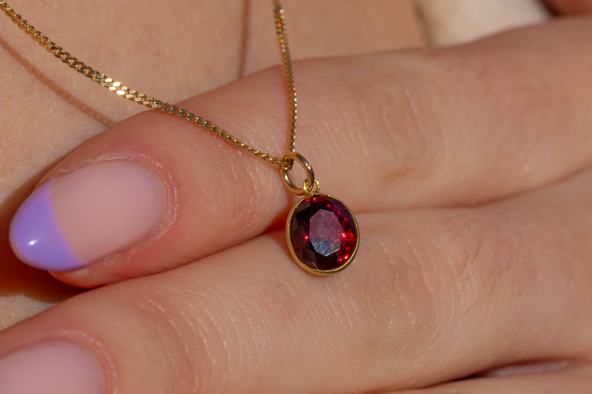 MATERIALS: Tests as 18ct Gold throughout, Garnet (1.35ct).