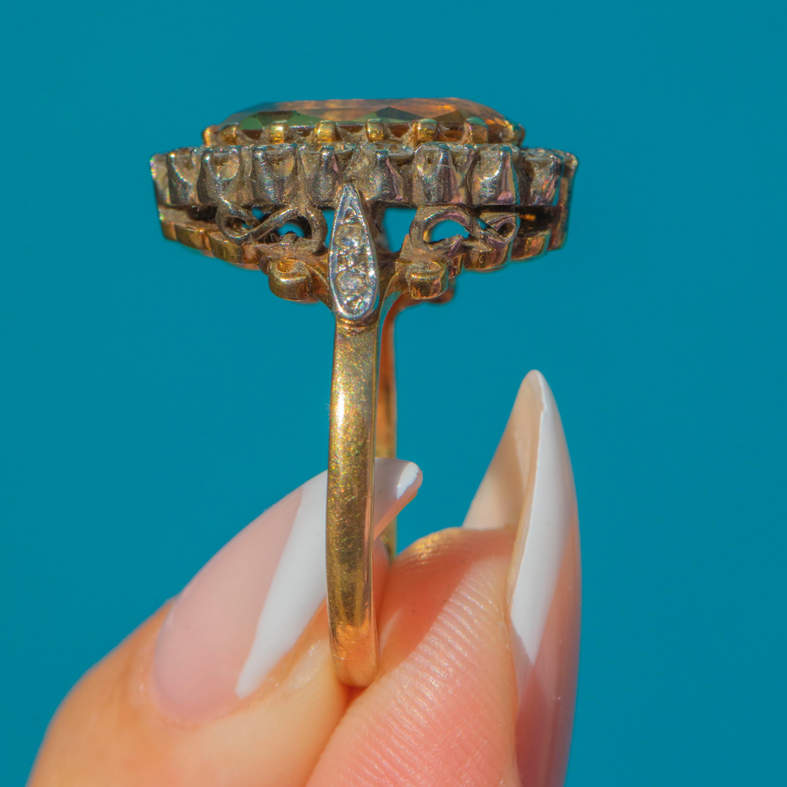 Antique 18ct Gold Imperial Topaz Diamond Cluster ring