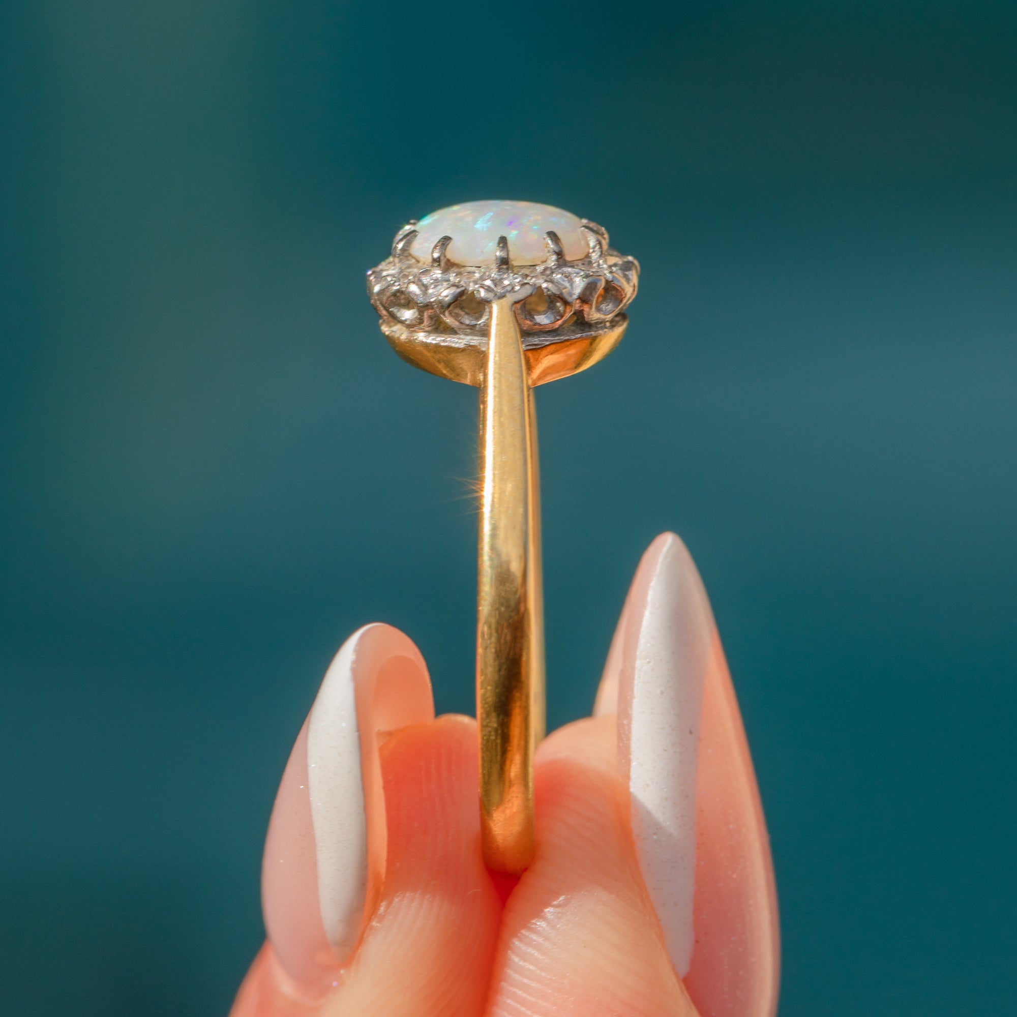Antique 18ct Gold Opal Diamond Cluster Ring, 0.29ct Opal