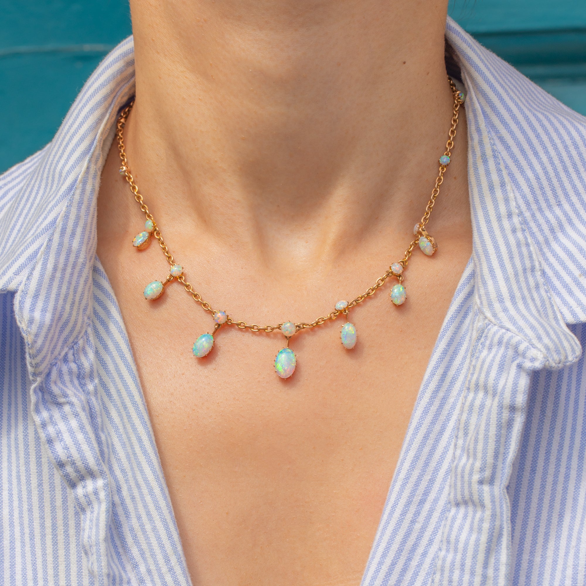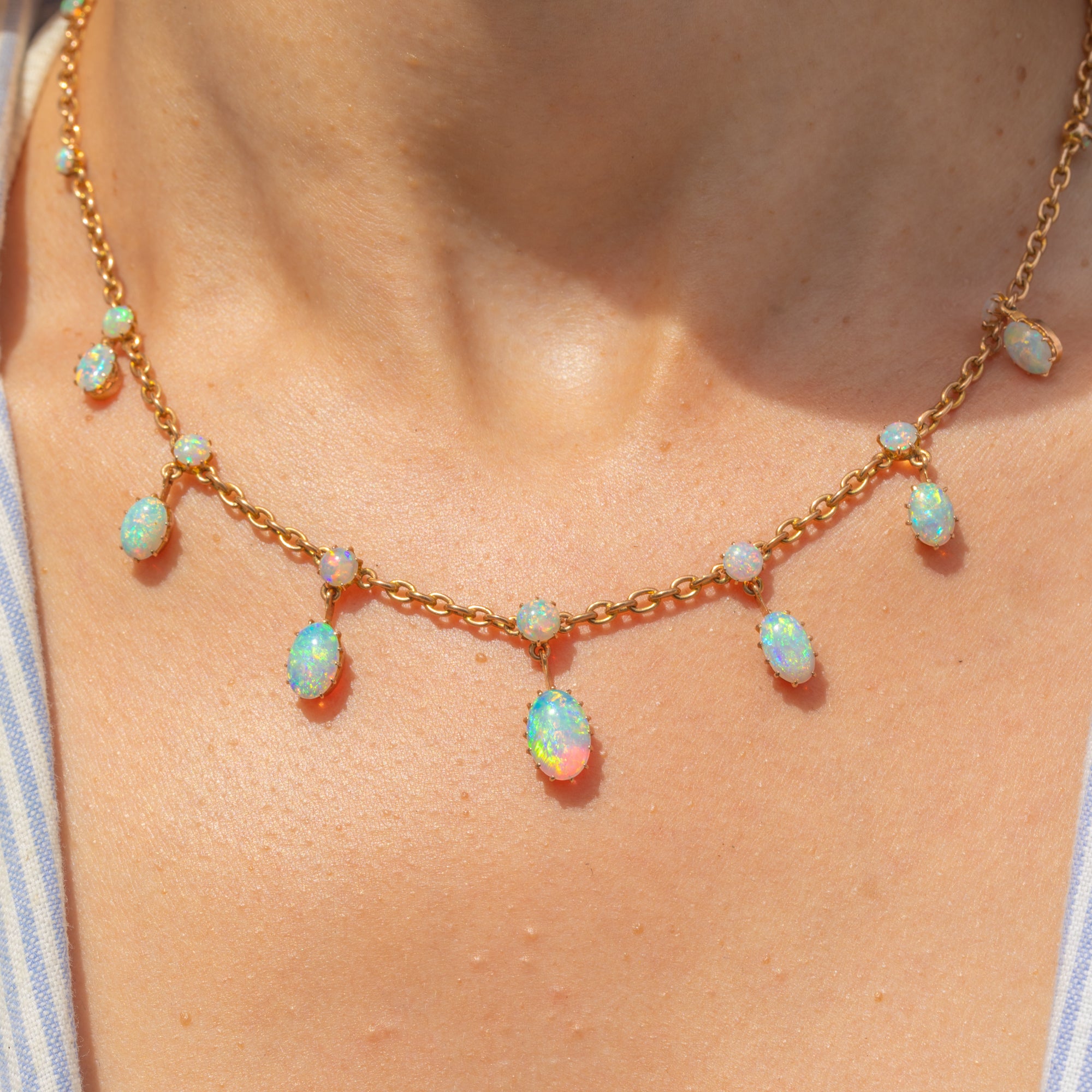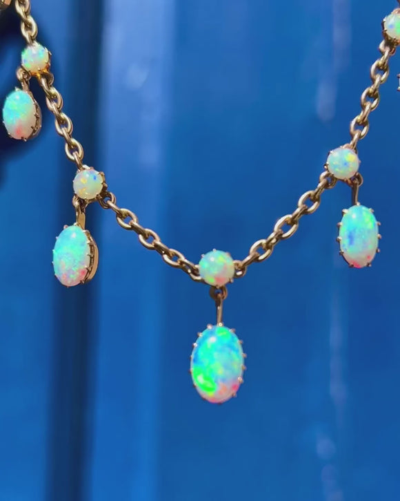 Antique 18ct Gold Opal Fringe Necklace, 6.75ct, in Antique Fitted Box