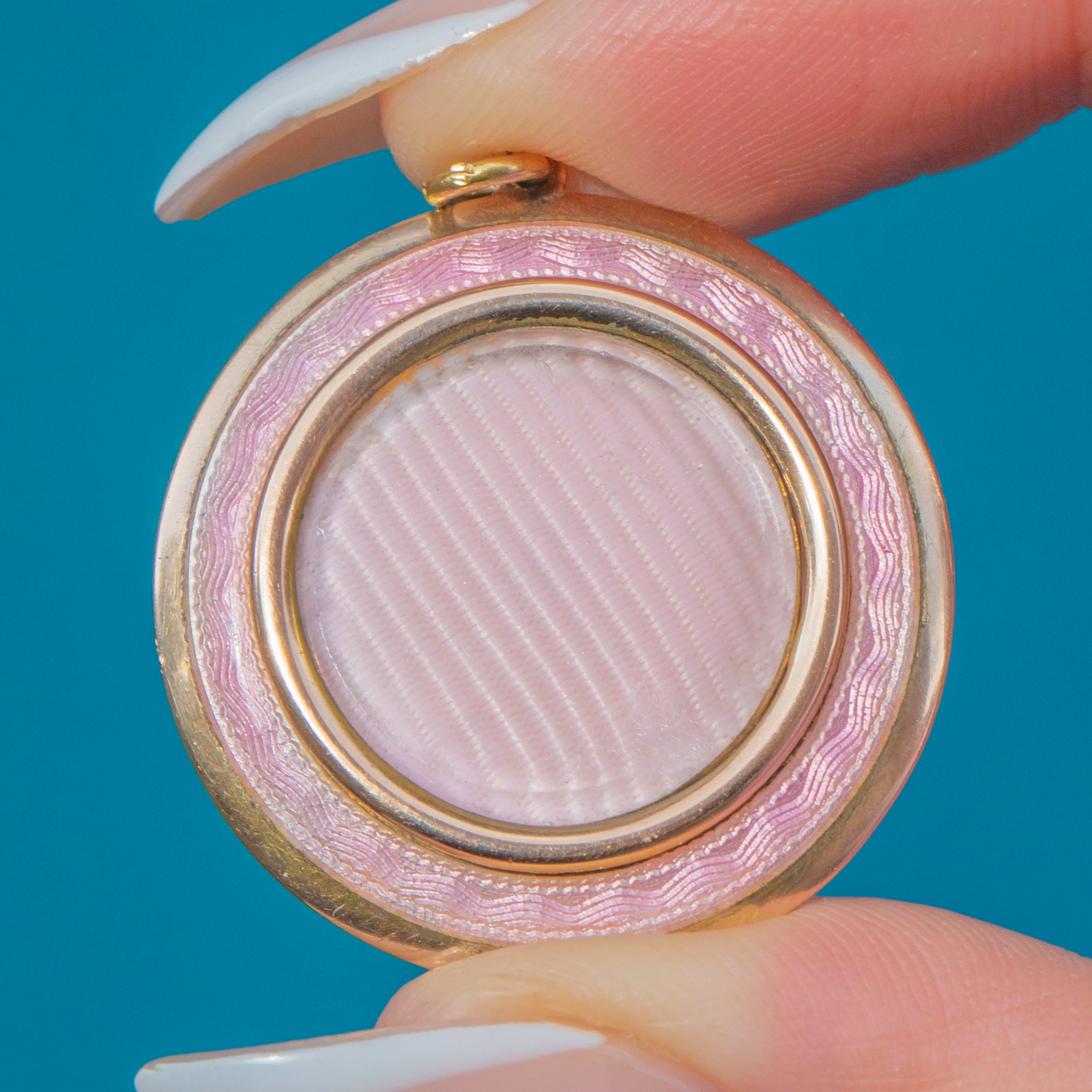 Antique 18ct Gold Pink Enamel Pearl Locket-Back Pendant