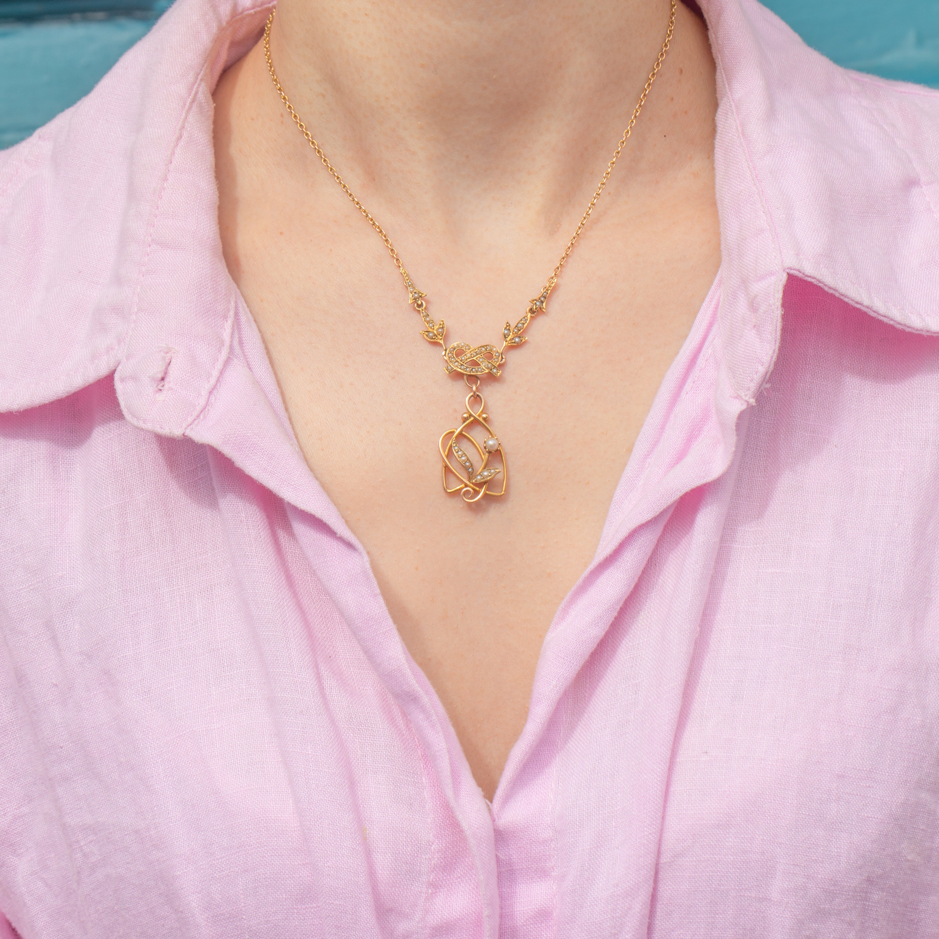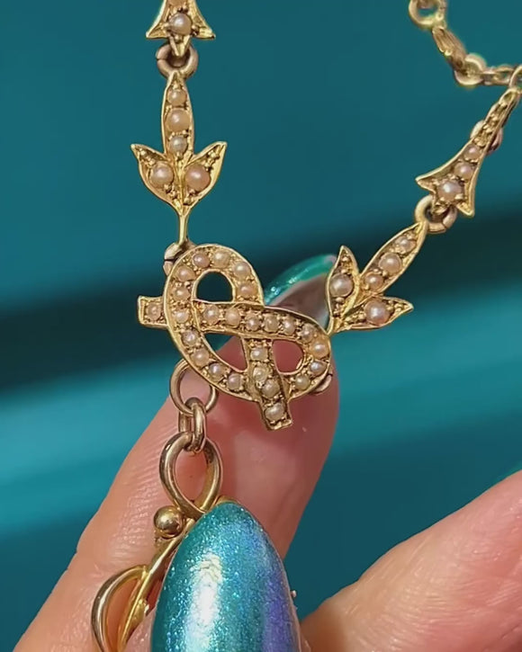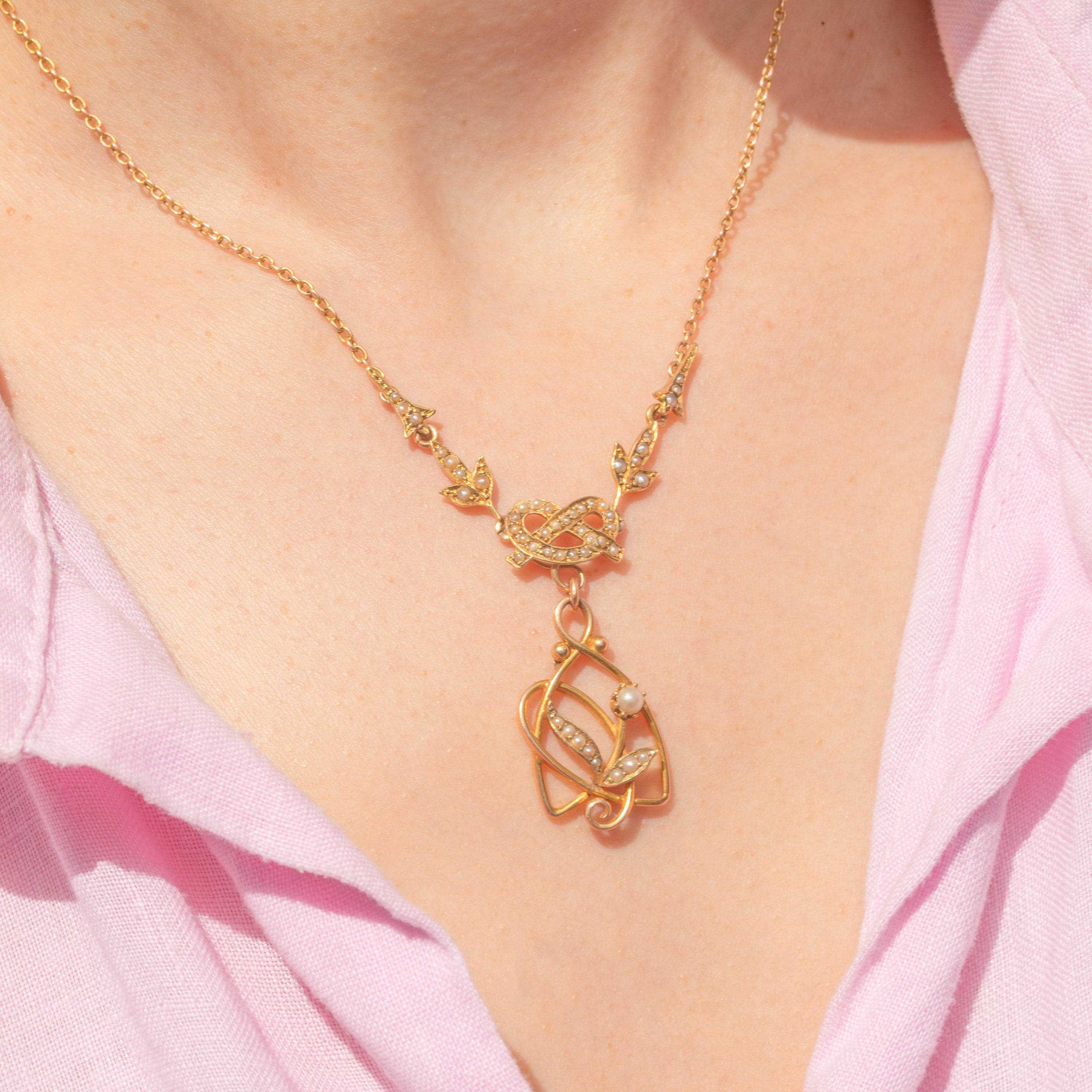 Antique 18ct Gold Seed Pearl Necklace, Detachable Pendant