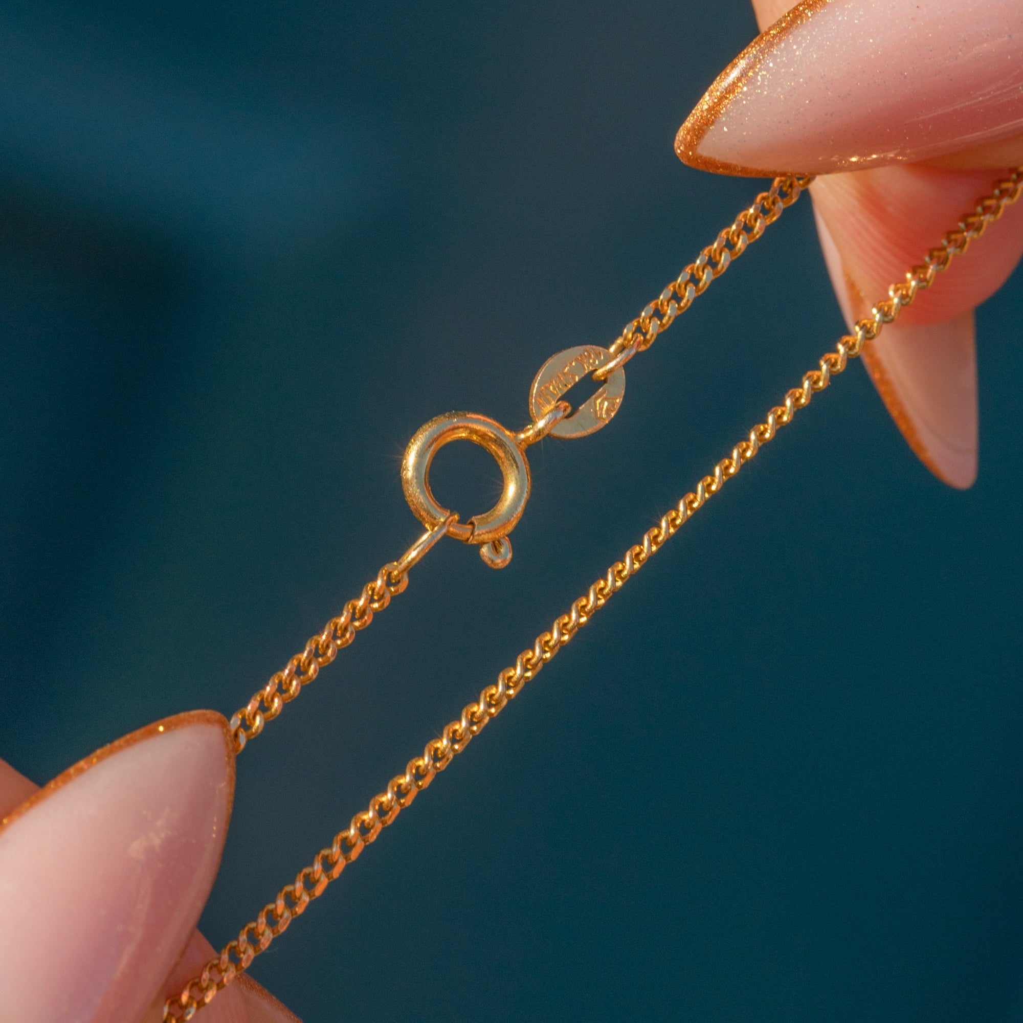 This dreamy Victorian crescent moon necklace is set with a glowing row of pale champagne Topaz, graduating gently around the curve for a soft, sparkling shimmer. The stones are collet-set in warm 15ct Gold, giving that classic mid-19th century look with a refined, minimal profile that sits beautifully at the collarbone.