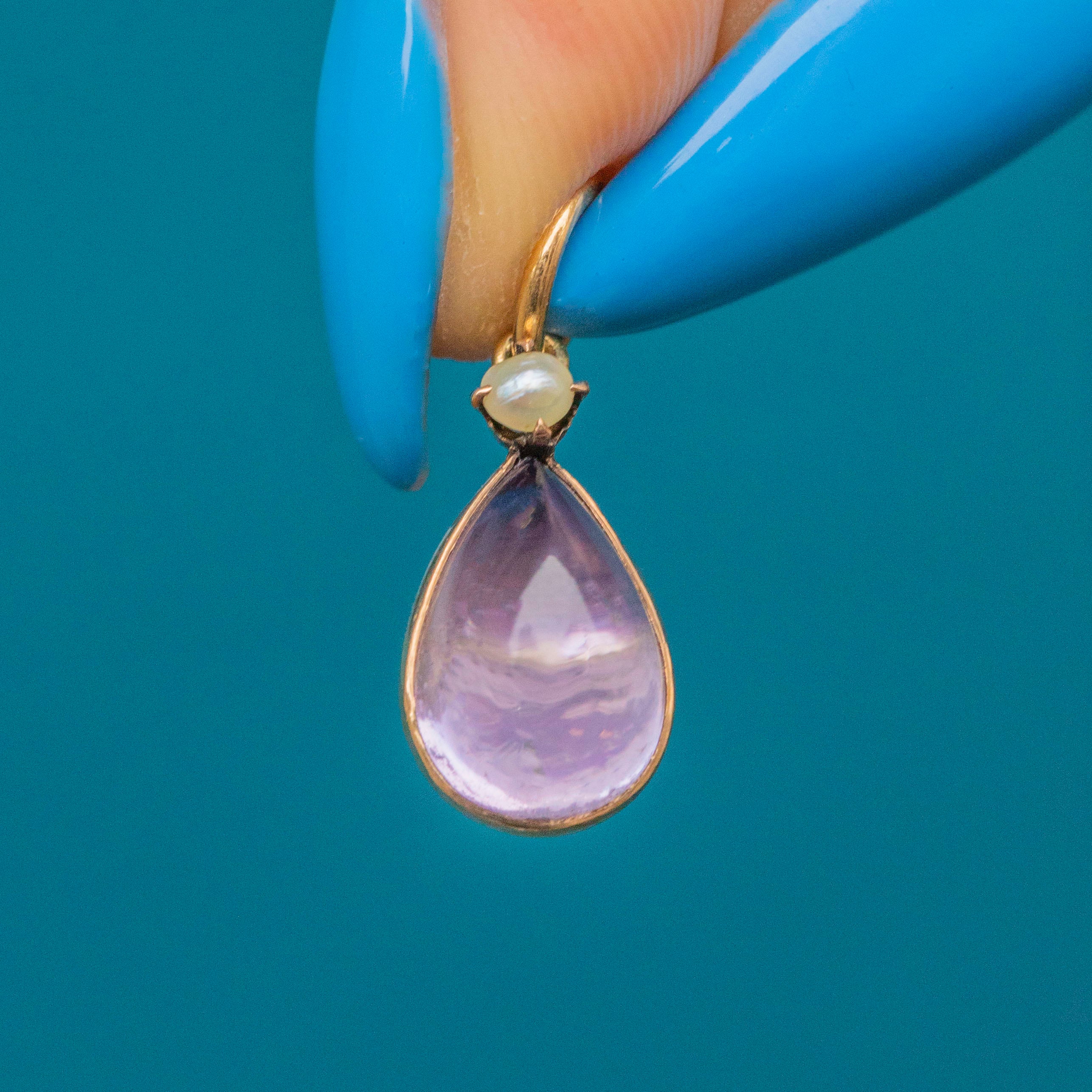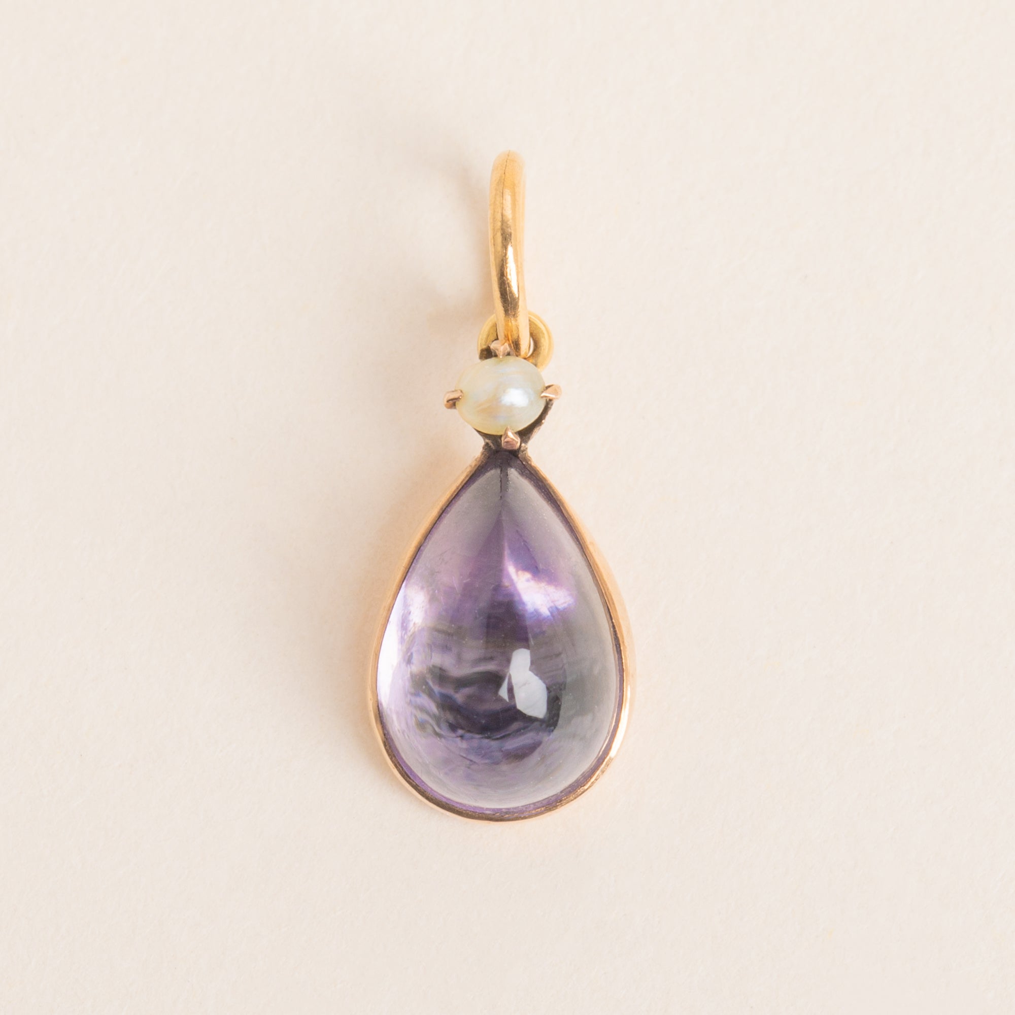 Antique 9ct Amethyst Sugarloaf Pear Pearl Charm, 1.84ct