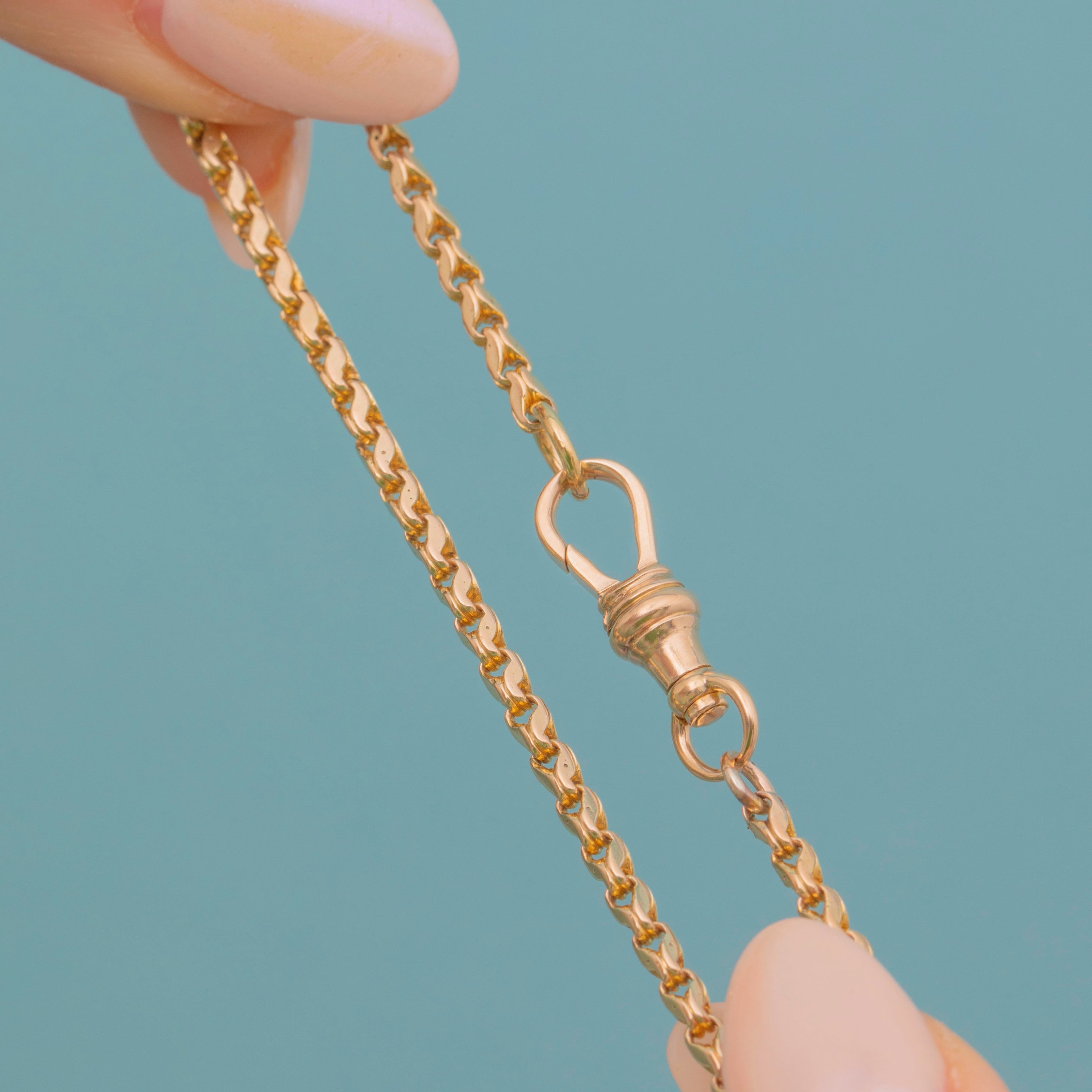 This gorgeous antique 9ct Gold 18" tulip link chain will make a versatile addition to your collection! The 18-inch length is made up of chunky tulip links crafted from buttery 9ct Gold, and comes complete with a coveted dog clip to which you could affix a pendant or charm for the ultimate antique look.