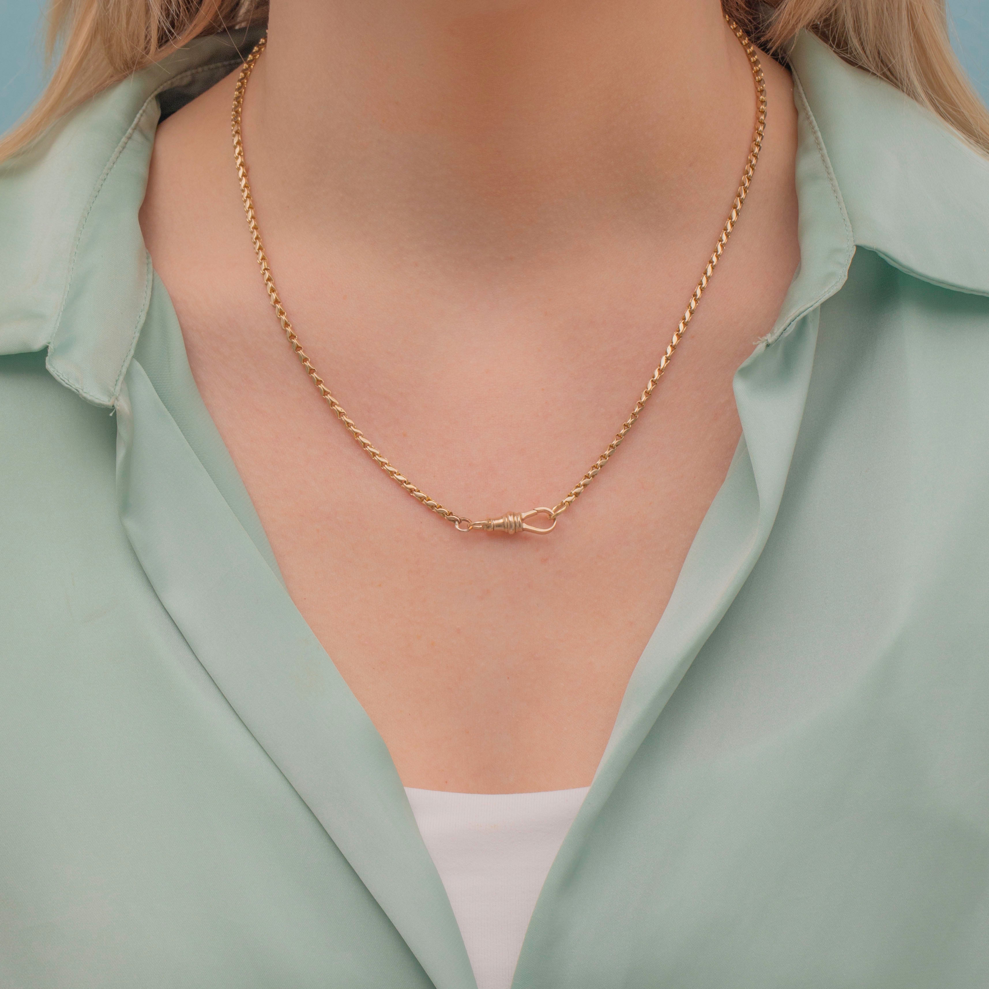 Whether worn as a standalone piece to add a satisfying hint of Gold to your outfit or stacked in a modern chain mess, there is nothing better than a timeless Gold chain for your antique jewellery box!