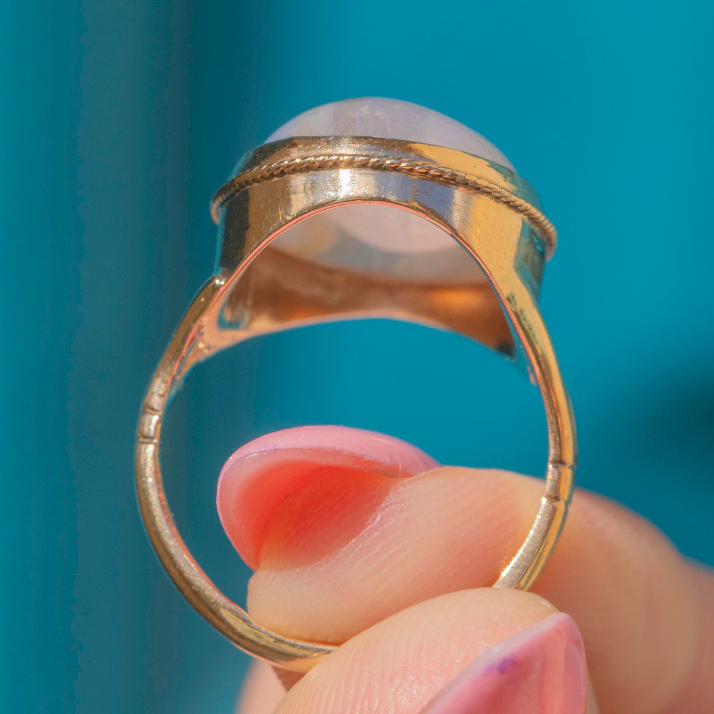 VERY GOOD-EXCELLENT: This antique 9ct Gold Agate dress ring is in very good-excellent condition. Her Agate is beautiful, displaying an array of soft colours and detail. There is a slight wobble to the stone within the bezel, though she is secure. In great condition, she's a must-have piece!