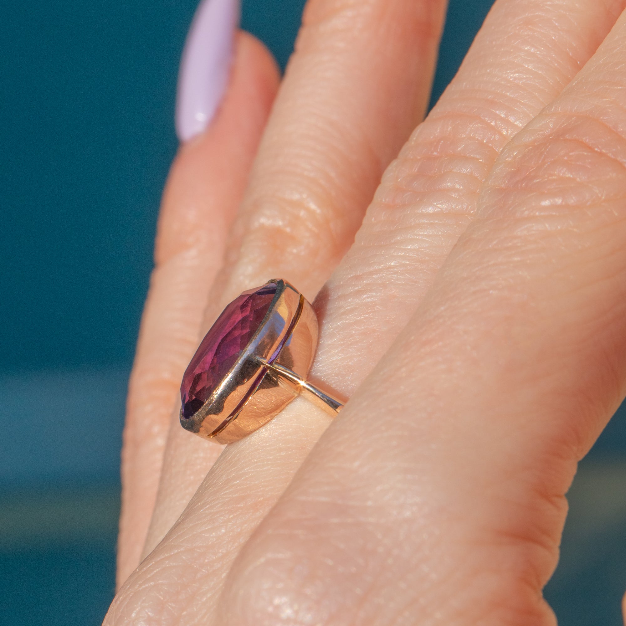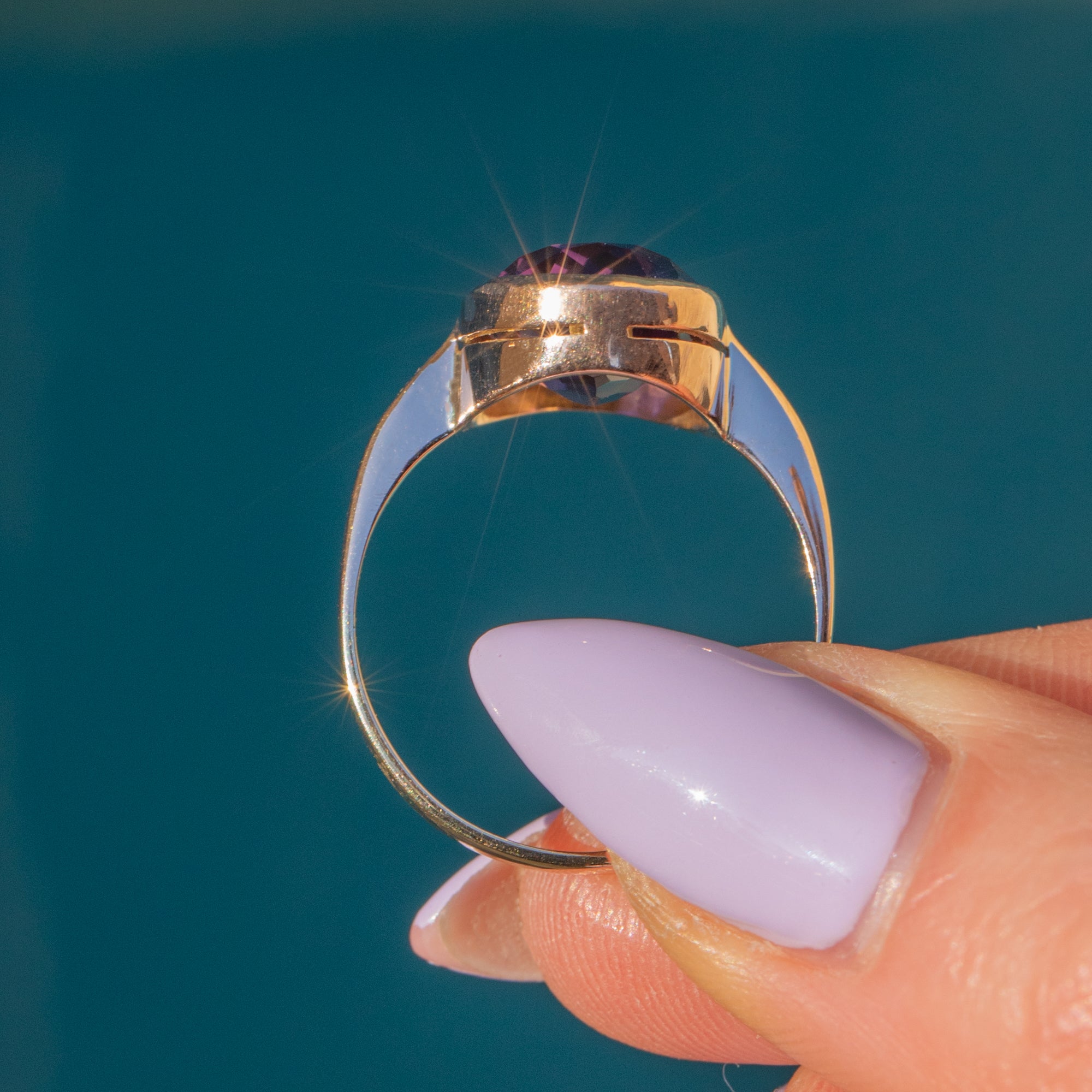 This antique 9ct Gold Amethyst dress ring is a stunning piece! Boasting a gorgeous 3.35ct Amethyst set in a chunky Gold bezel, she is sure to turn heads every time you wear her.