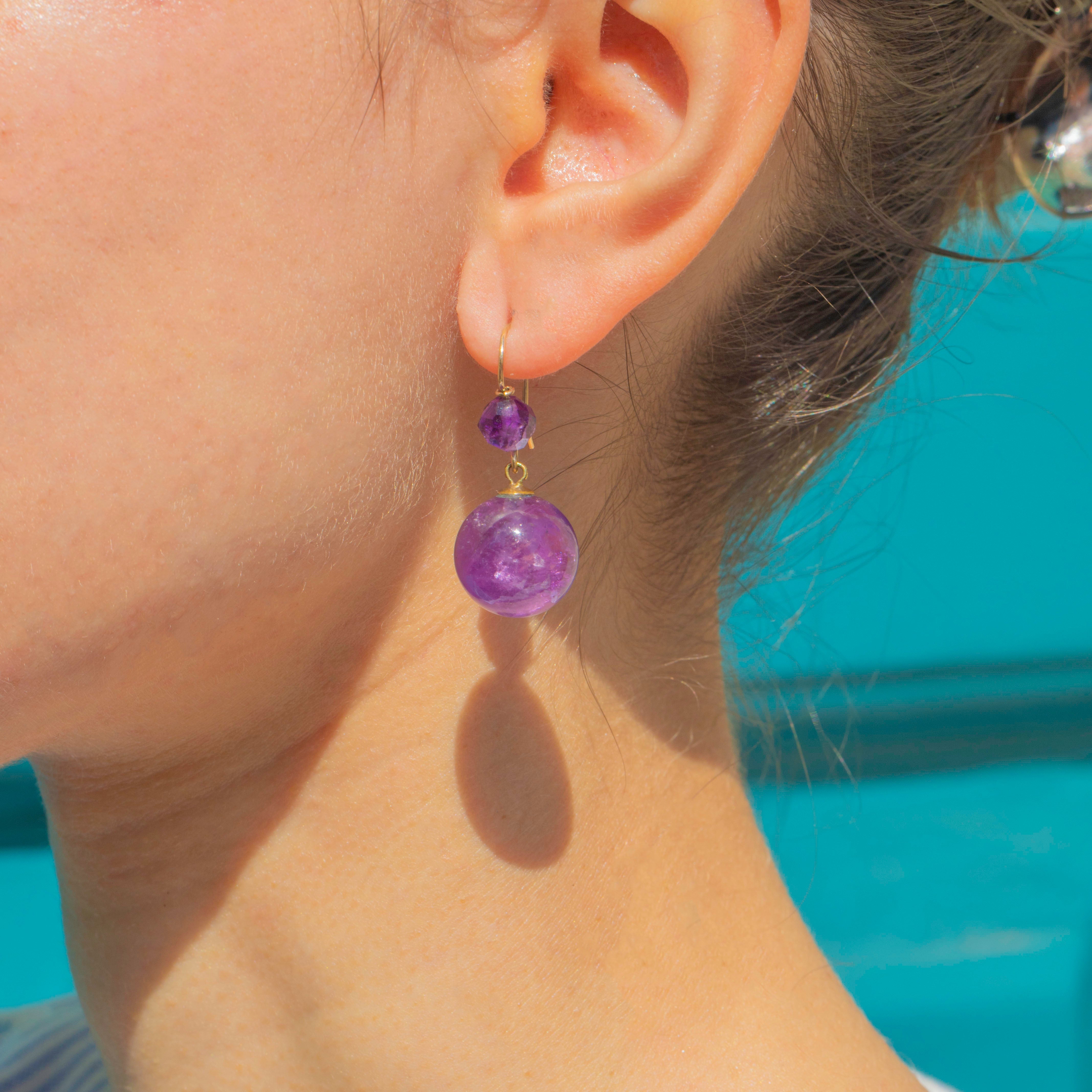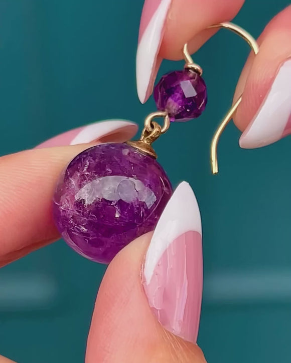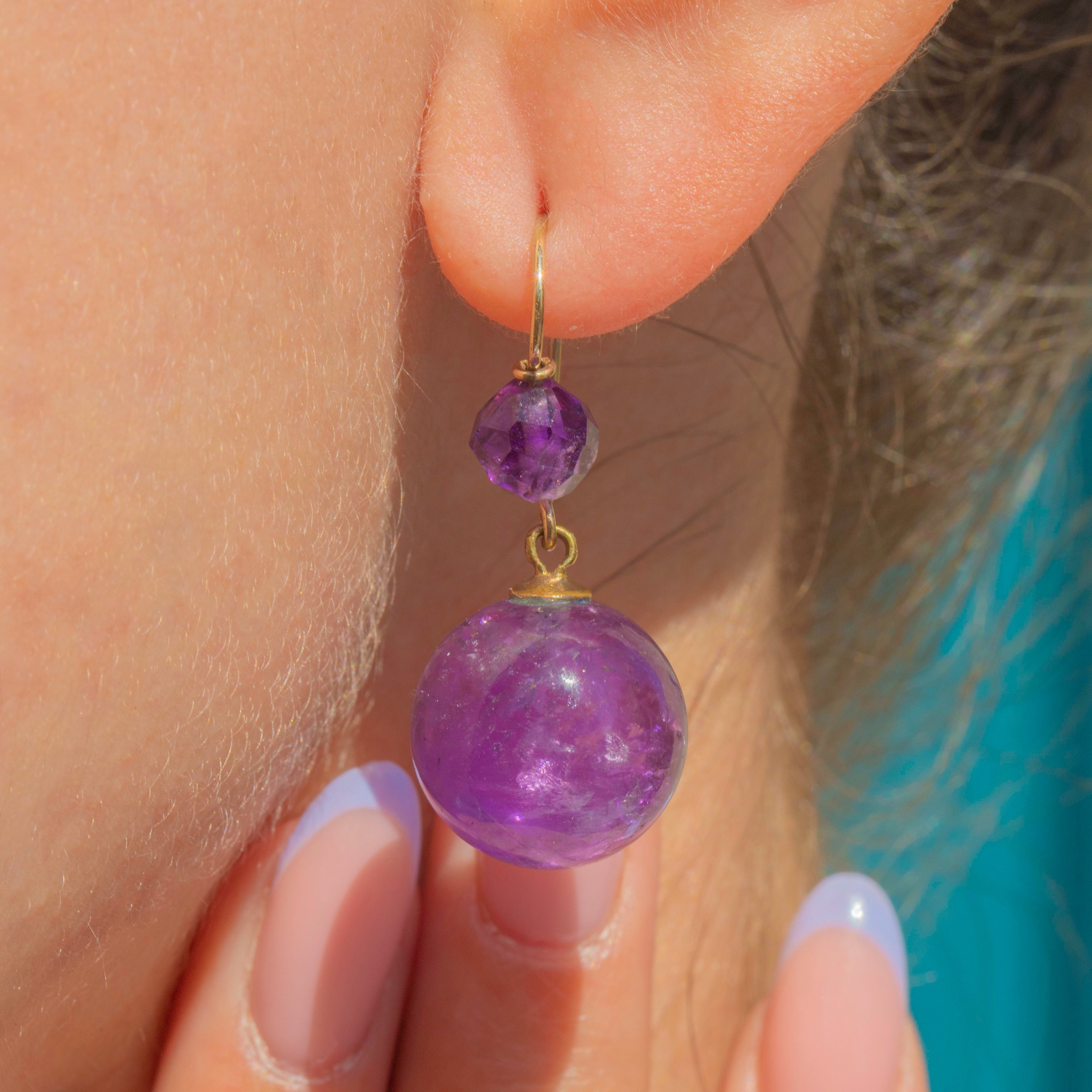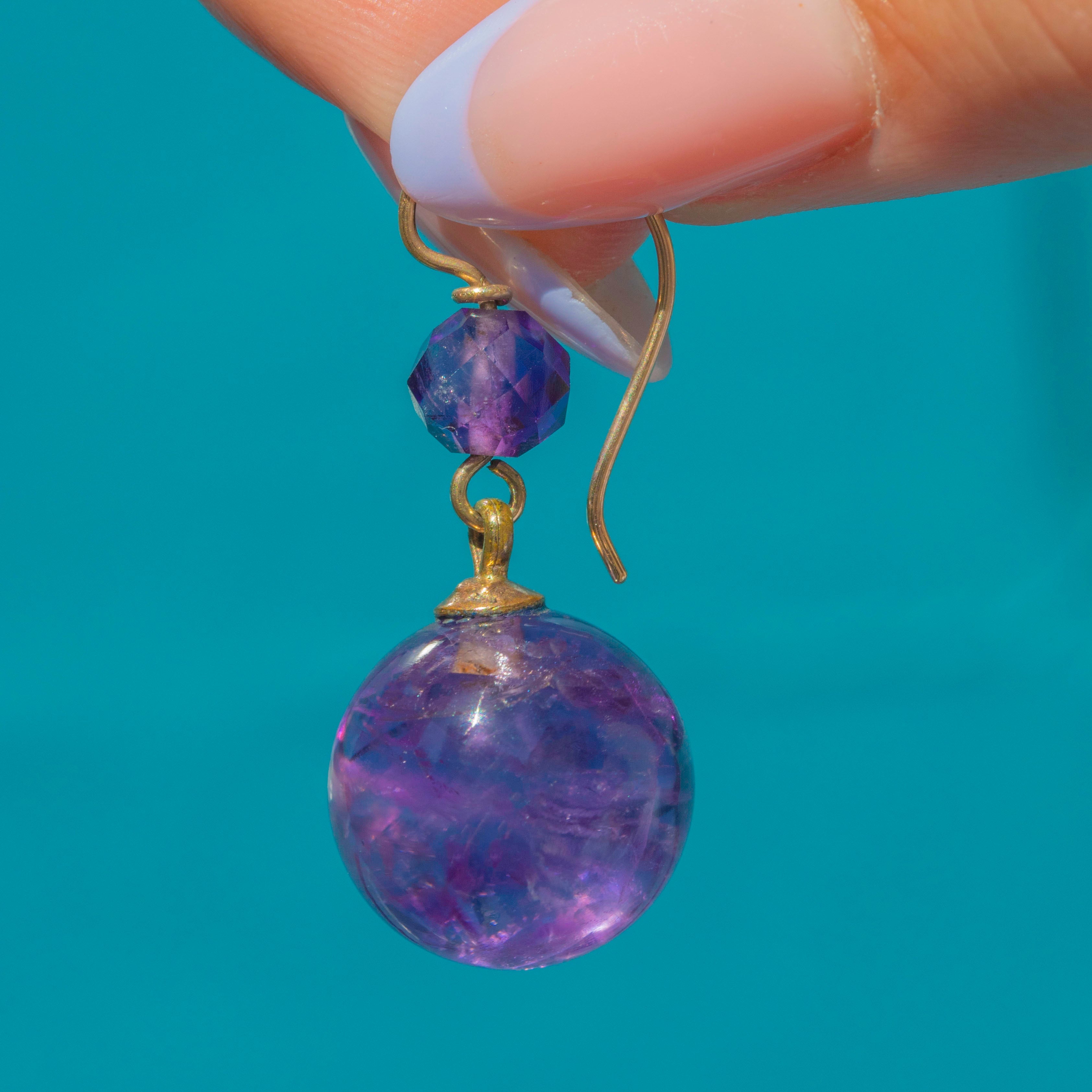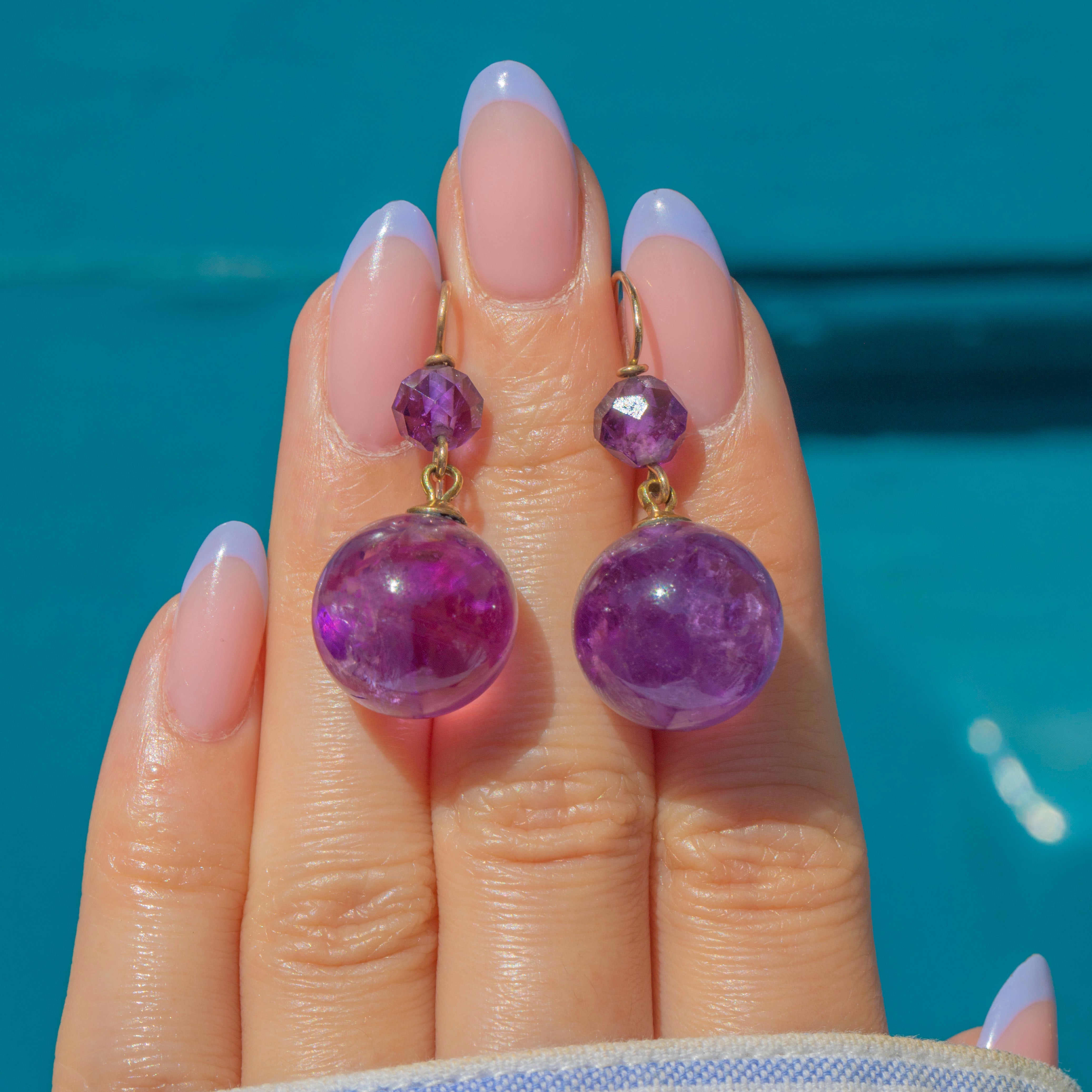 Each mystical antique earring showcases a deep purple Amethyst sphere with a mesmerising array of natural inclusions adding to their allure.