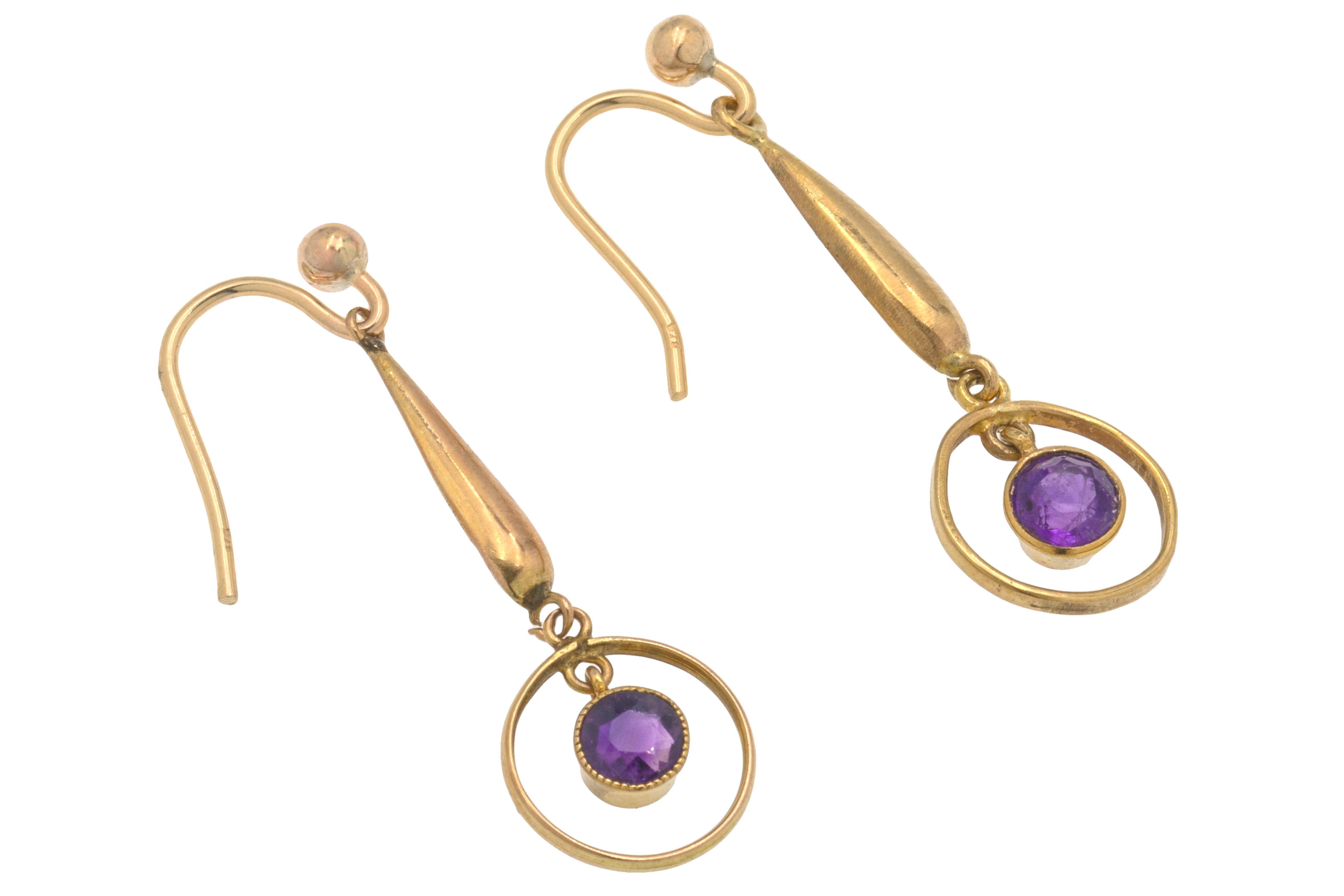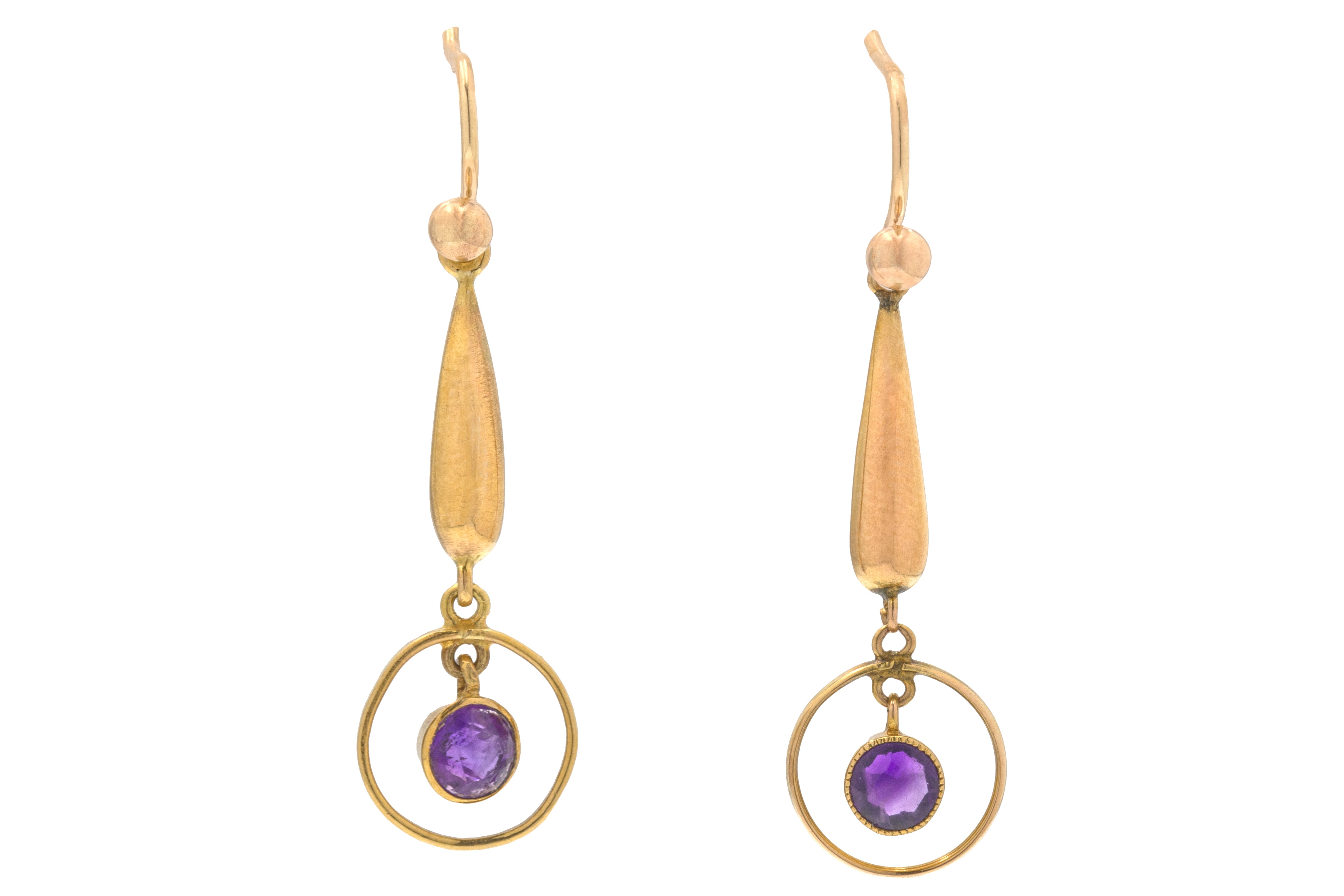 Antique 9ct Gold Amethyst Target Drop Earrings, 0.60ct
