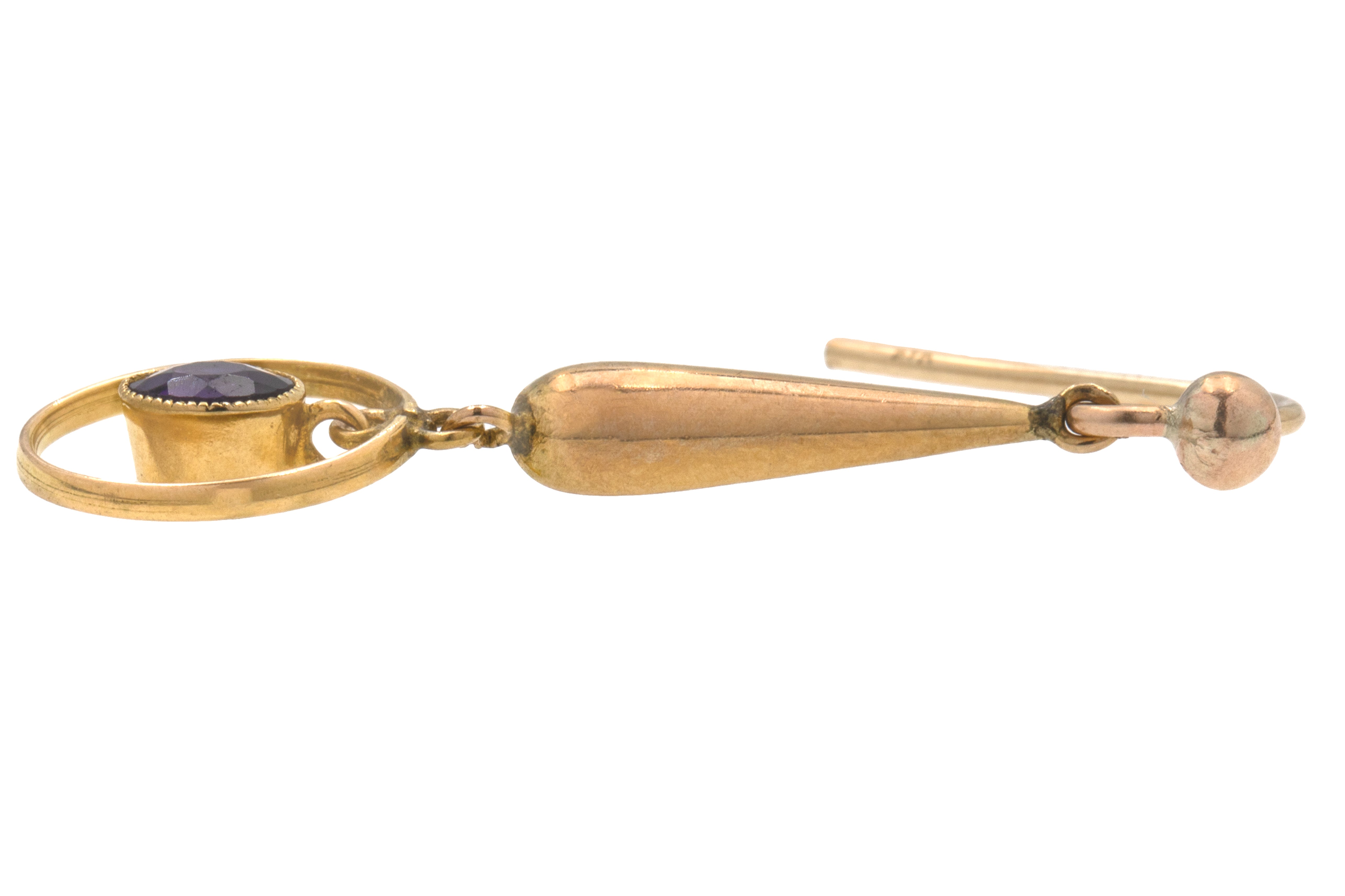 VERY GOOD. These antique 9ct Gold Amethyst target drop earrings are in very good condition! Their Gold has a rich tone throughout, with subtle wear commensurate with age but nothing untoward. Each component of these Amethyst drop earrings is securely attached and has a lovely fluid movement running down each earring. The Amethysts as securely set and free from any chips. These Edwardian earrings will never fail to impress!