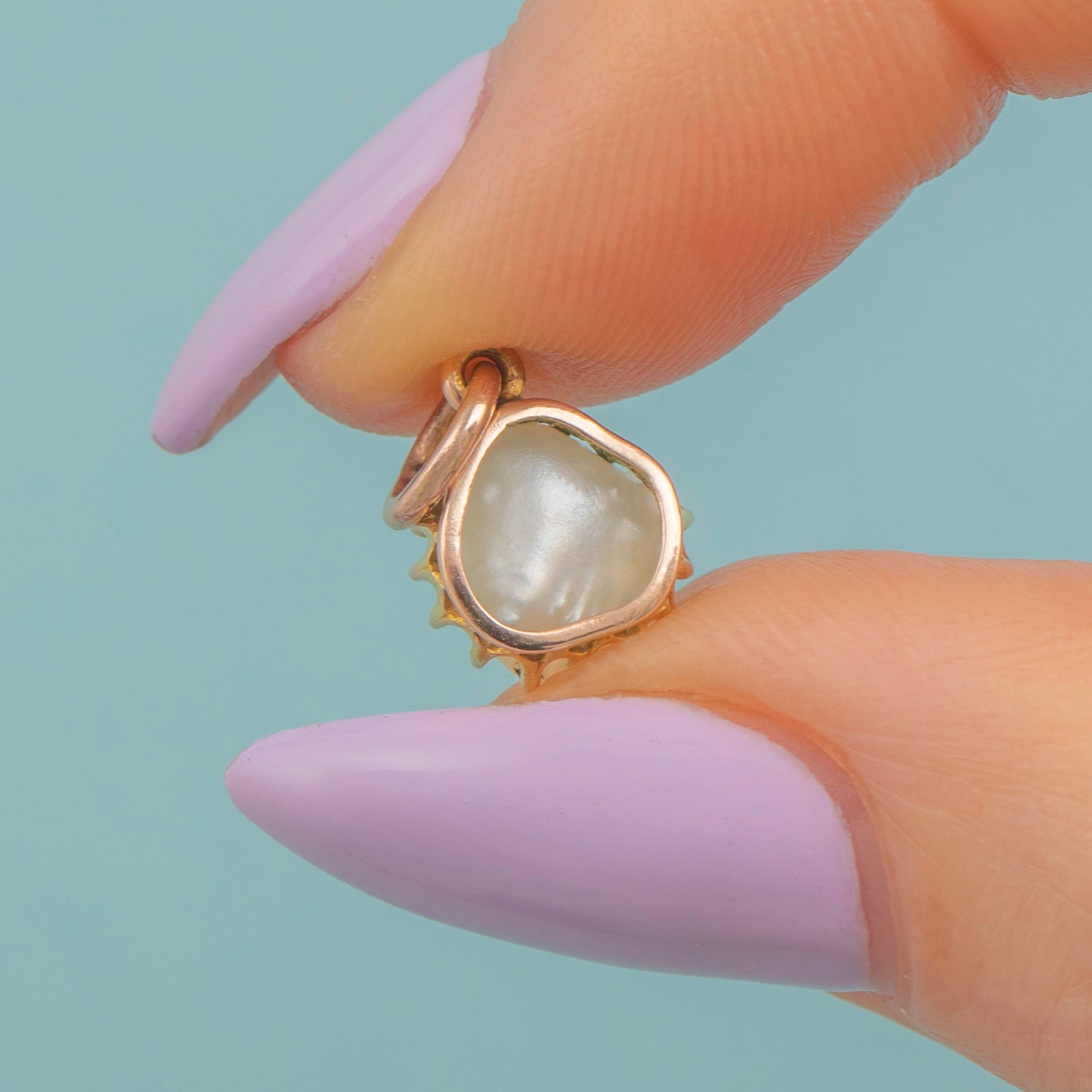 An elegant antique 9ct Gold Baroque Pearl charm to adorn your favourite Gold chain. We adore the irregular, unique beauty of Baroque Pearls, they have an effortless charm that endures over time!