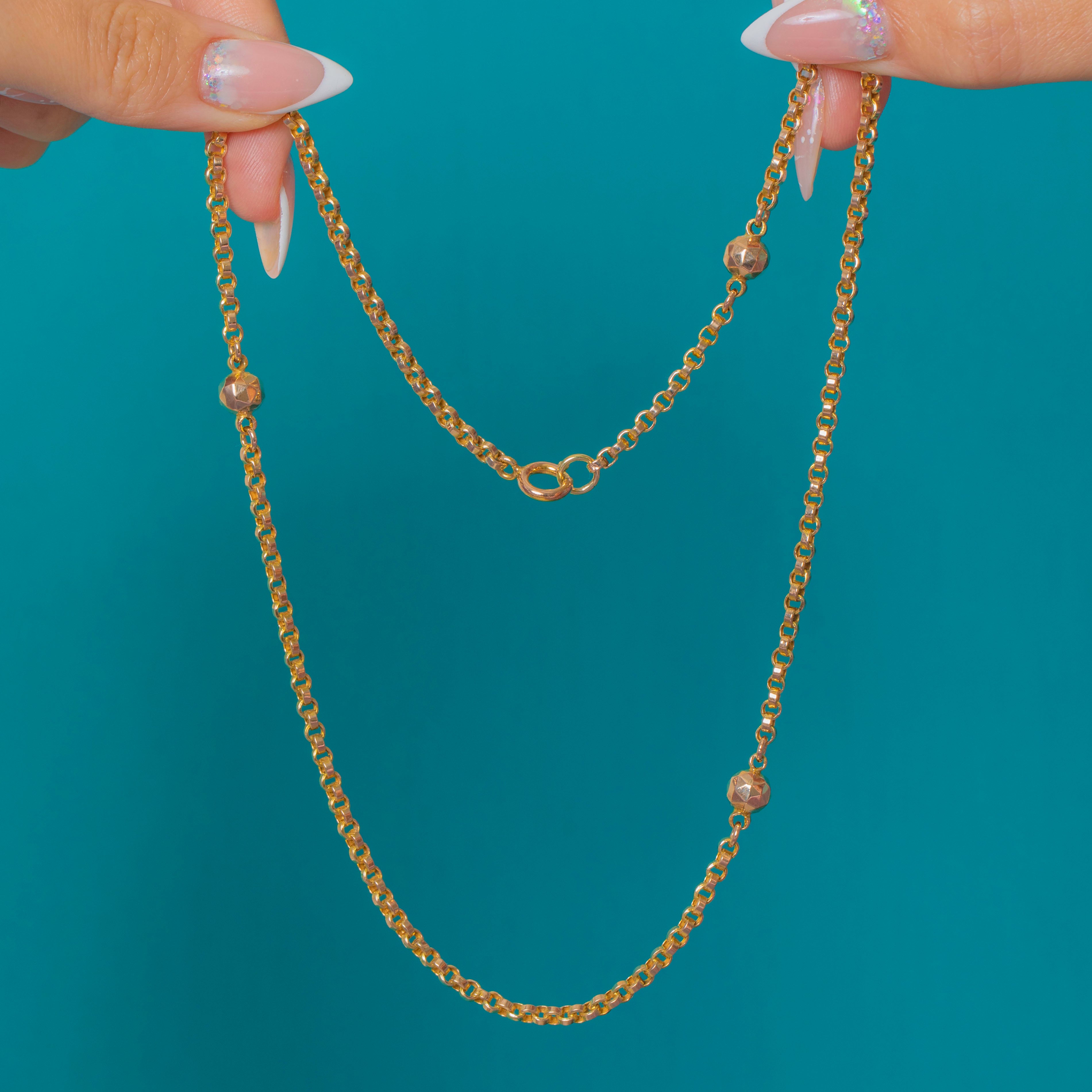 Antique 9ct Gold Belcher Chain with Faceted Beads, Bolt-Ring Clasp