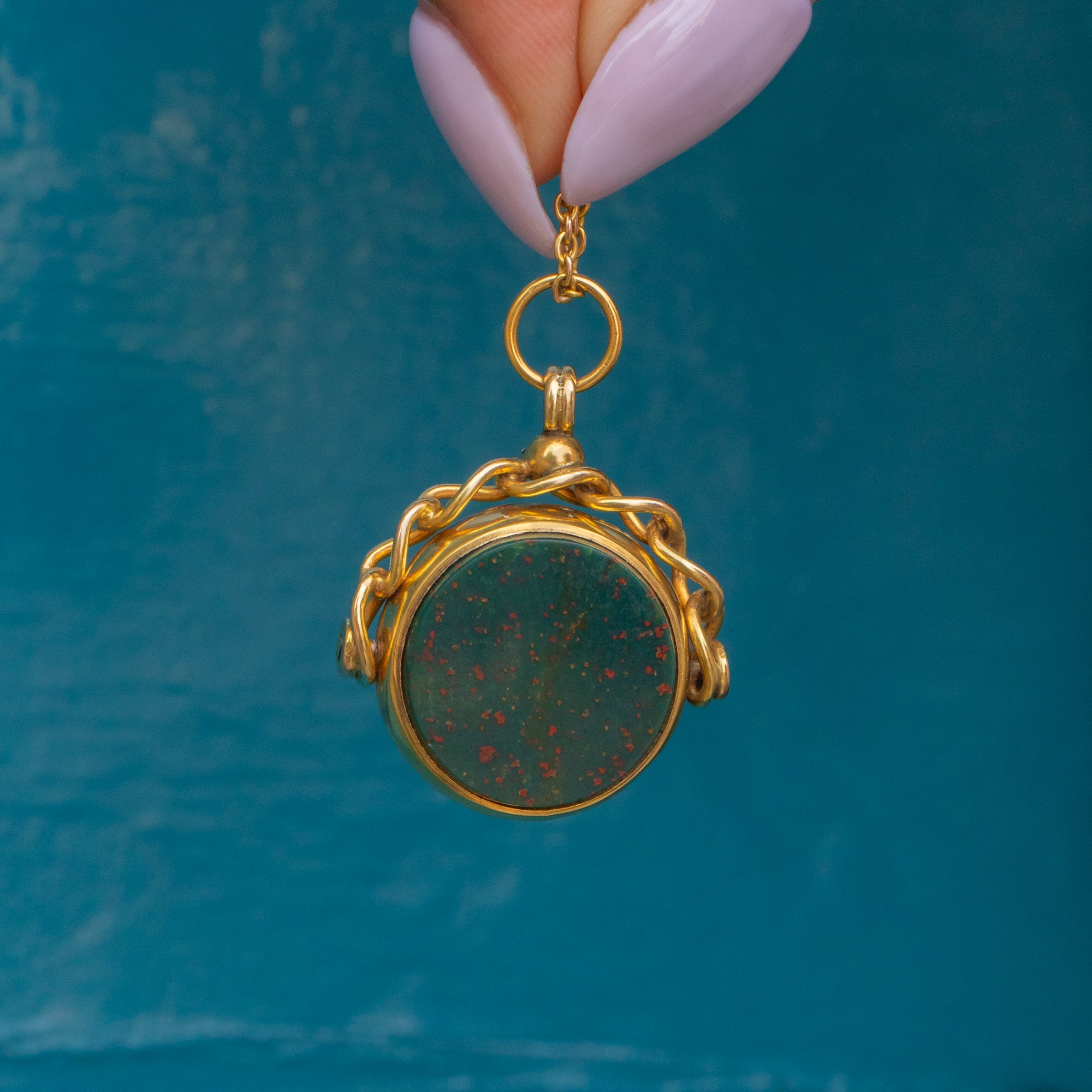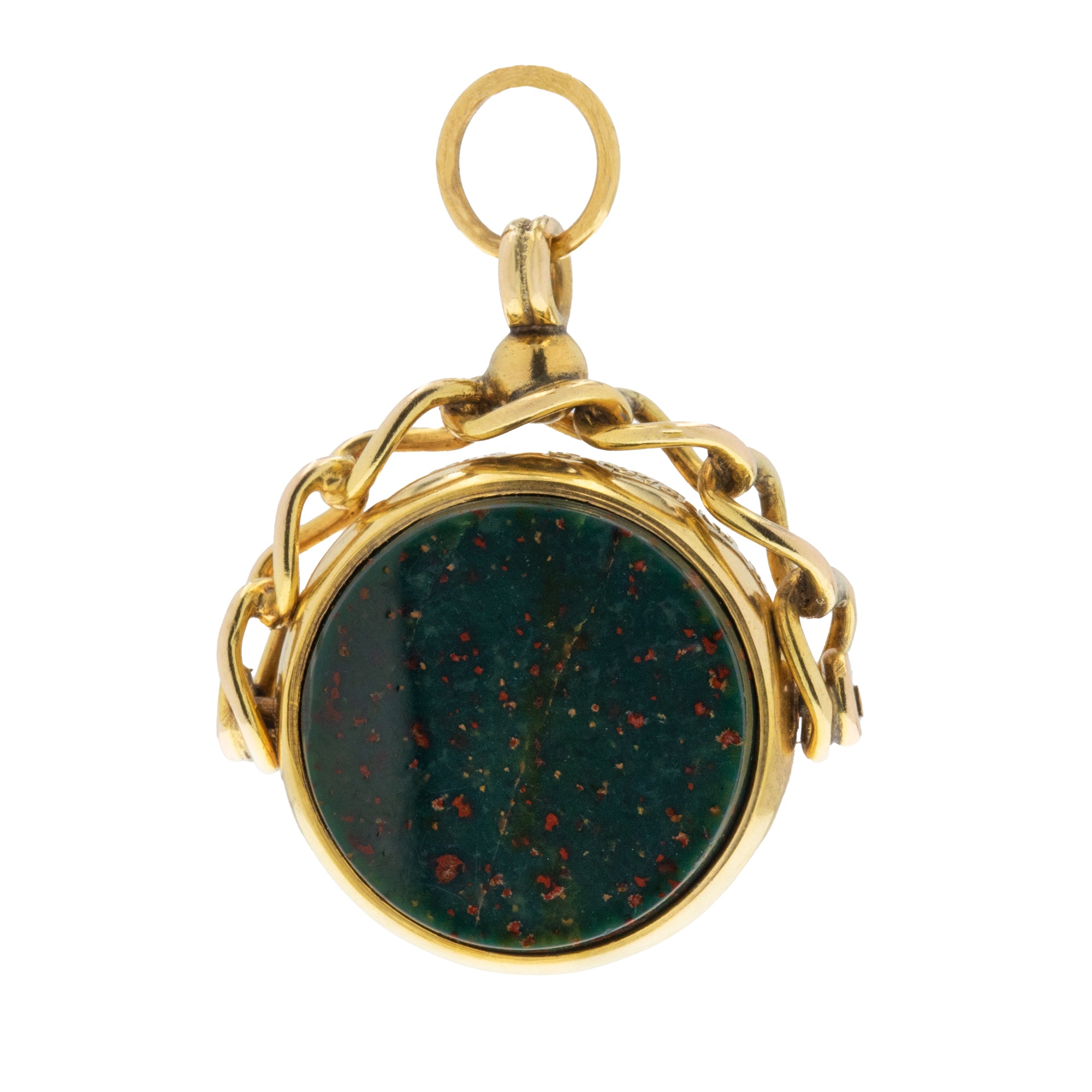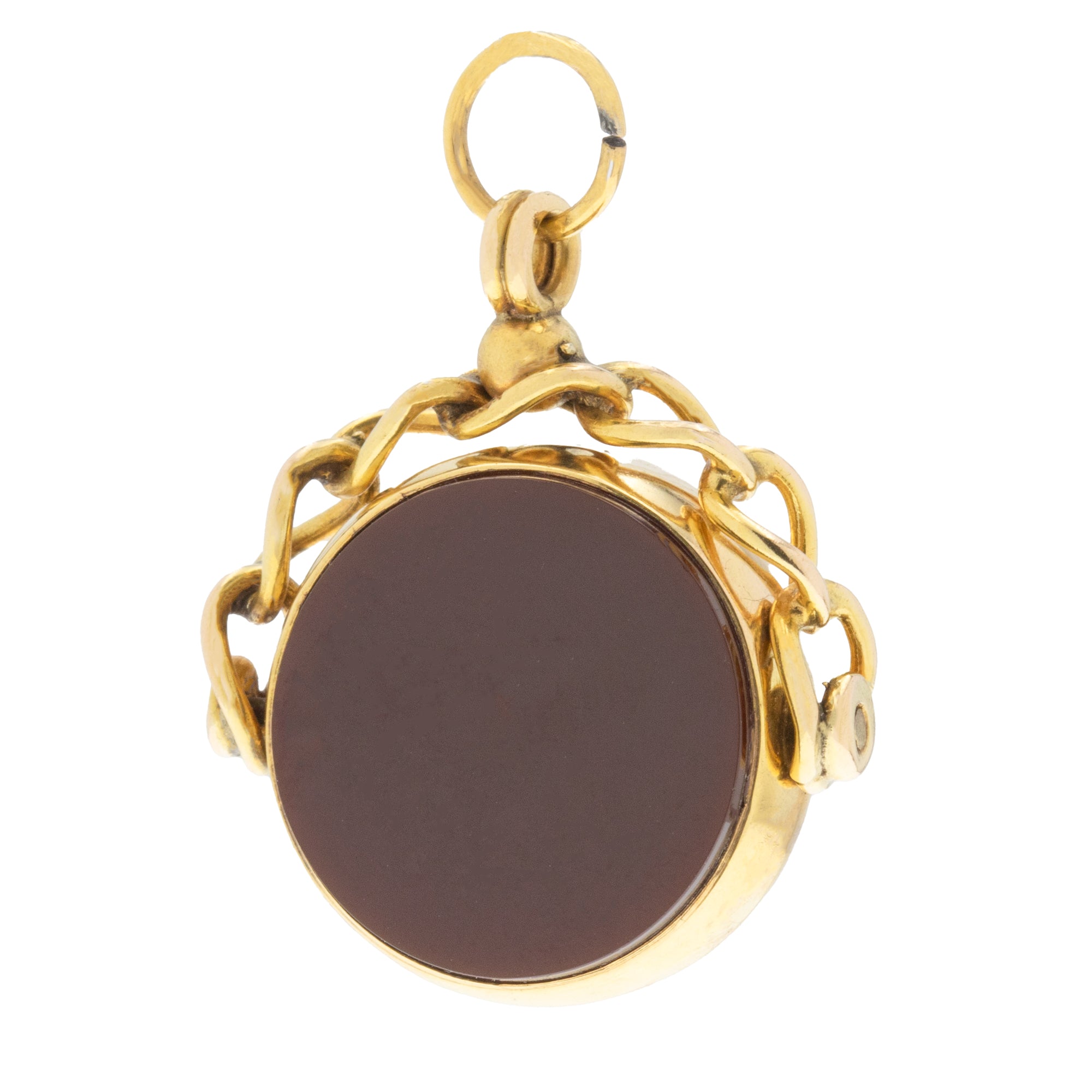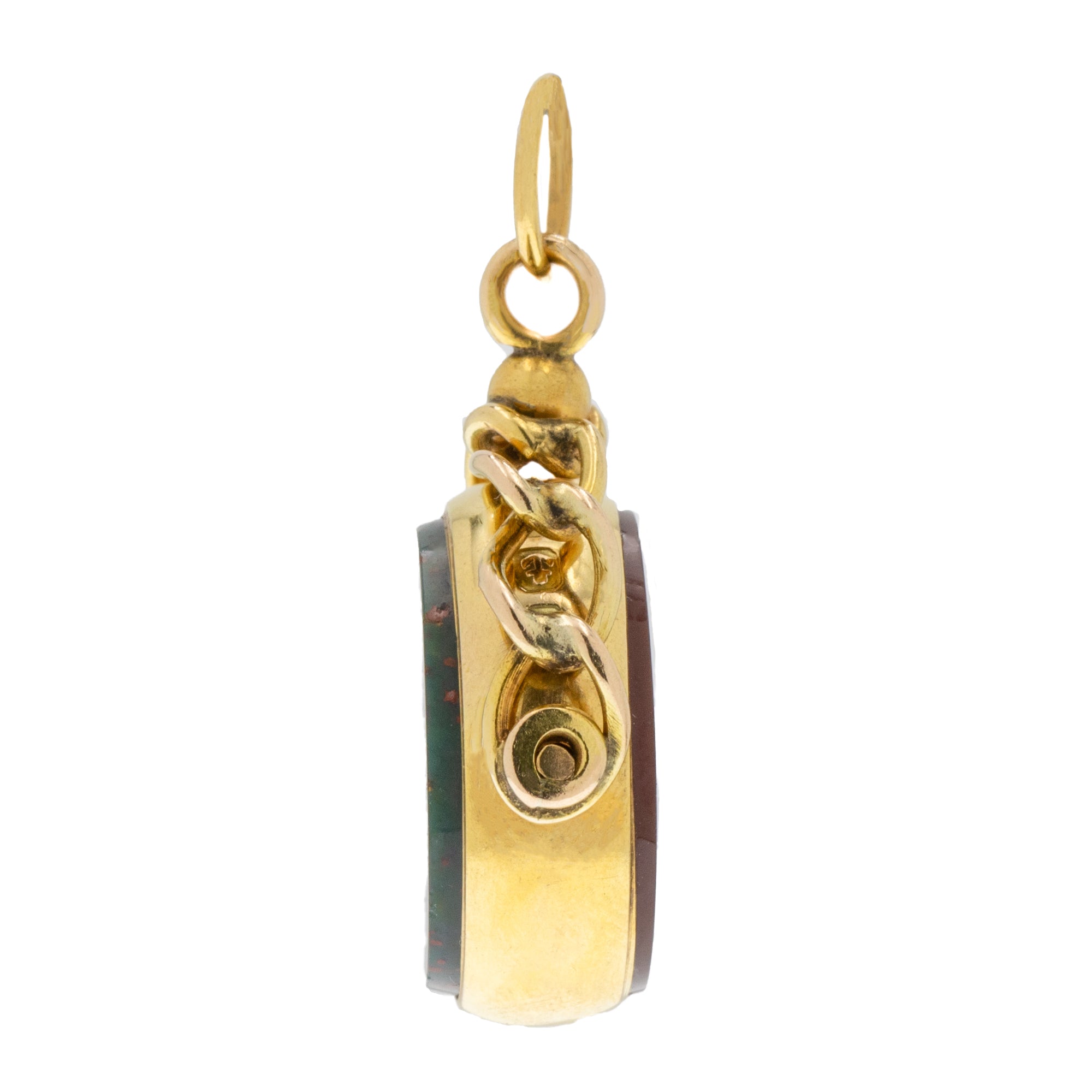 Antique 9ct Gold Carnelian Bloodstone Swivel Fob Pendant, c.1900