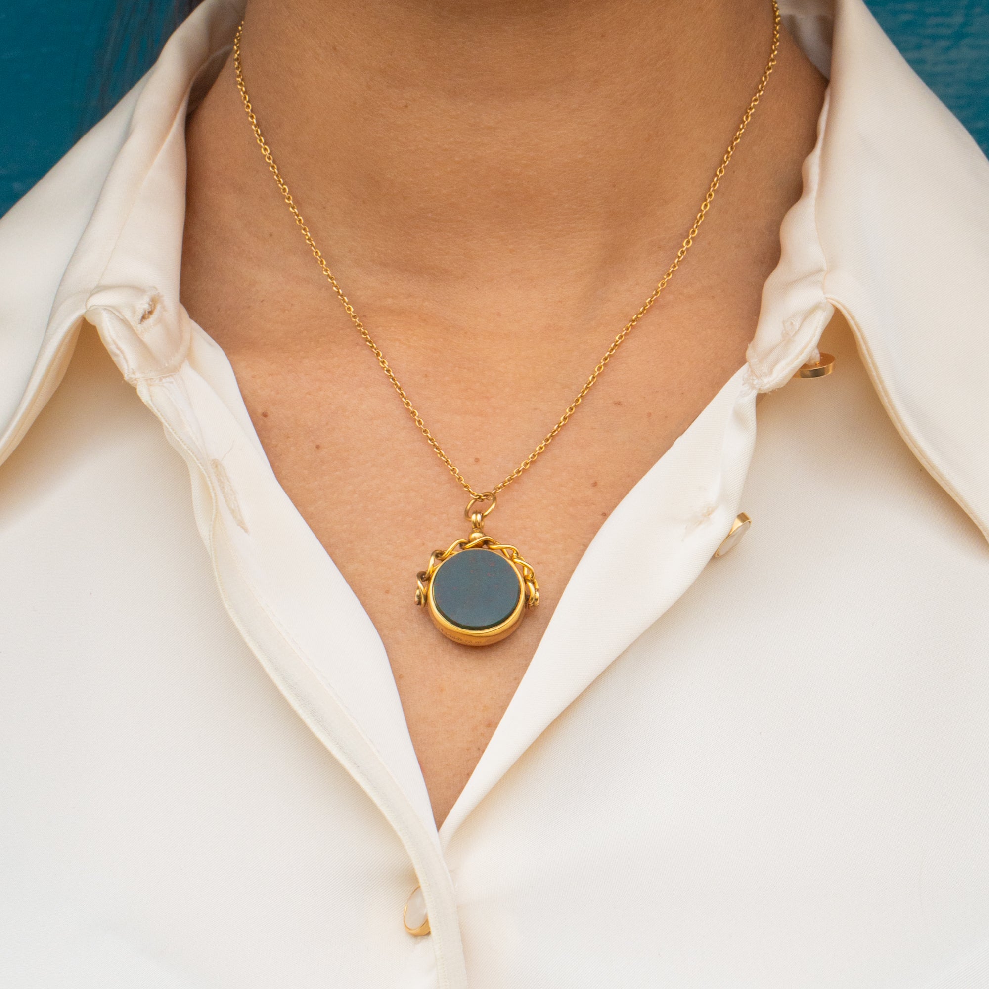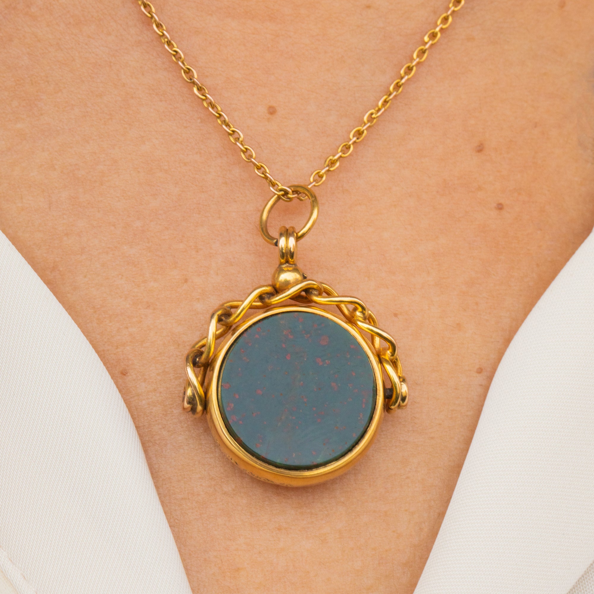 VERY GOOD TO EXCELLENT. This antique 9ct Gold Carnelian Bloodstone swivel fob pendant is in fabulous condition. The 9ct Gold is buttery and both stones are securely set. The Bloodstone has a minor chip on the side, but this is only noticeable under close inspection. The Carnelian is perfectly smooth, and free from nibbles or chips. The 9ct Gold has minor surface wear, but has remained bright and the hallmarks are crisp and legible. The swivel component is in perfect working order, so this piece can be worn and adored for many more years!