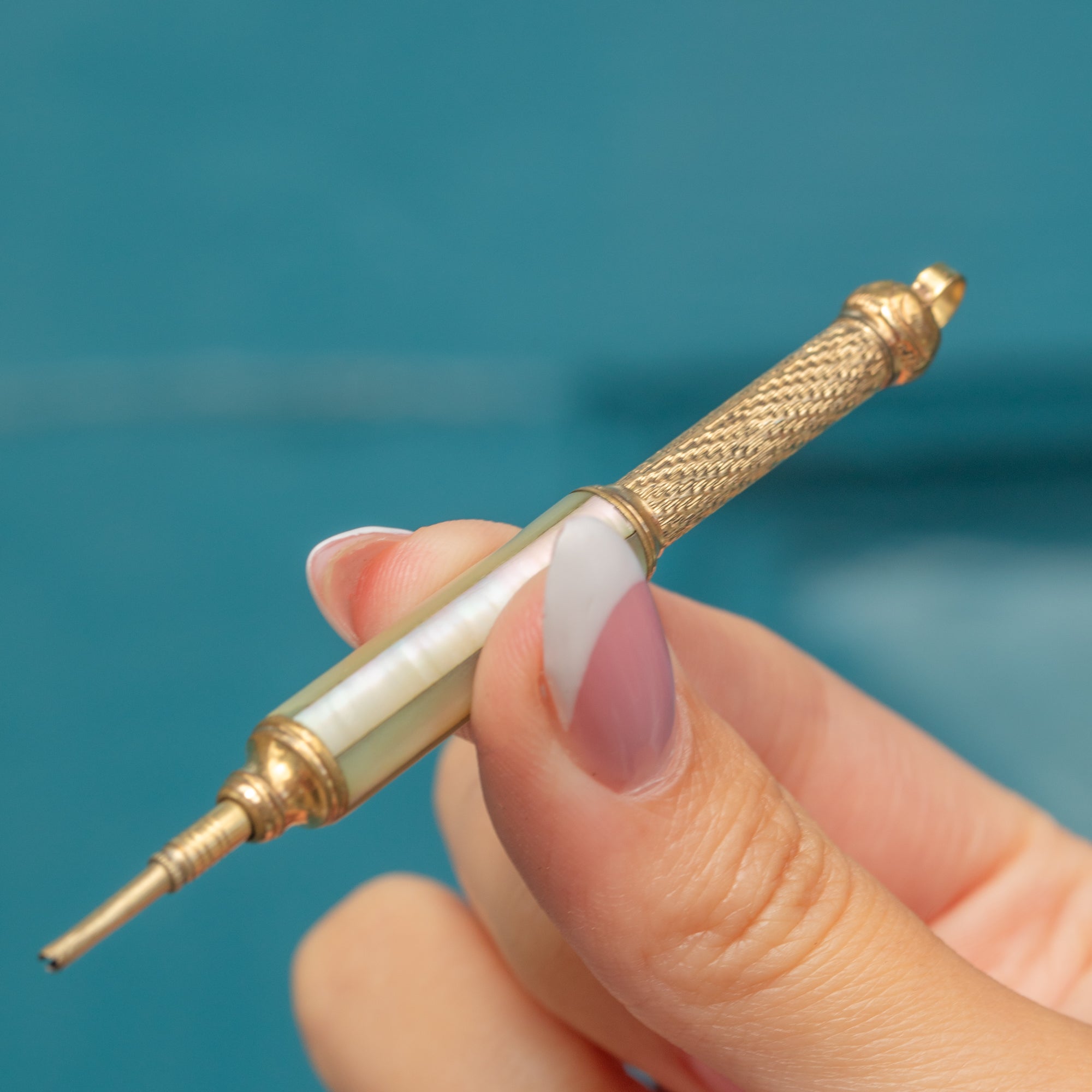 Antique 9ct Gold Cased Mother Of Pearl Mechanical Pencil Pendant