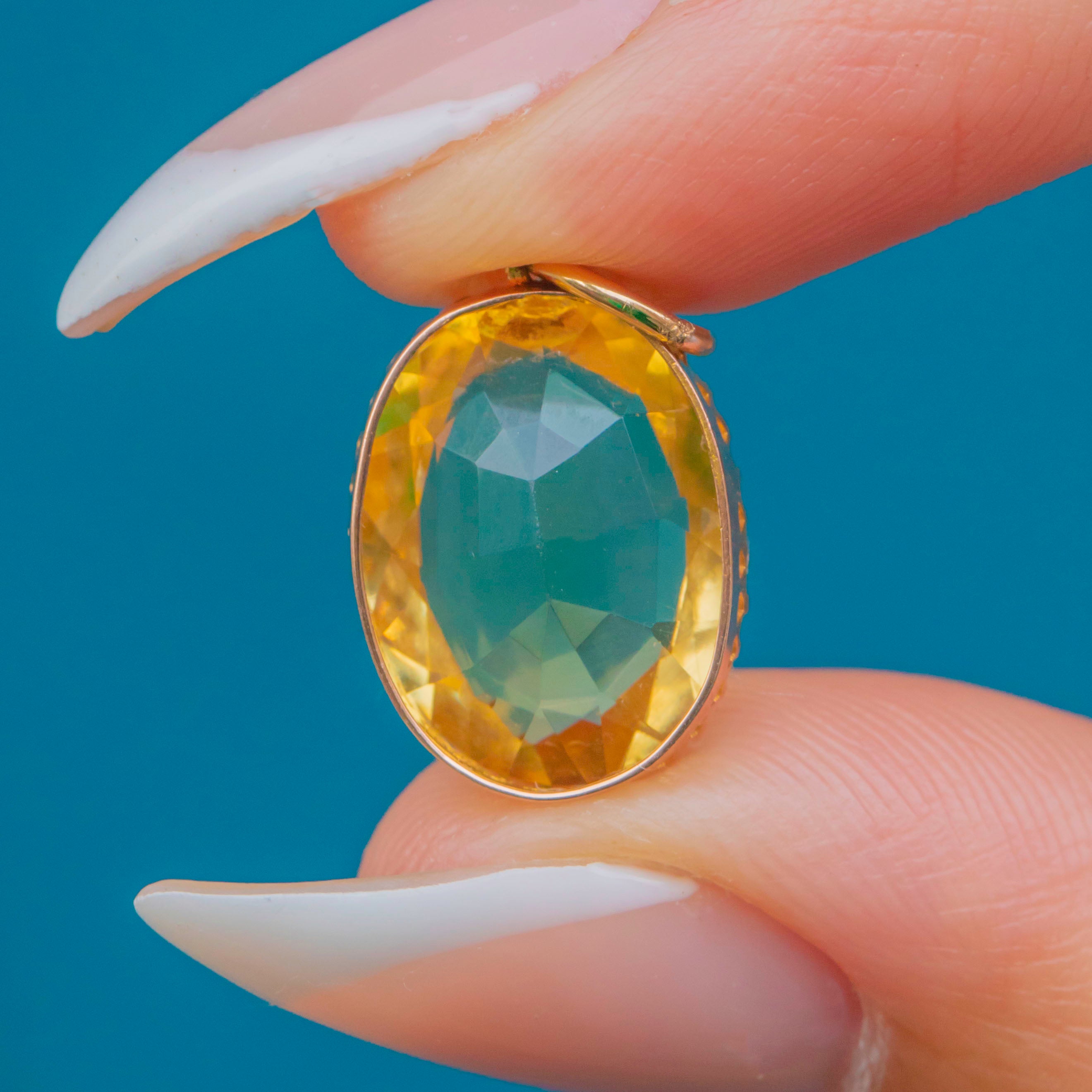 This antique 9ct Gold Citrine charm is a joyful little treasure! Sure to warm up the darkest of days, the wonderful 4.20ct Citrine shimmers with bright lemony hues as its crisp-cut facets dance in the light.