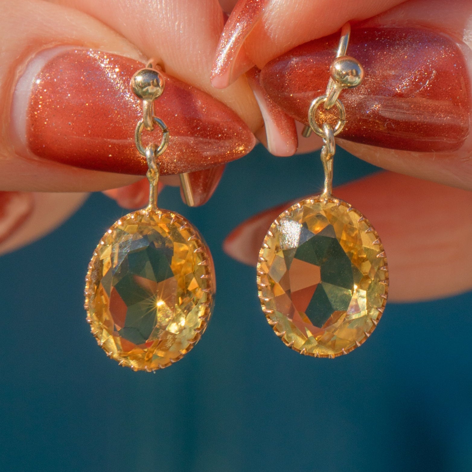 These antique 9ct Gold Citrine earrings are radiant!
