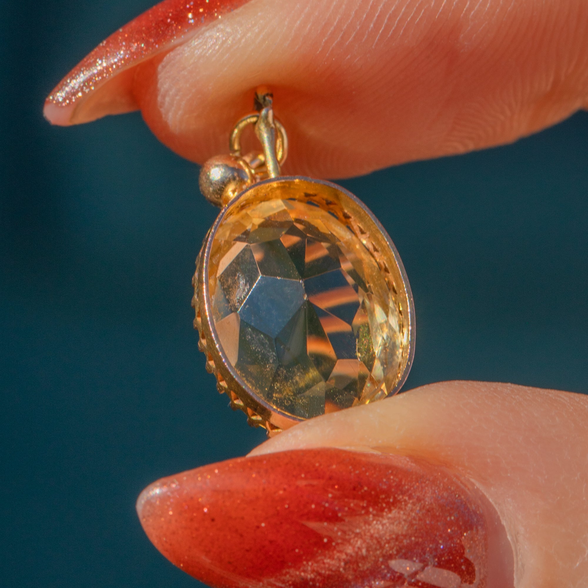 MATERIALS: Tests as 9ct Gold with metal hasp, Citrine (8.60ct).