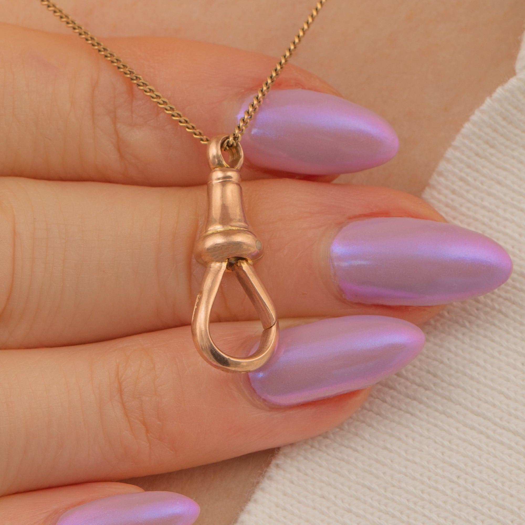 EXCELLENT. This antique 9ct Gold dog-clip is in excellent condition! The Gold boasts a radiant and stunning rosy hue, and the clasp is sturdy and durable, ensuring many more years of enjoyment.