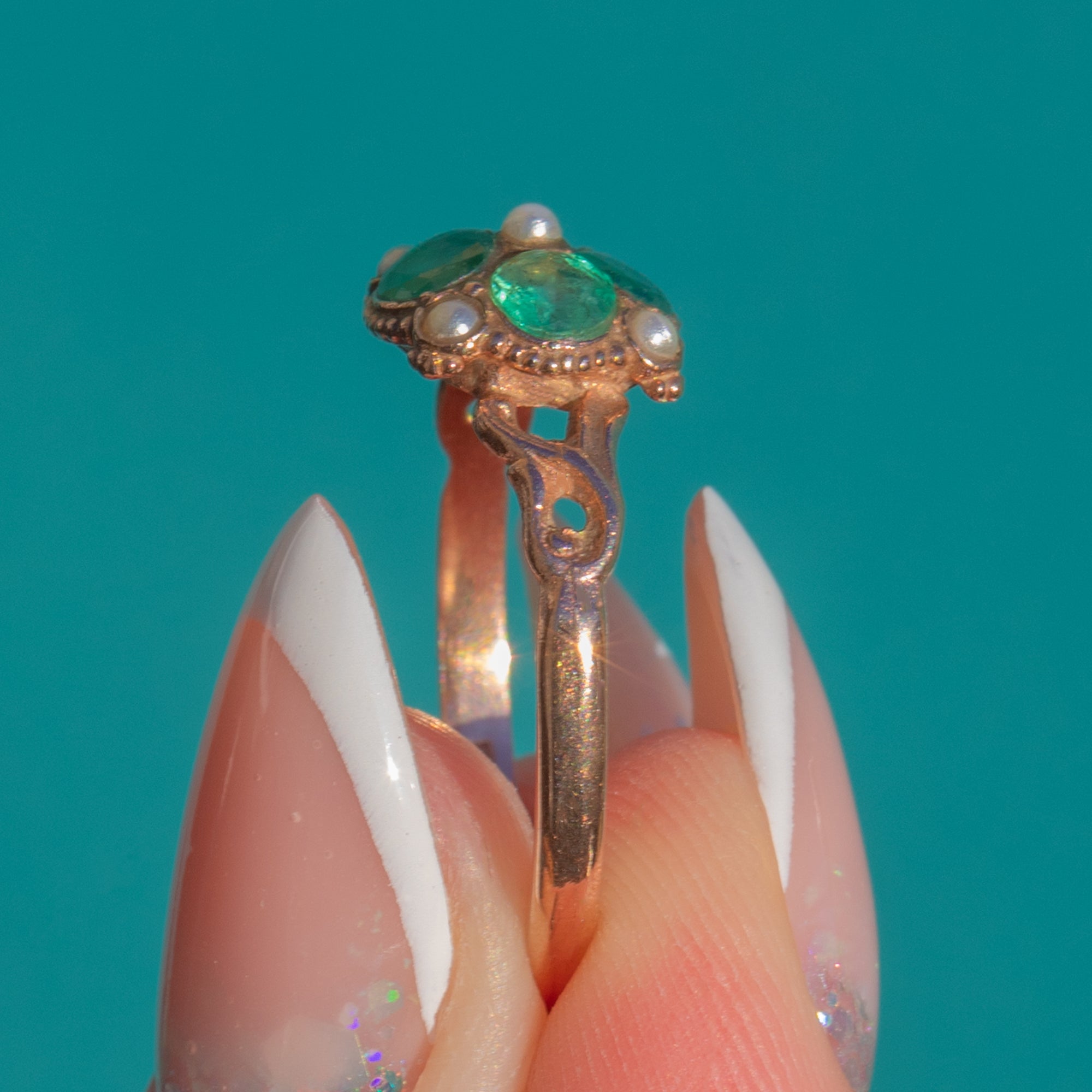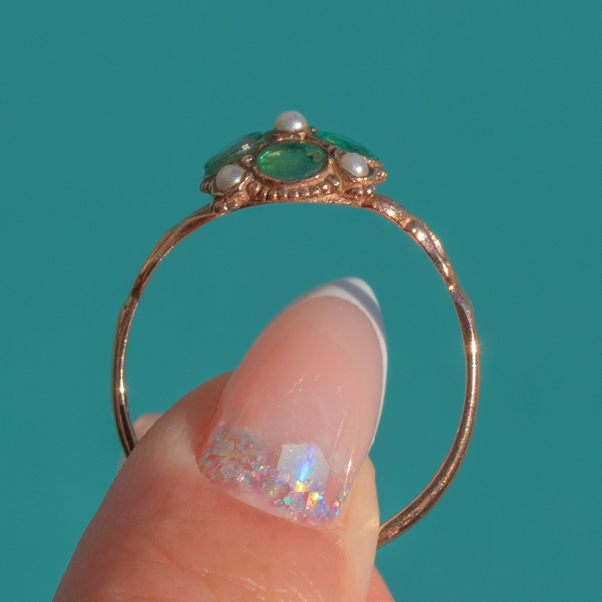 Antique 9ct Gold Emerald Pearl Ring
