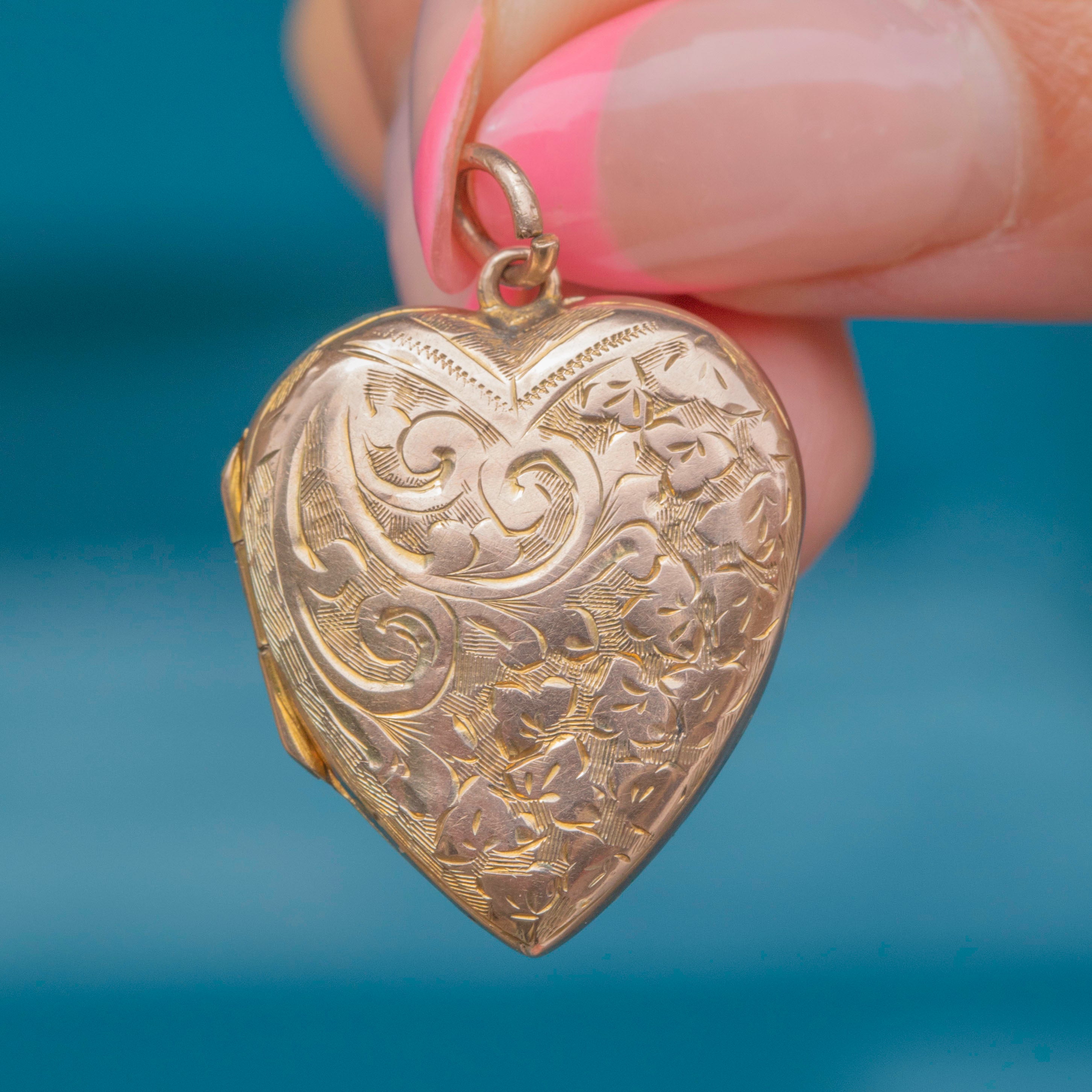 Antique 9ct Gold Engraved Heart Locket