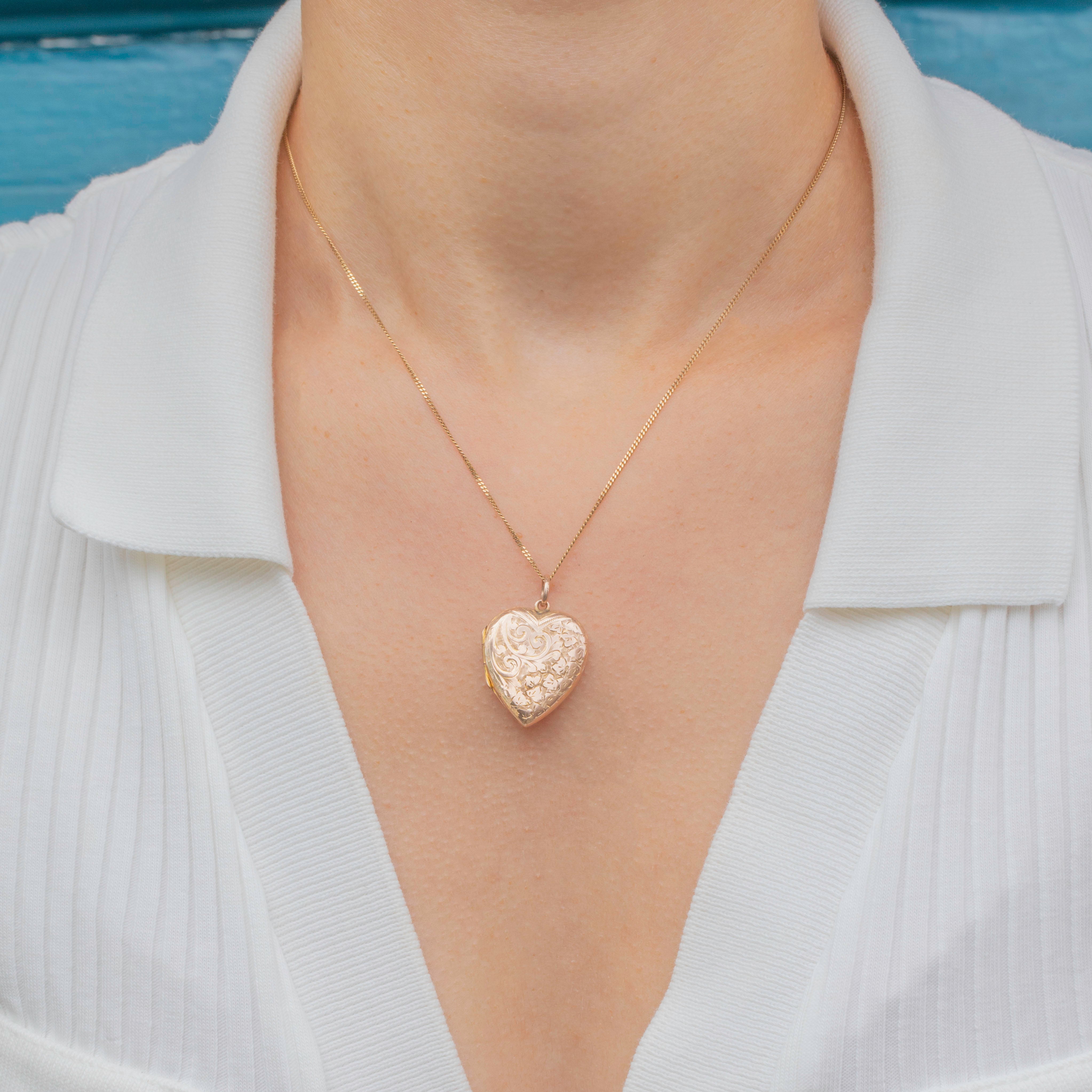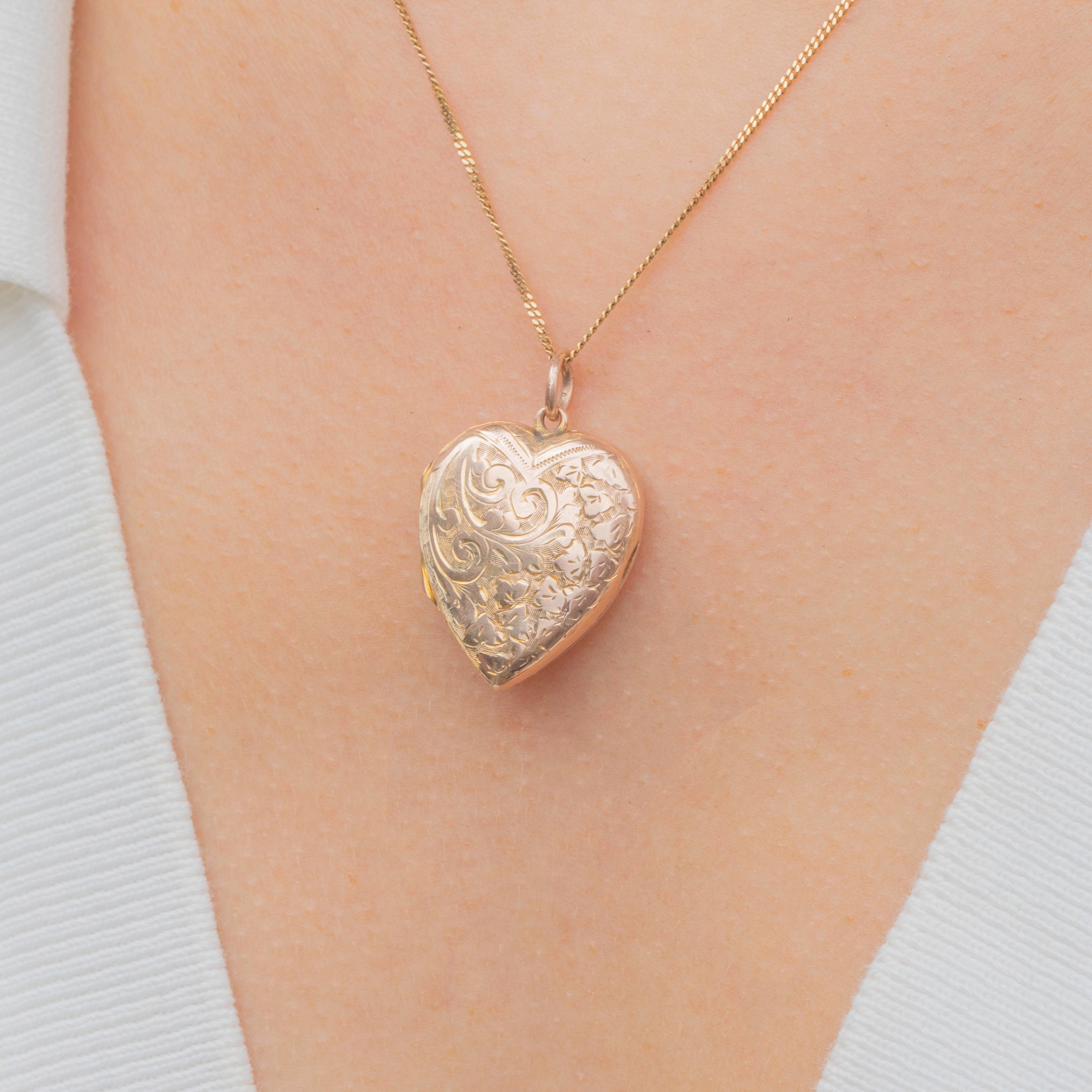 This Victorian 9ct Gold engraved heart locket is a beautiful way to cherish your nearest and dearest. The entirety of the locket is covered with swirling ivy and acanthus leaves, highly romantic Victorian motifs.