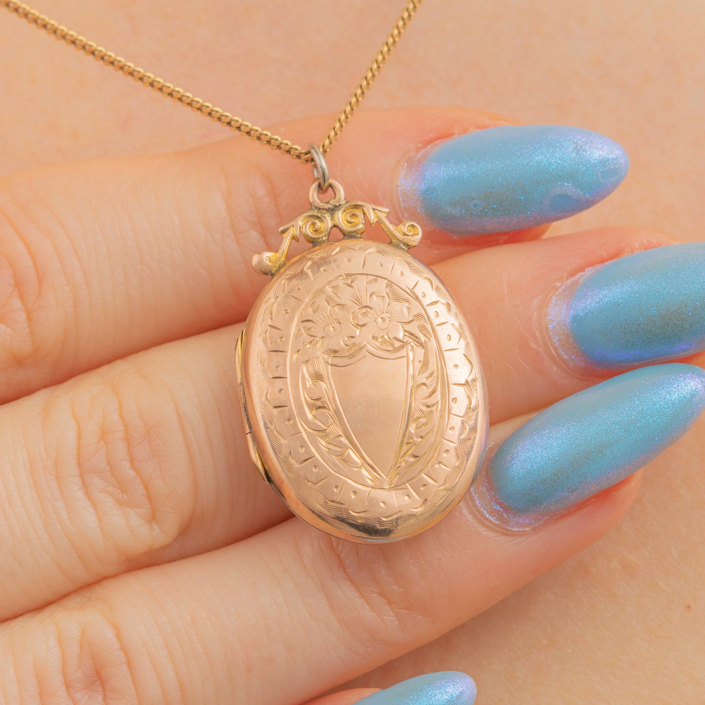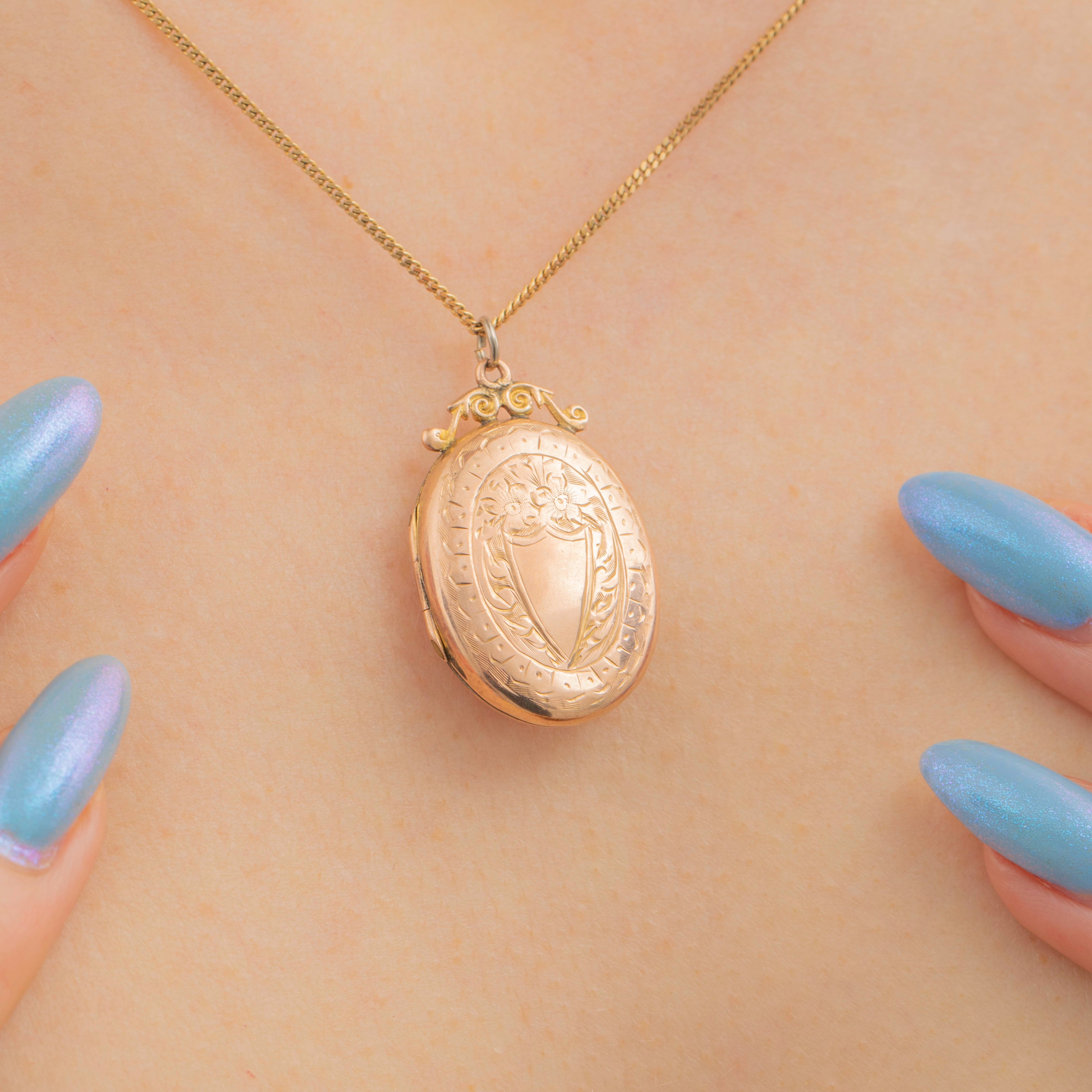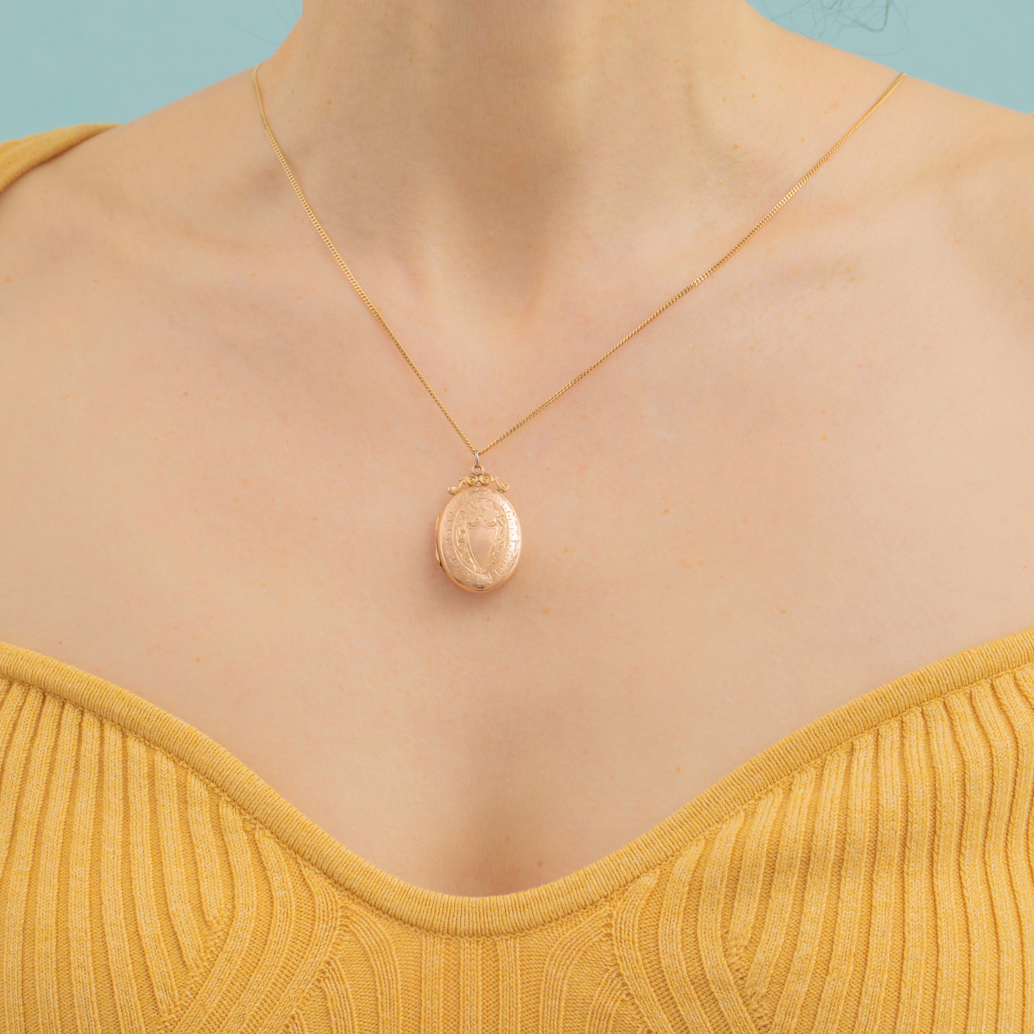 This antique 9ct Gold engraved oval locket is a wonderful keepsake to wear close to your heart!