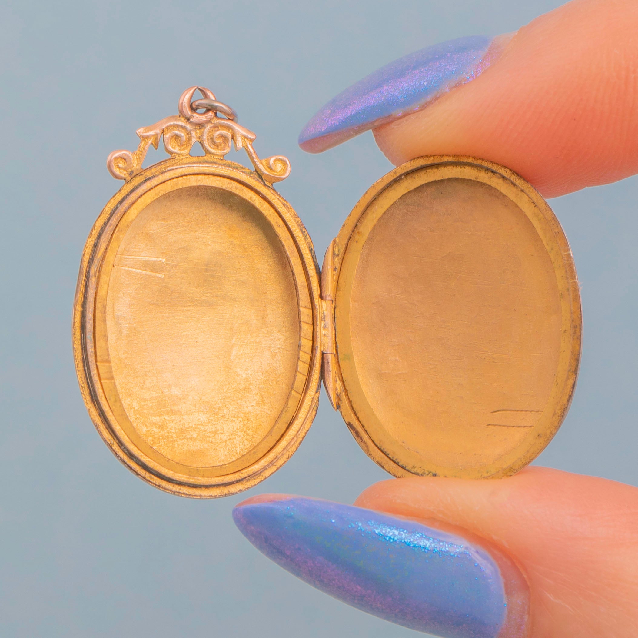 Antique 9ct Gold Engraved Oval Locket