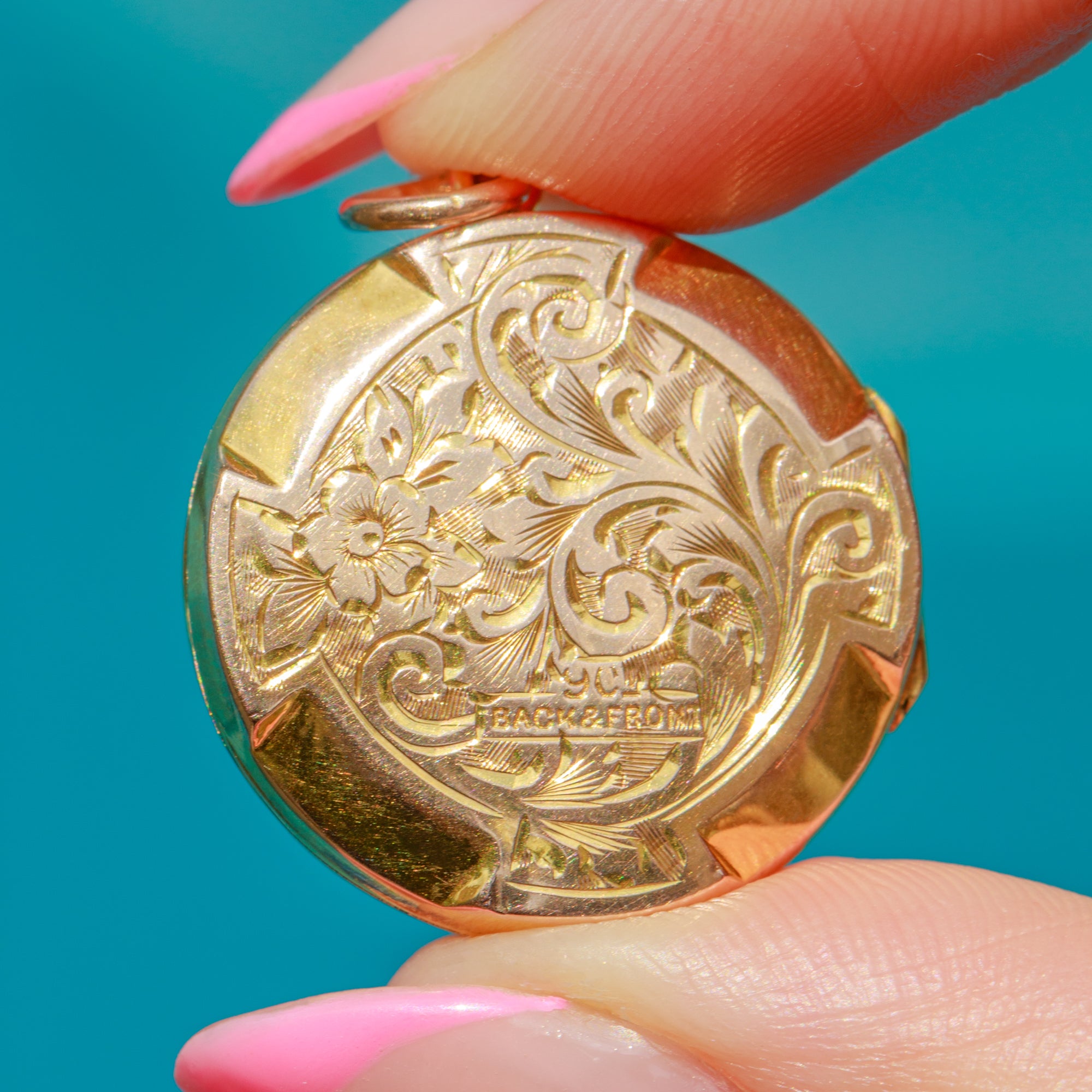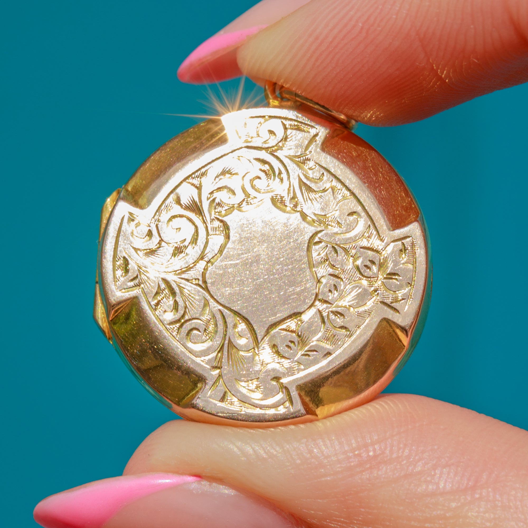 A romantic and charming antique 9ct Gold engraved round locket! This is a splendid piece, rich in character and ready to be made yours.
