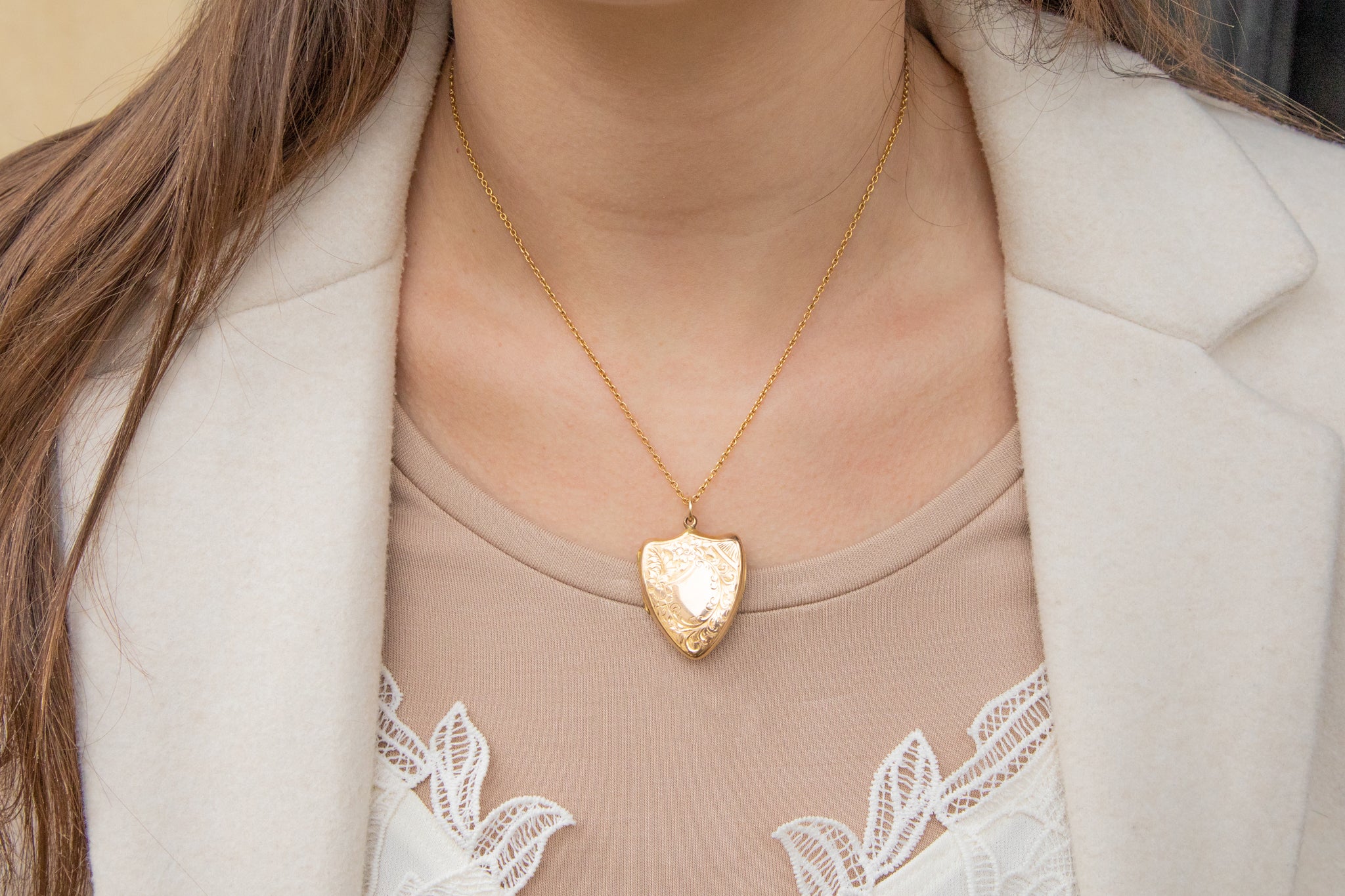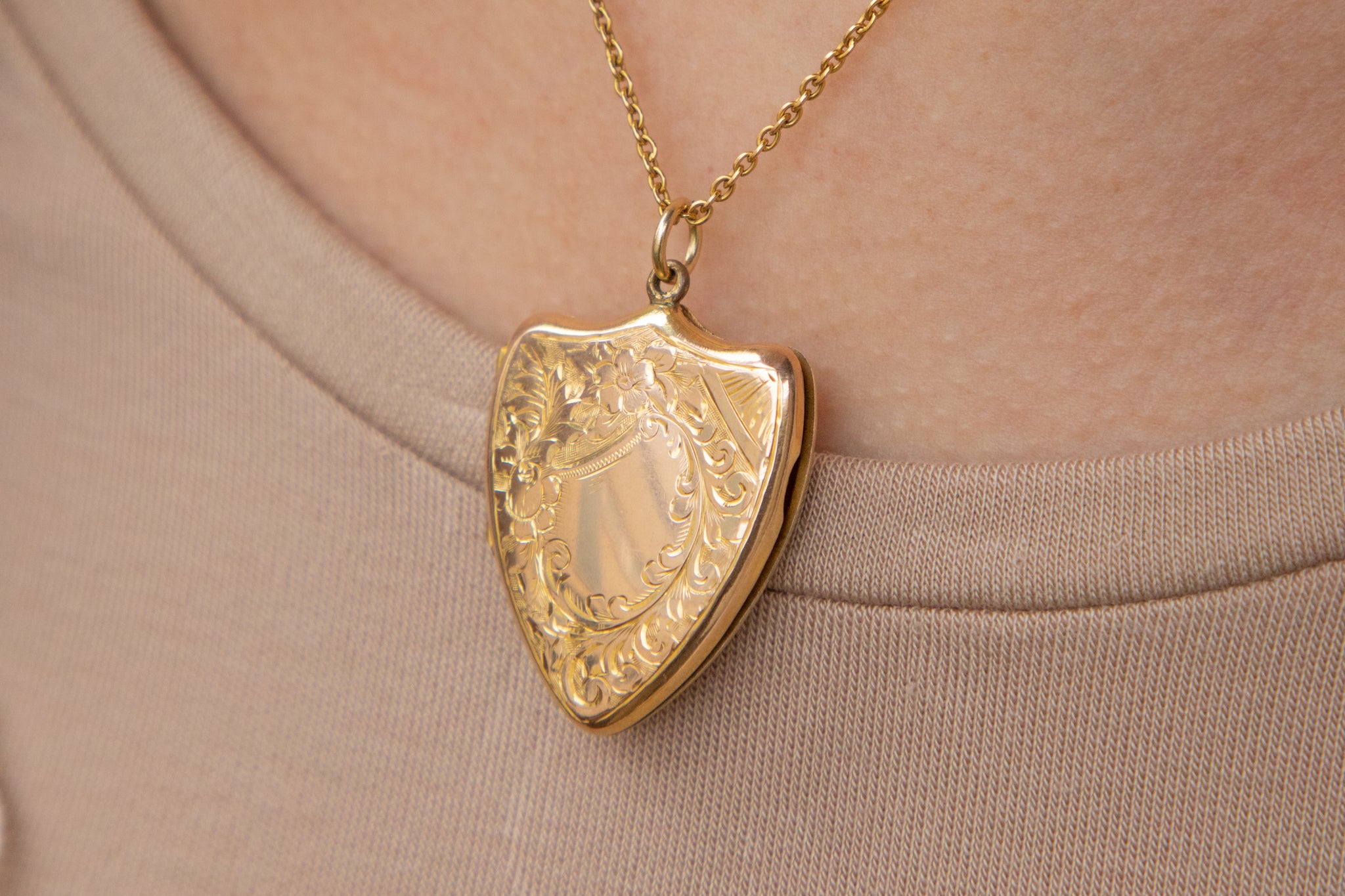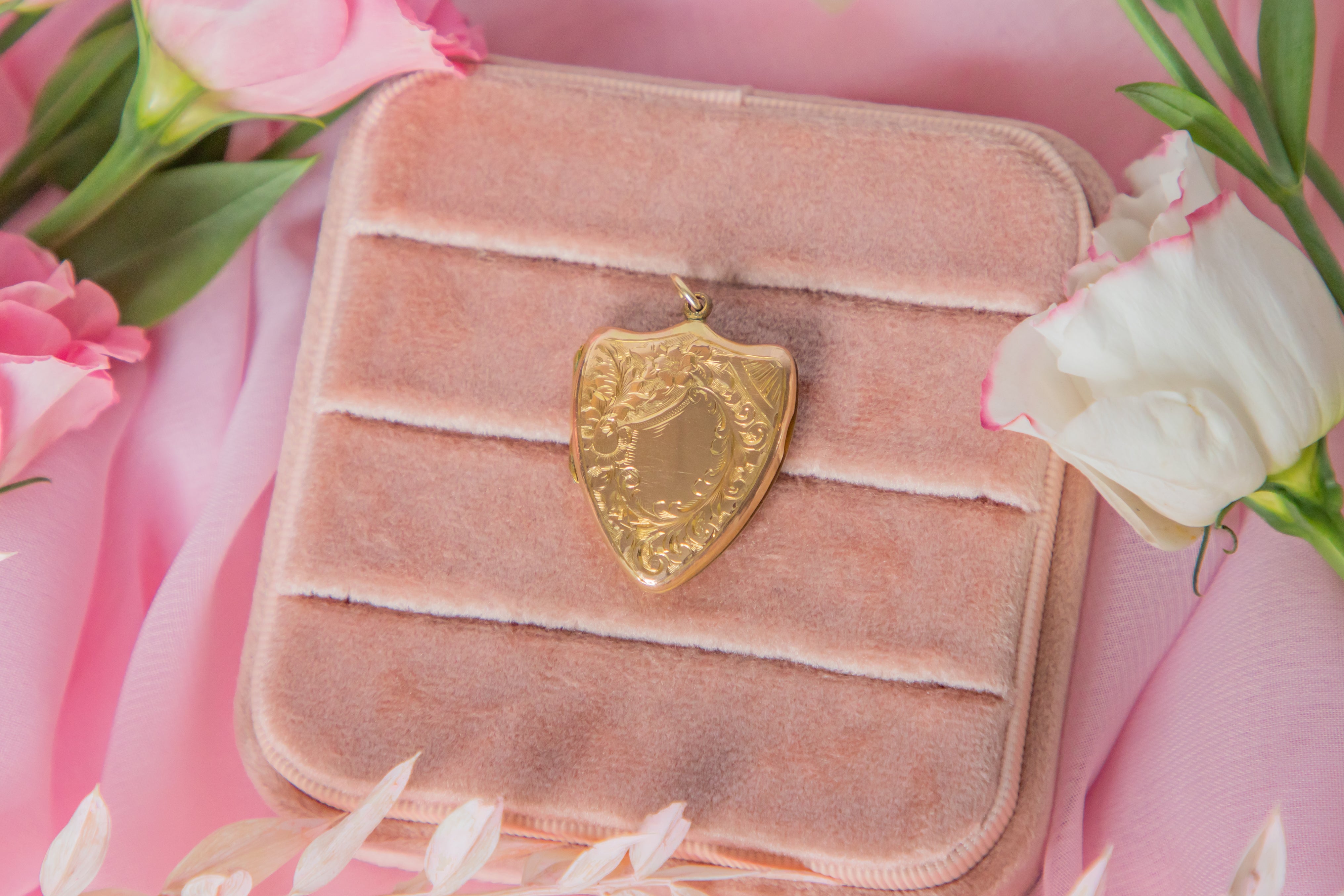 Antique 9ct Gold Engraved Shield Locket