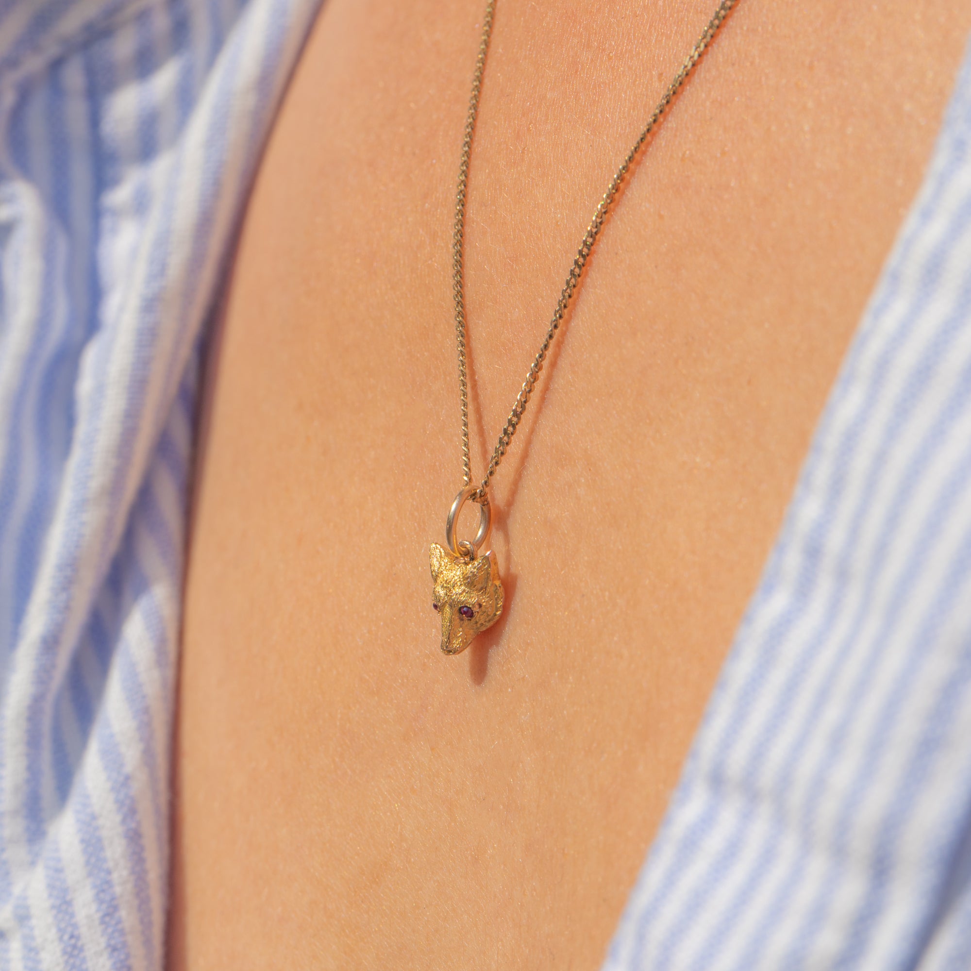 Antique 9ct Gold Fox Charm, Ruby Eyes