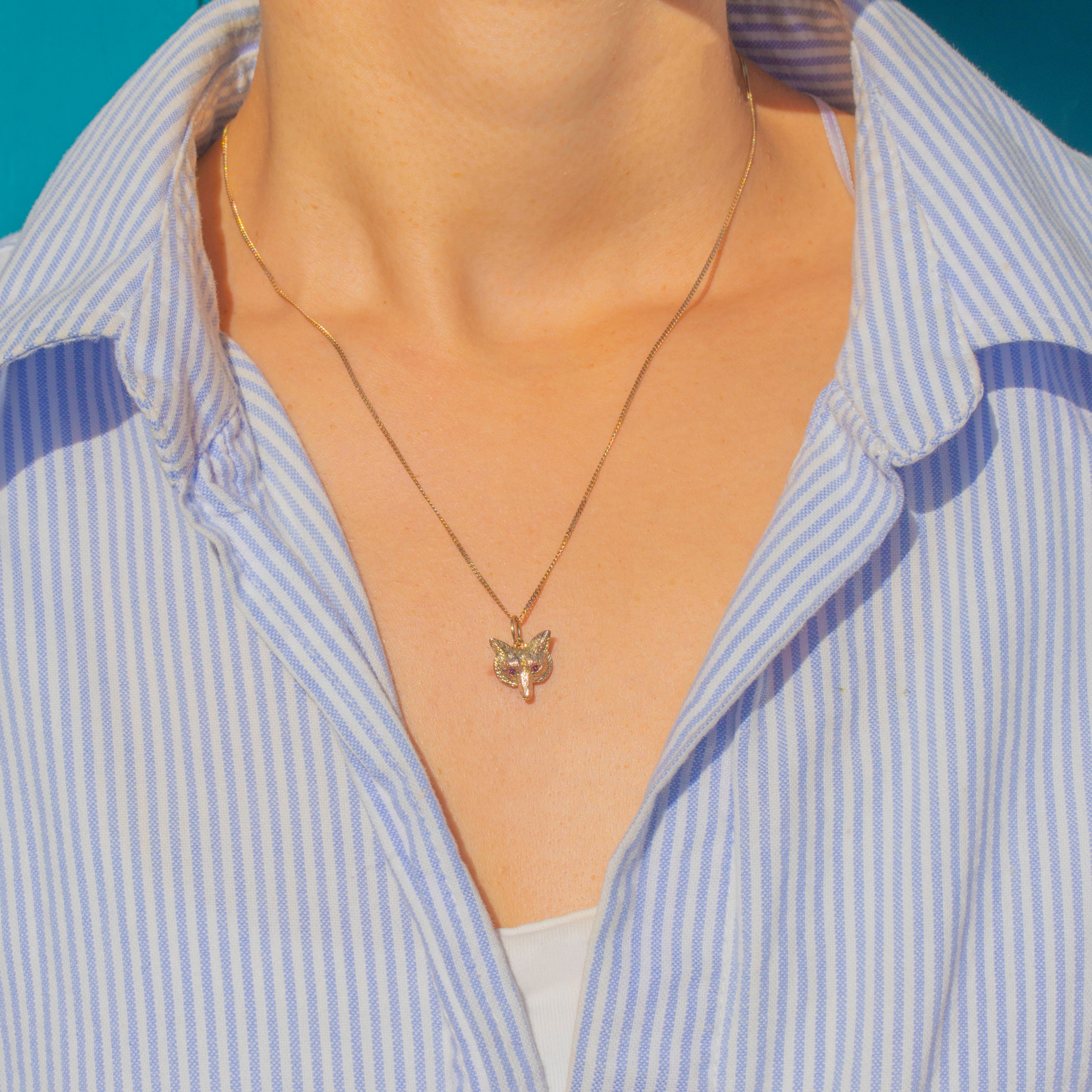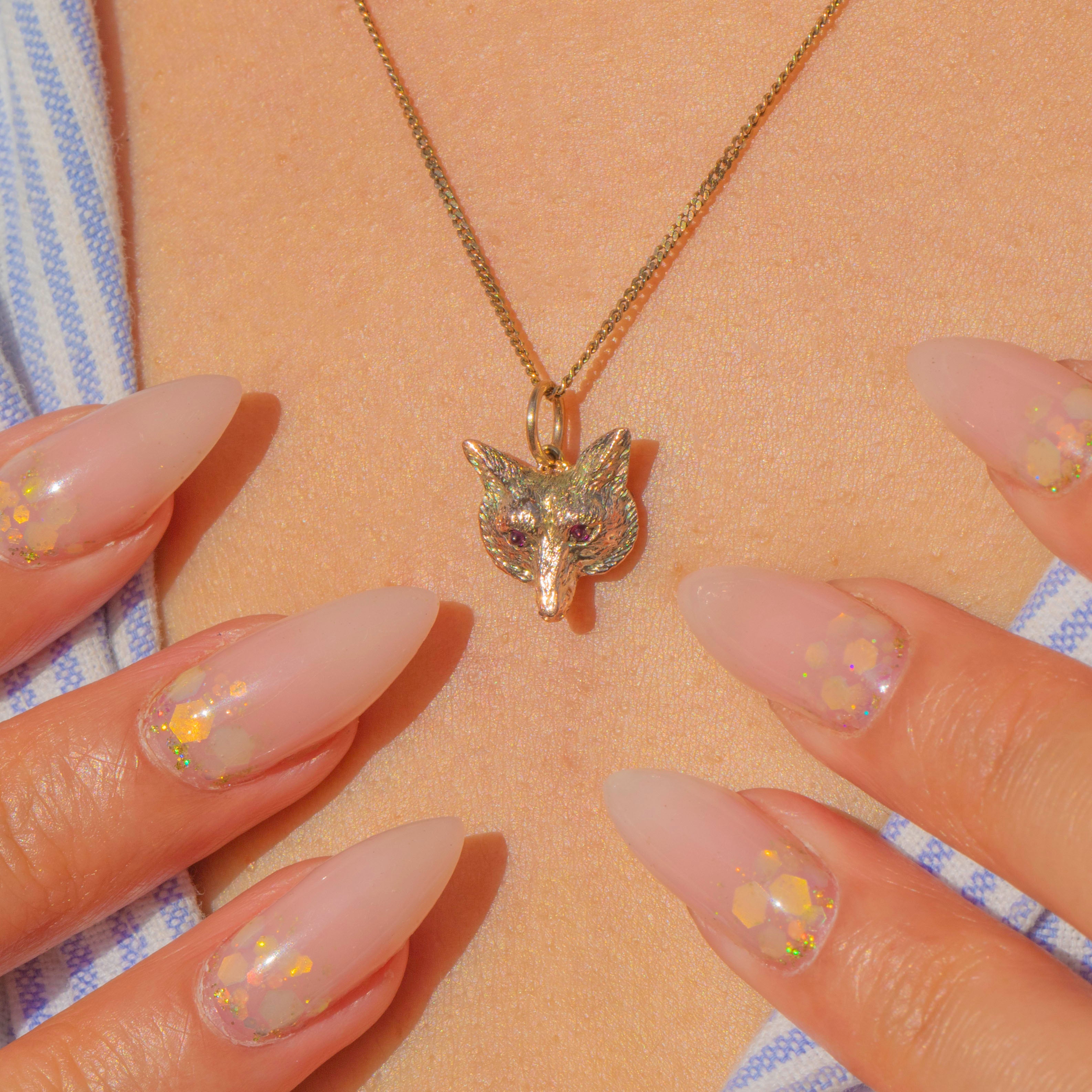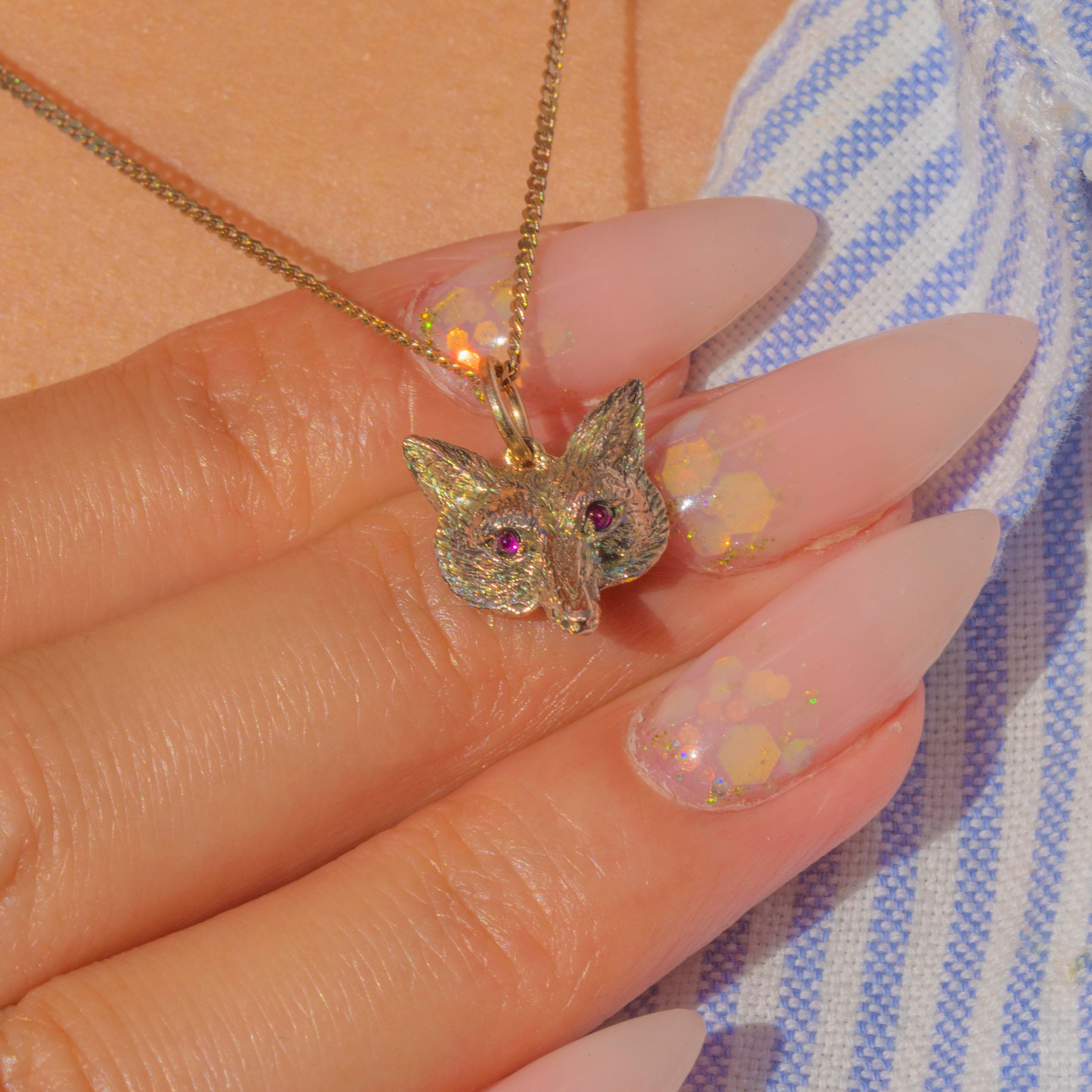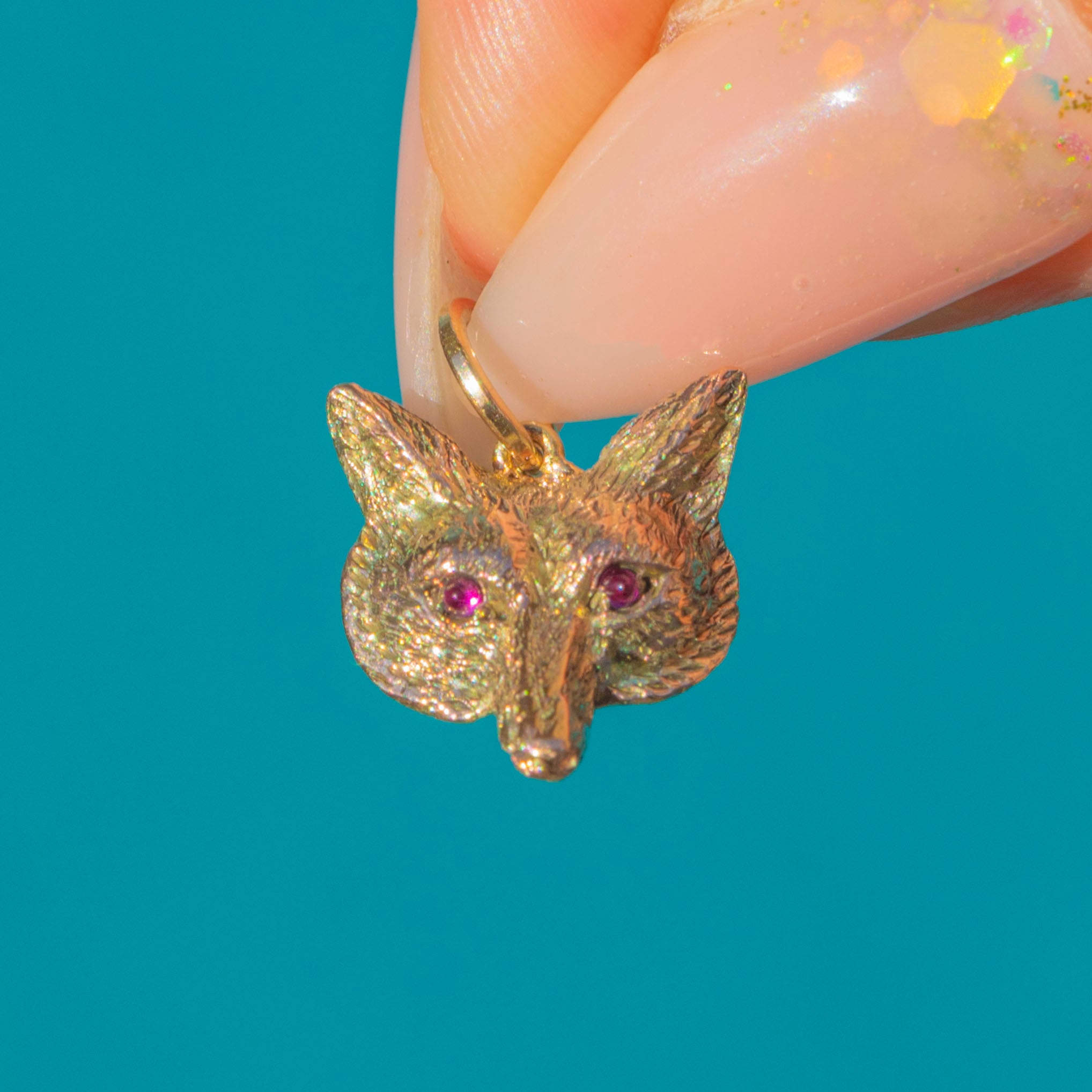 This characterful Victorian fox head charm is finely crafted in 9ct Gold. The eyes are set with vivid red Rubies, likely synthetic, given the age, lending the piece a bright and watchful expression.