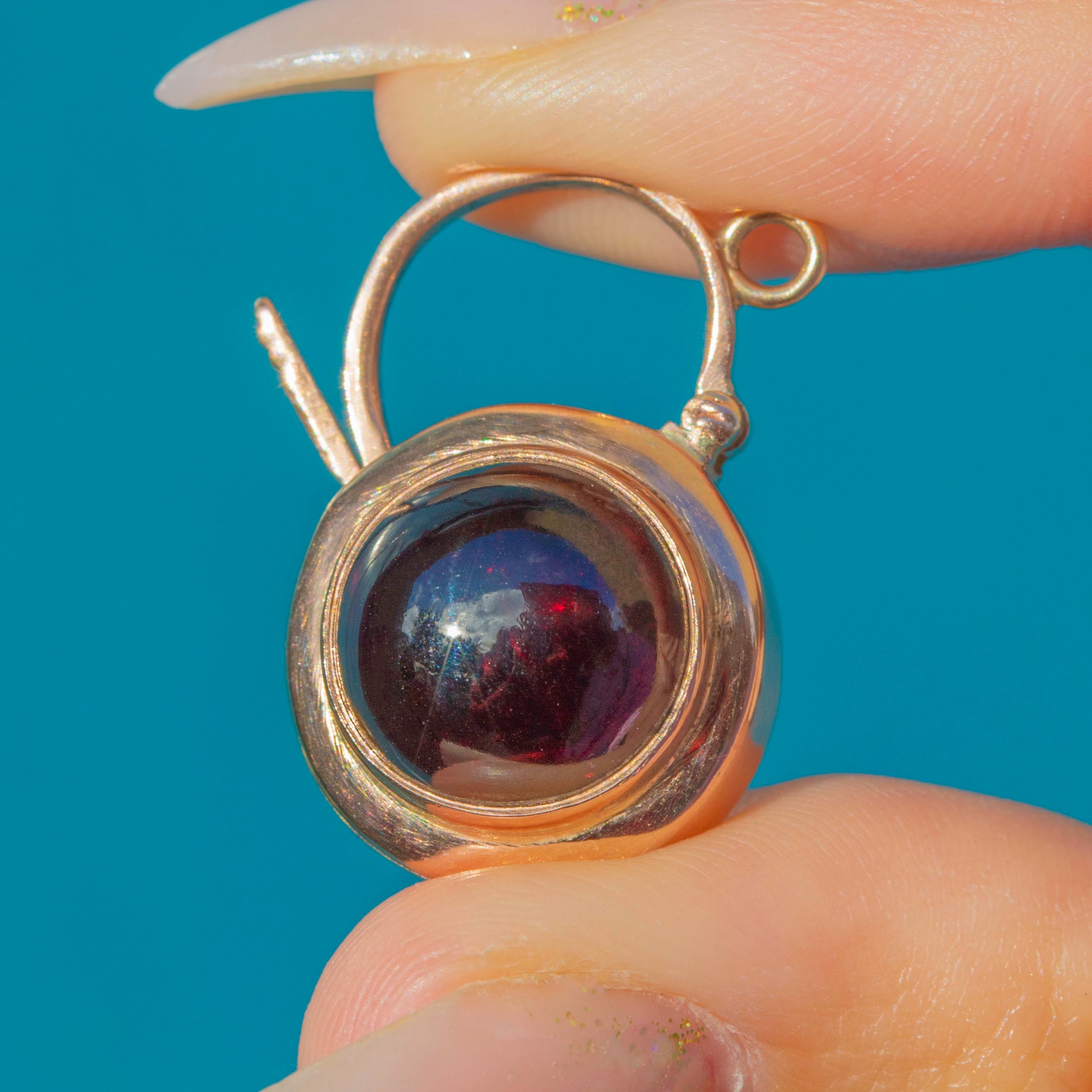 Antique 9ct Gold Garnet Cabochon Padlock Charm- 5.70ct Garnet