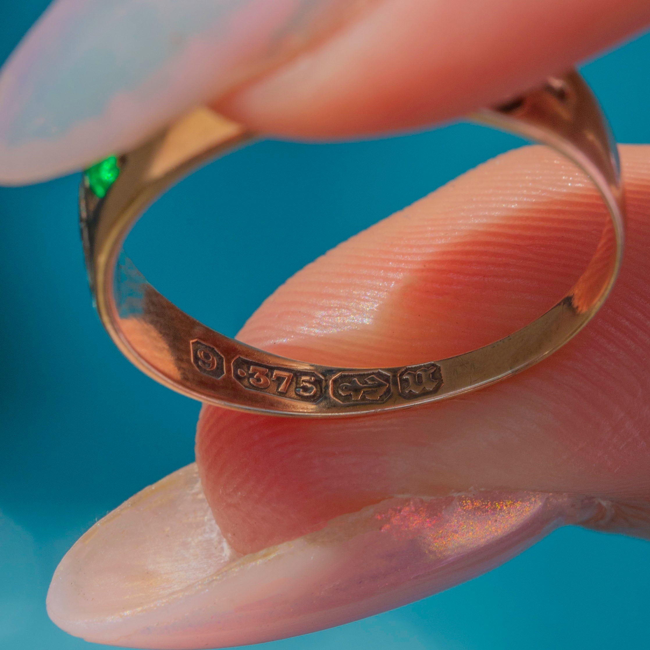Antique 9ct Gold Green Paste & Pearl Gypsy Ring c.1894