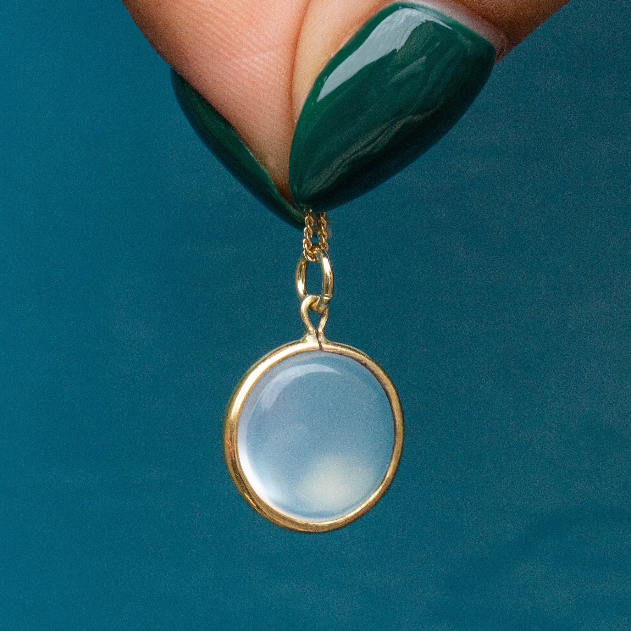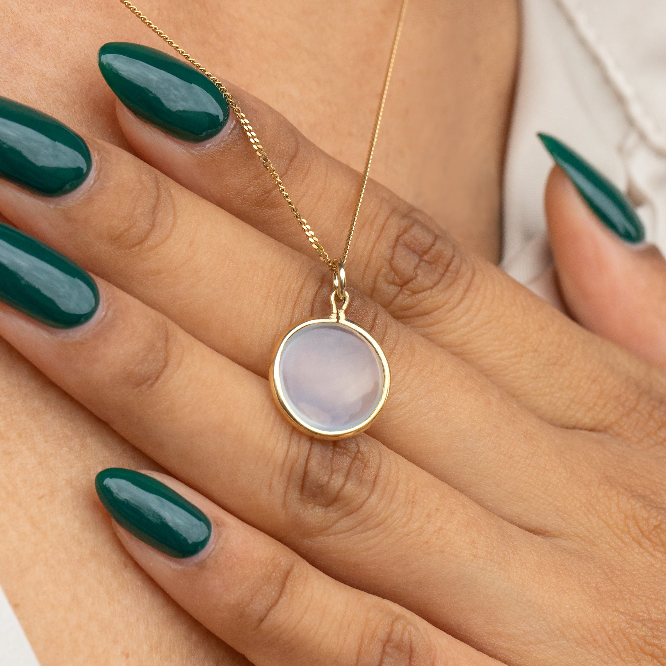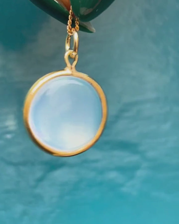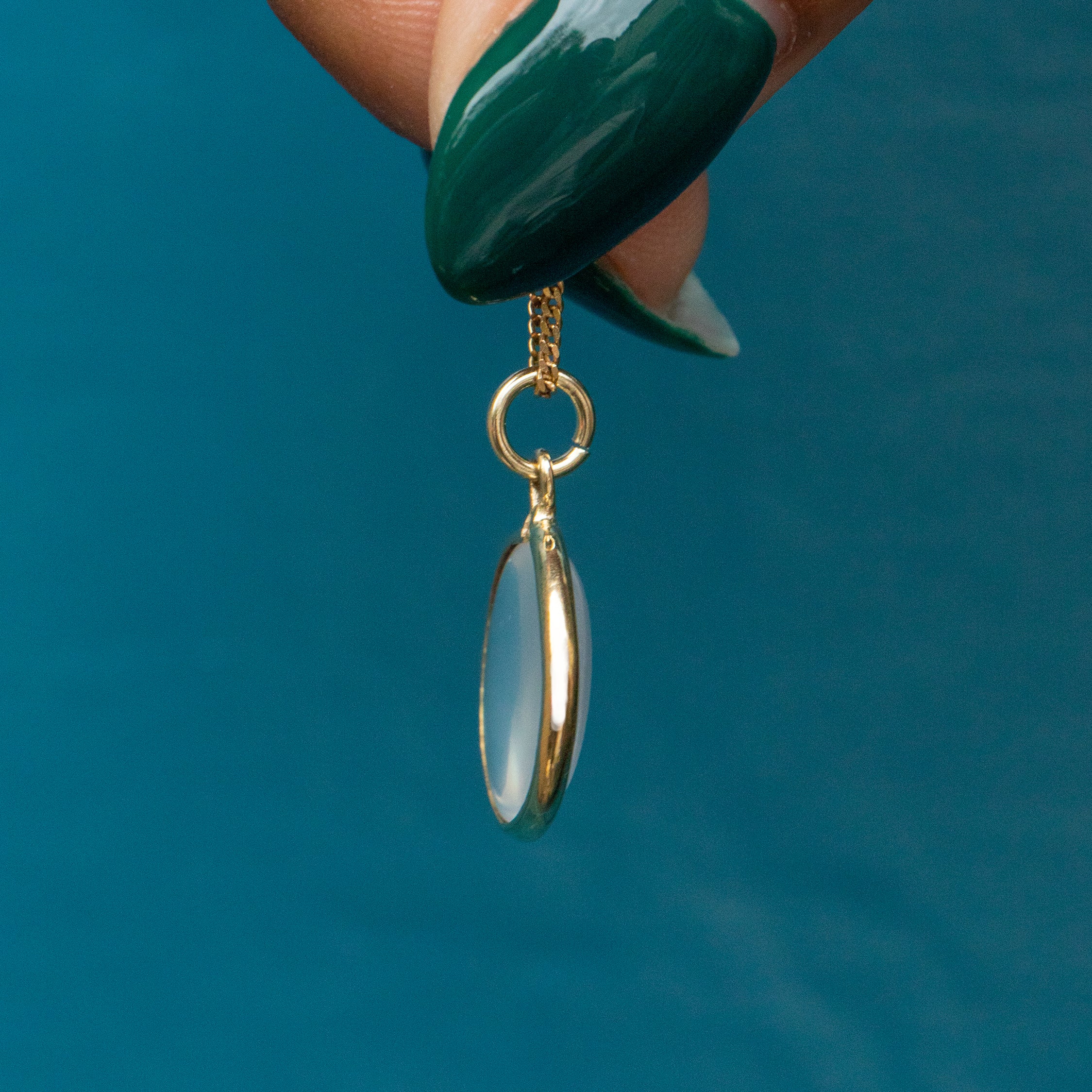 This Moonstone charm will sit perfectly suspended from a fine Gold chain and is ideal for everyday wear. Stack her alongside your other gems, or simply wear her alone to add some Victorian charm to your look.
