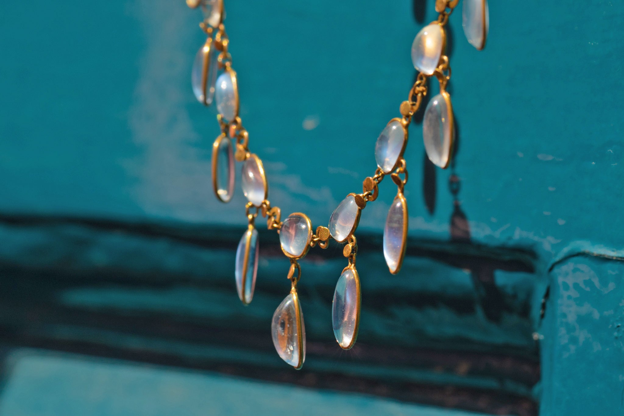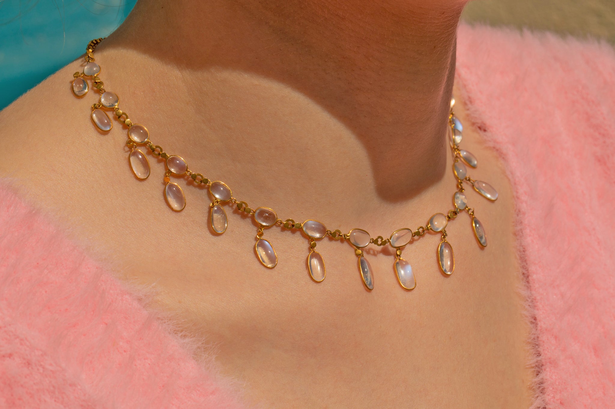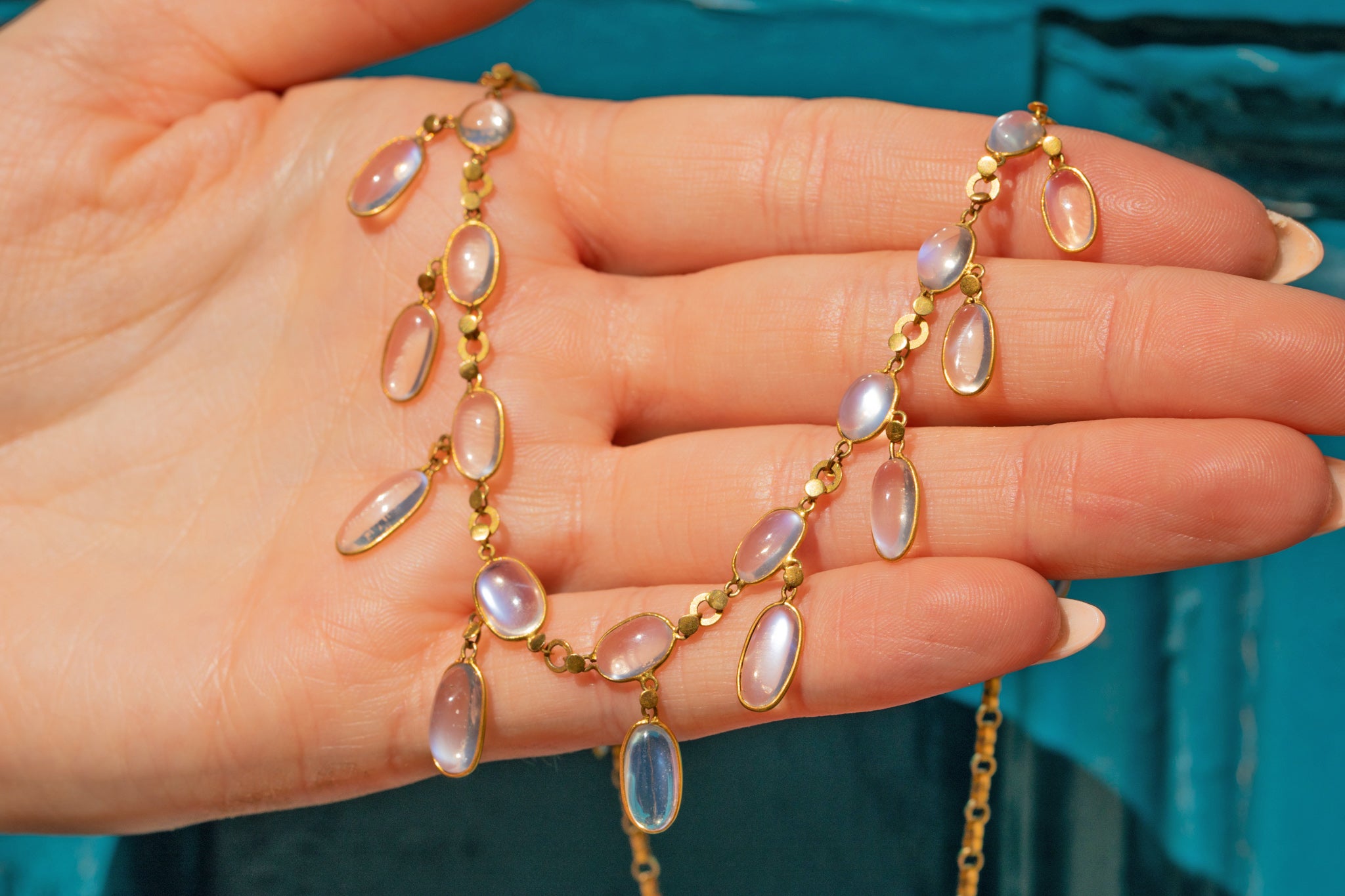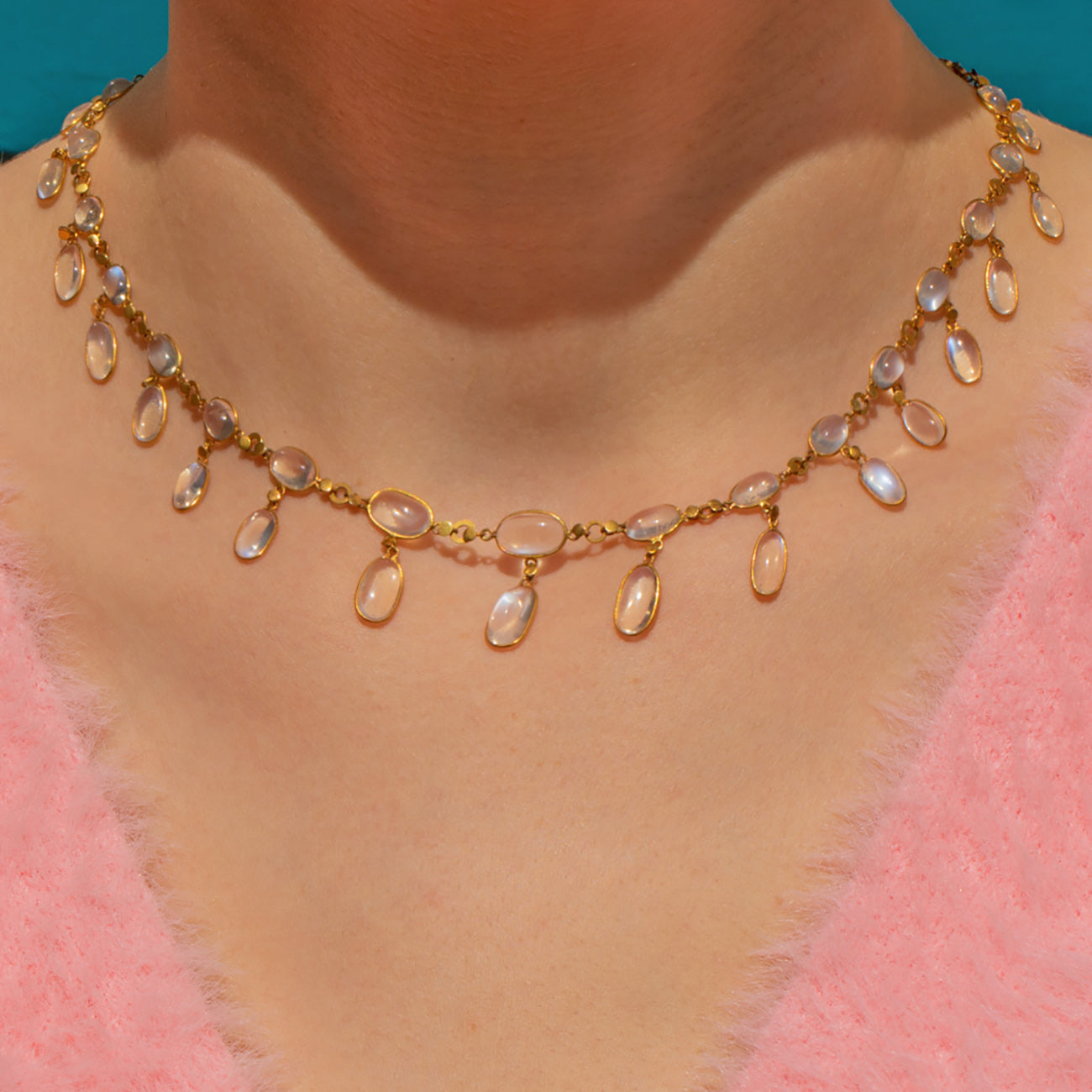 Antique 9ct Gold Moonstone Fringe Necklace, 24.40ct