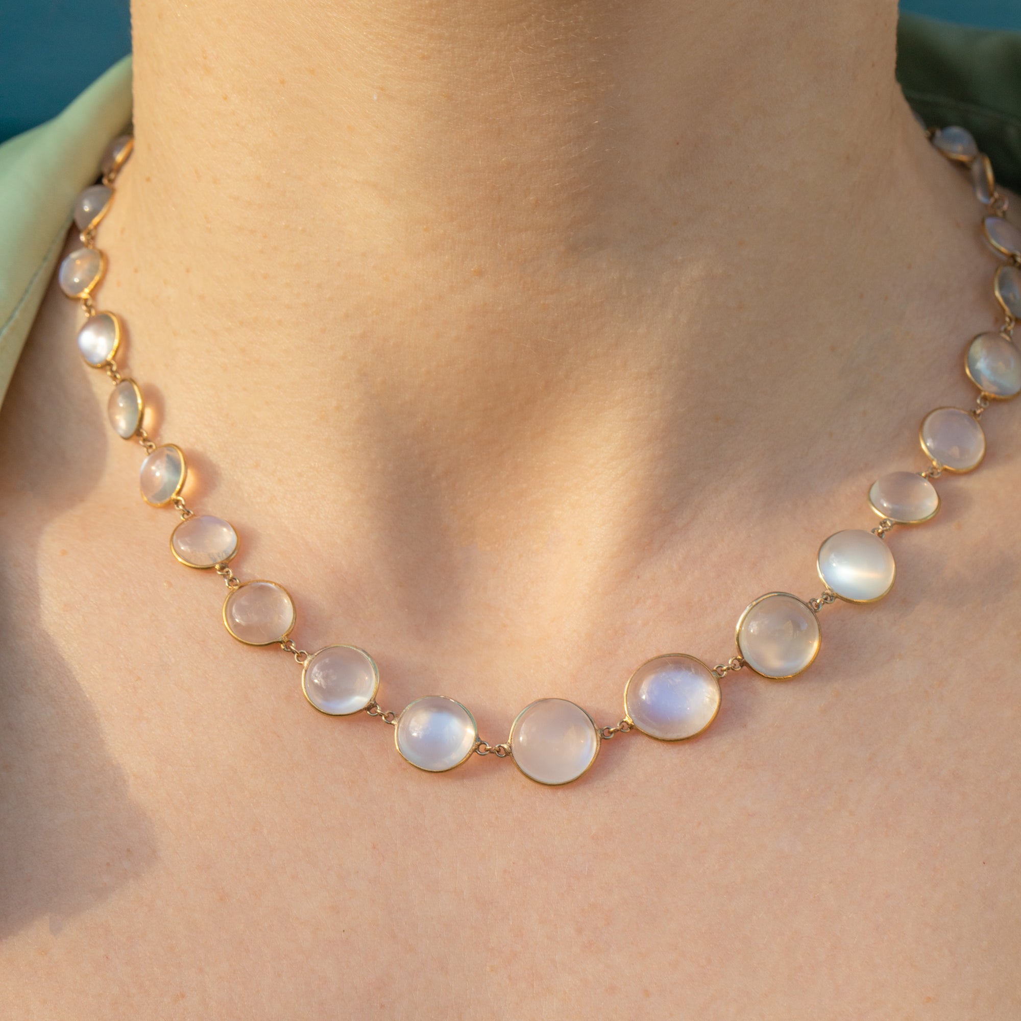 Antique 9ct Gold Moonstone Riviere Necklace, 47.90ct
