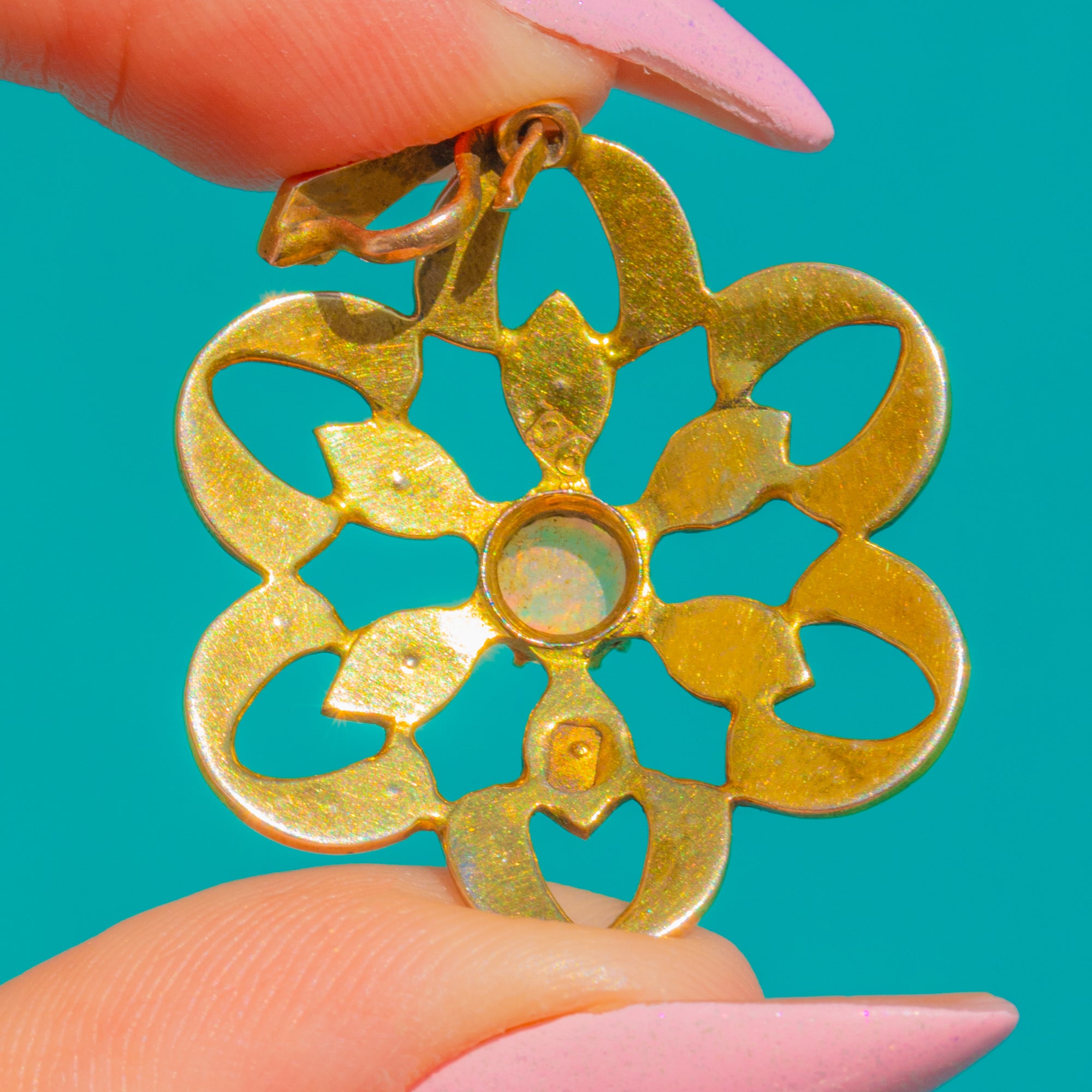 Antique 9ct Gold Opal & Pearl Flower Pendant