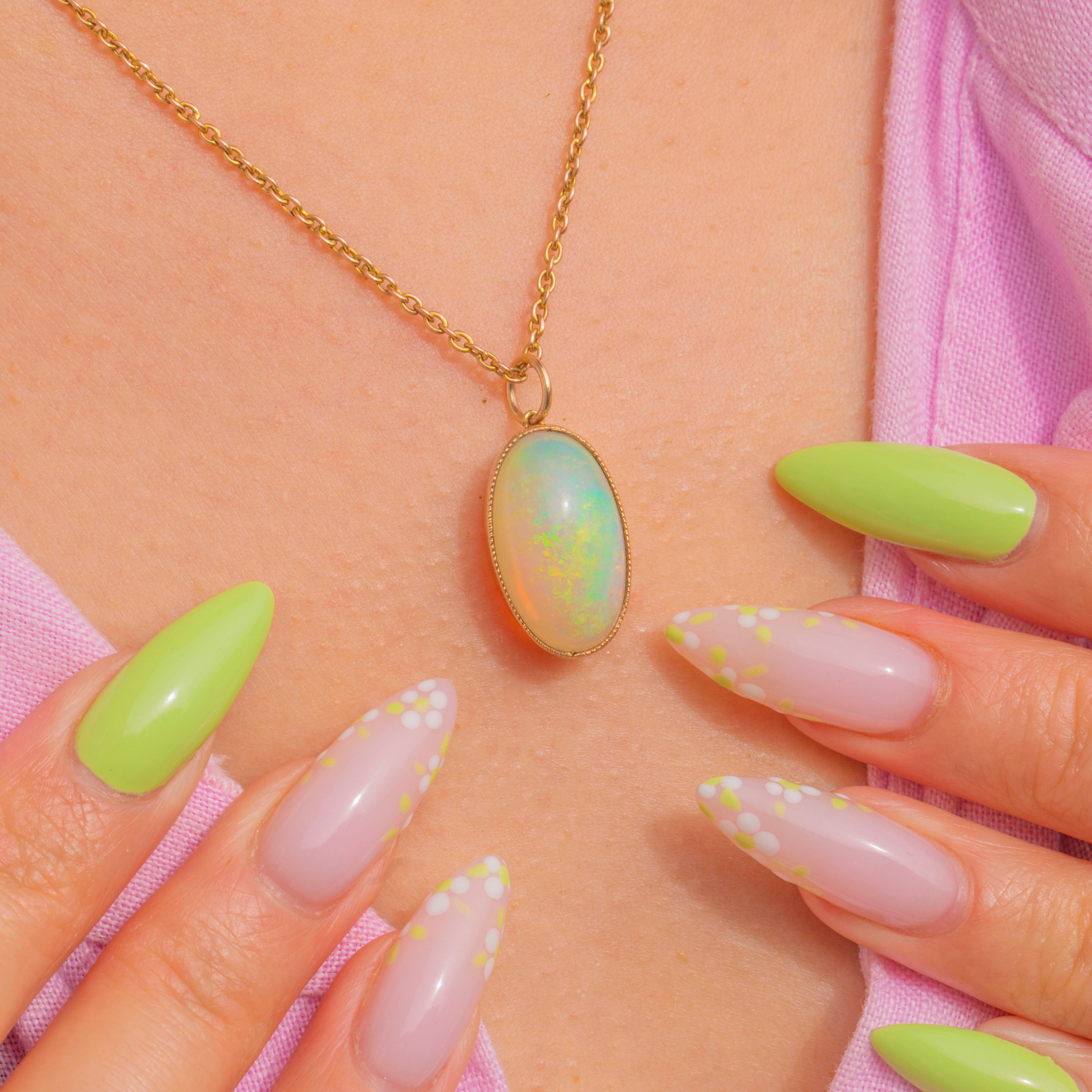 Elegantly stone-led, the Opal is framed by a refined bezel with subtle milgrain detailing and a neat jump ring. Understated yet luxurious, it’s a timeless piece that brings the ethereal beauty of Opal to the fore—perfect worn solo or layered for a glow that feels both classic and captivating.