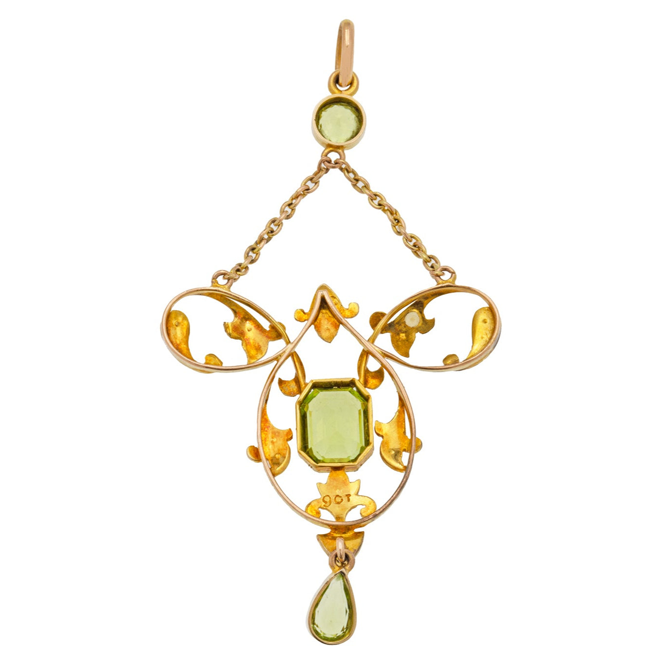 Antique 9ct Gold Peridot Pearl Pendant
