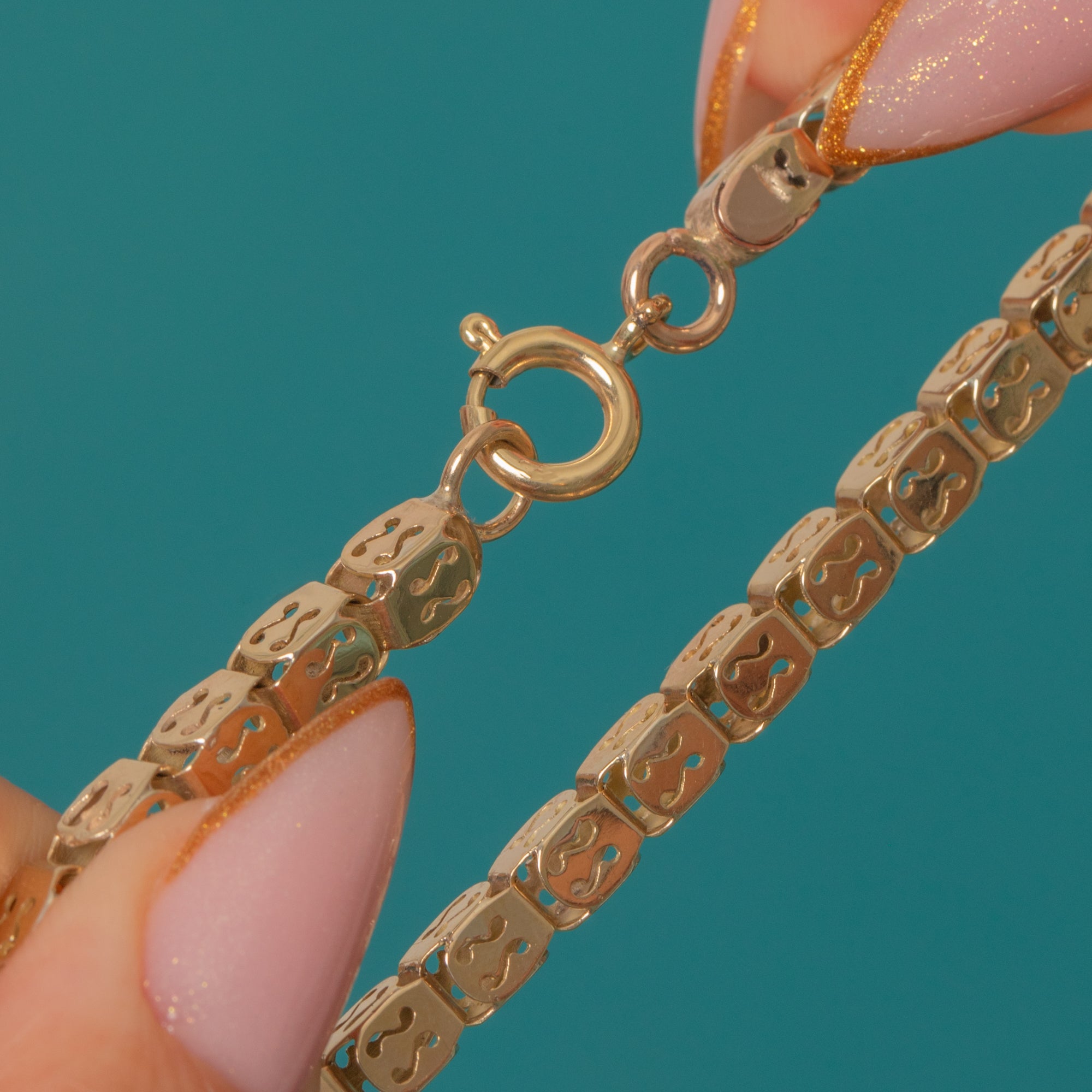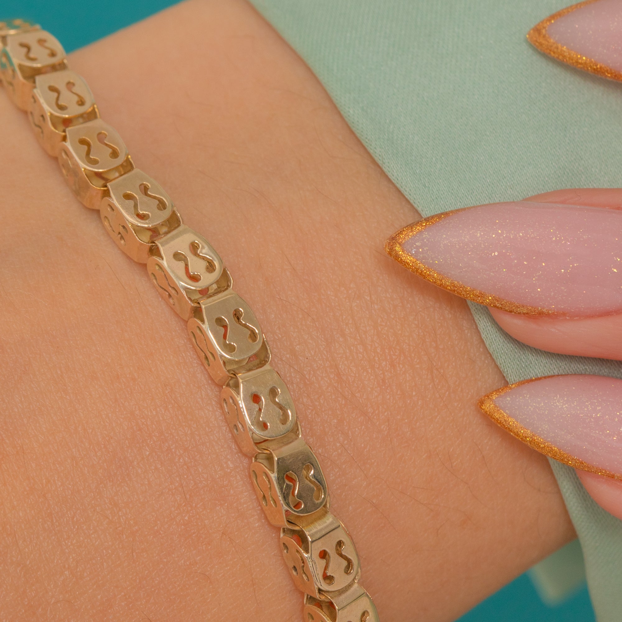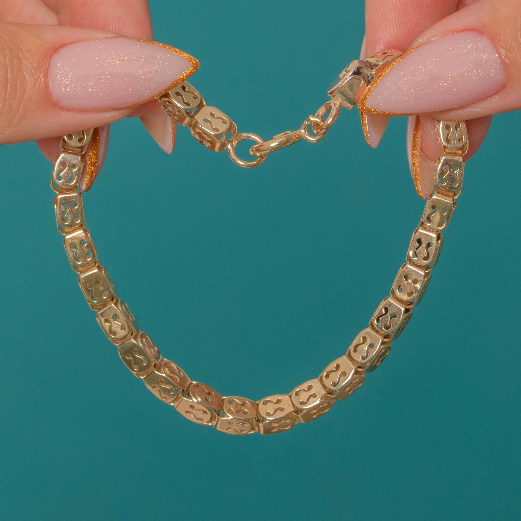 Each link is intricately shaped, allowing light to play through the openings and giving the bracelet a wonderfully elegant, airy feel.