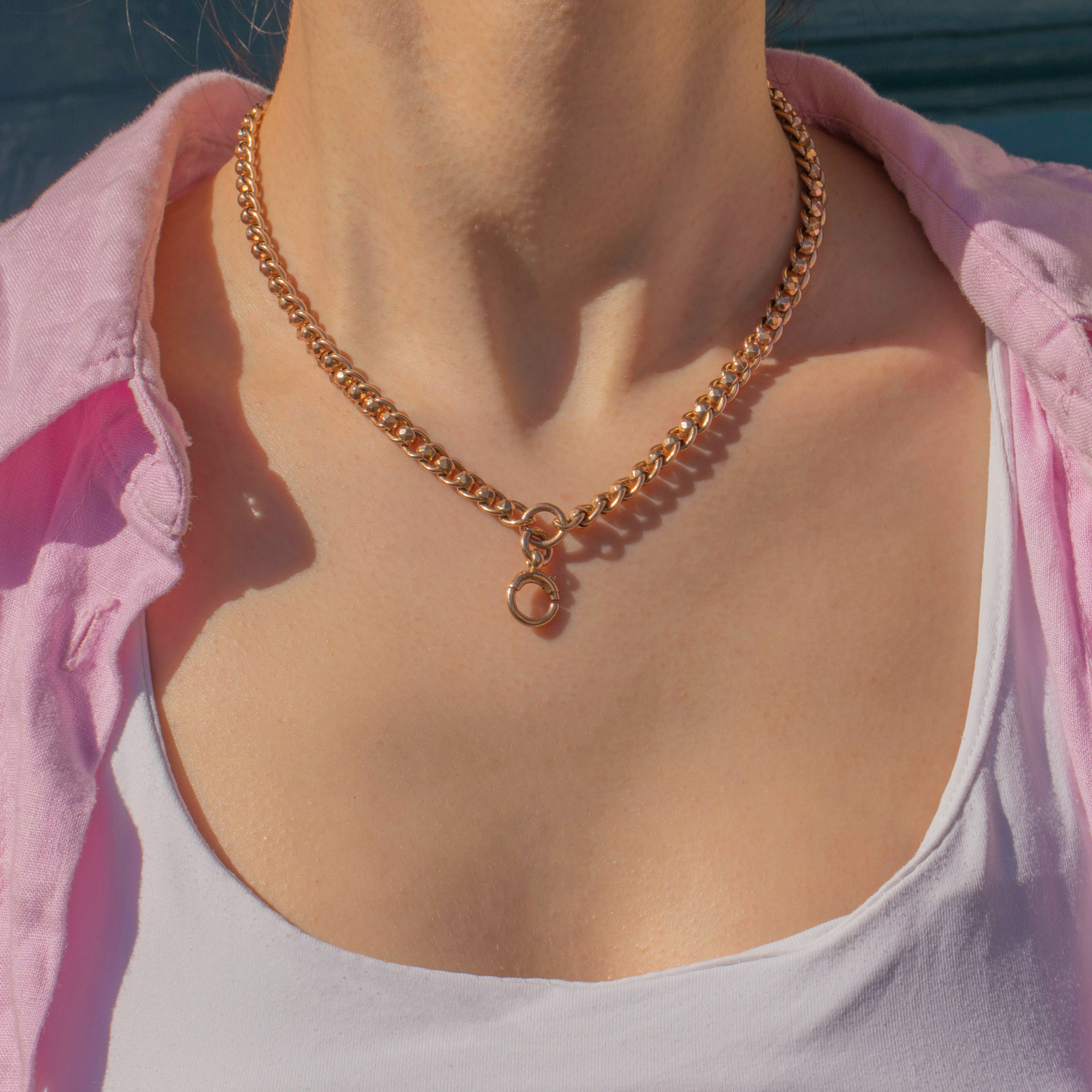We love the styling potential of this solid Gold chain, picture it with your own pendant, favourite charms, or with its original T-bar taking centrestage! This rollerball Albert chain is a wonderful investment piece that will remain in your family for generations to come.