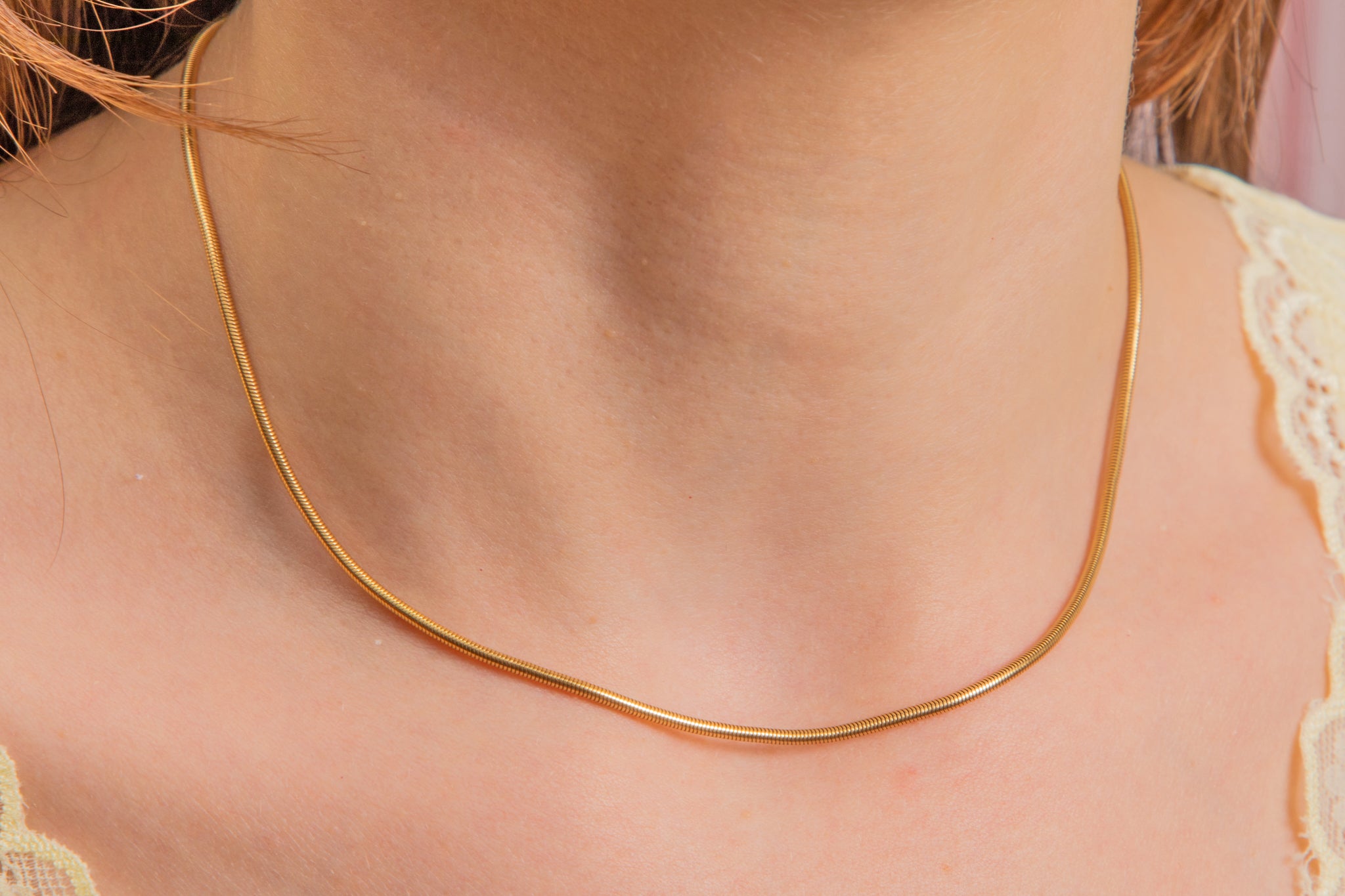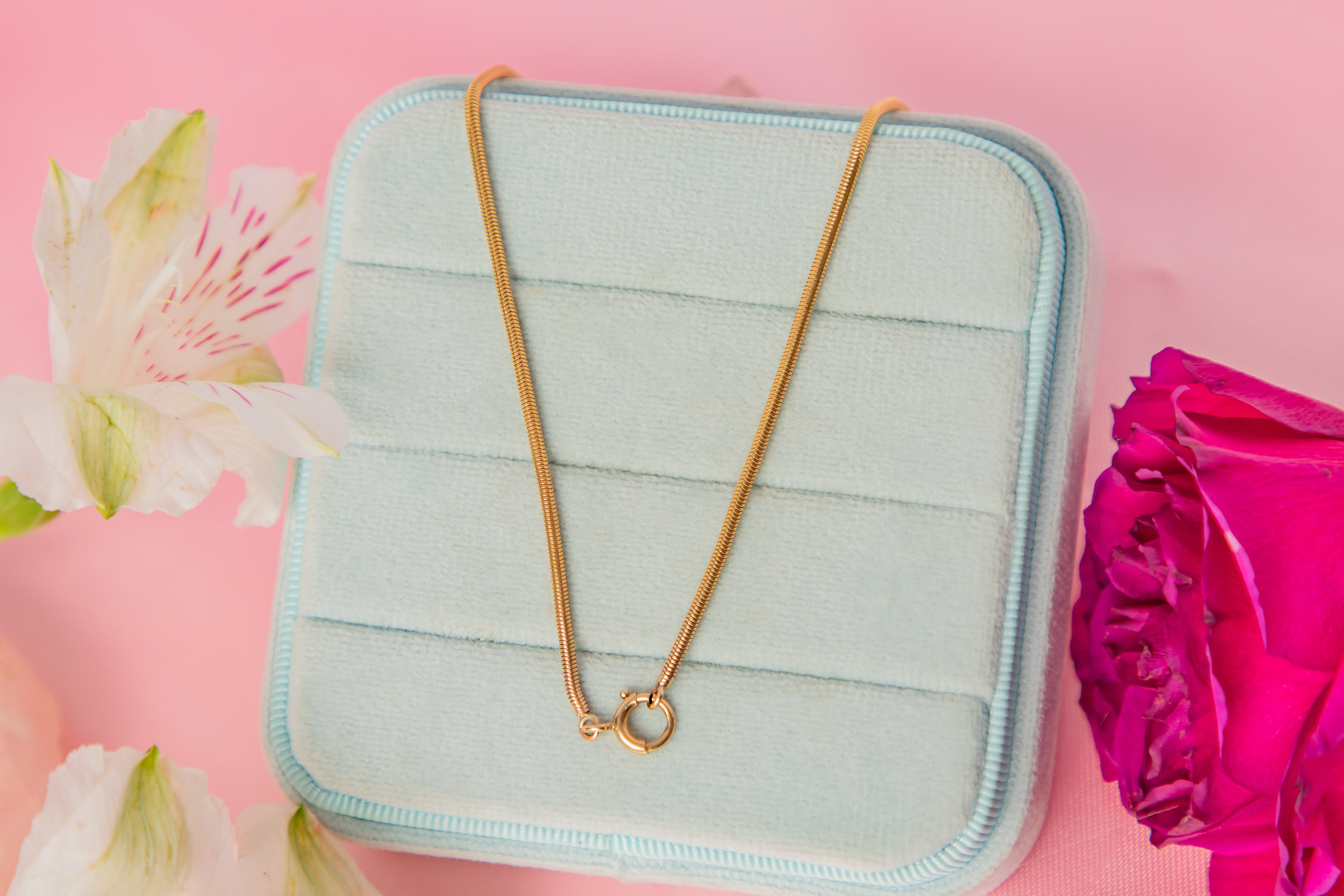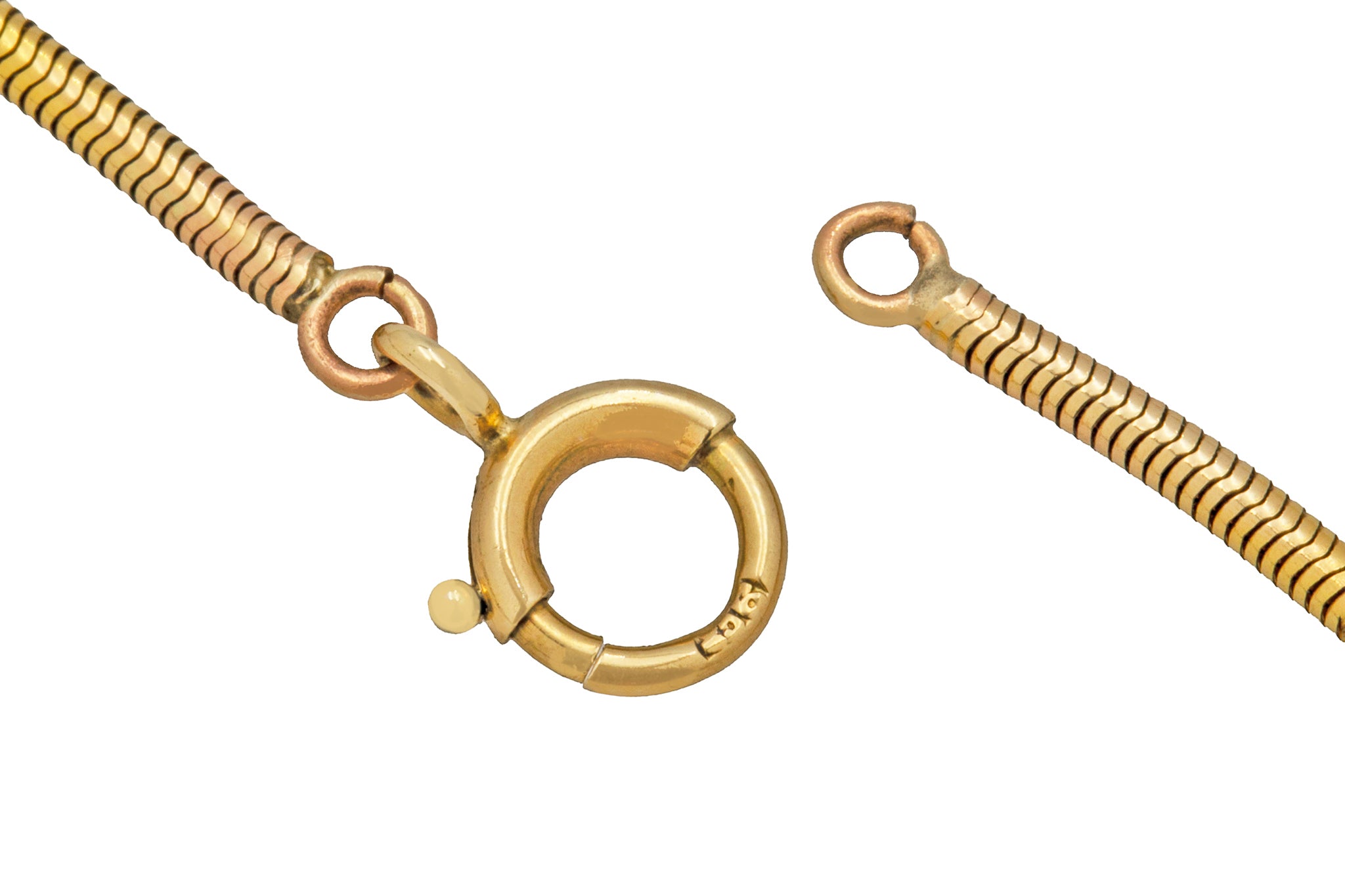 A splendid antique 9ct Gold snake chain, complete with an antique bolt-ring. Slinky and sumptuous, this Victorian snake chain has a fluid feel and a richly saturated hue.
