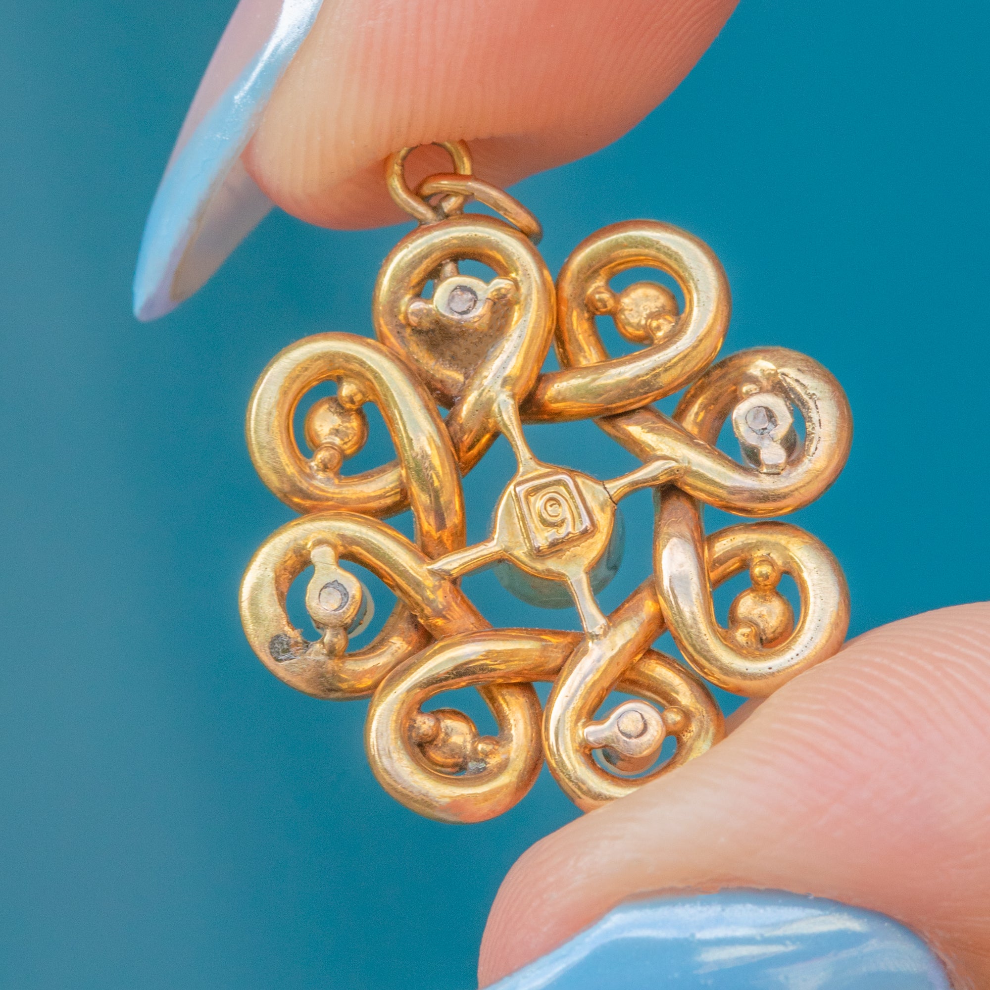 STAMPS: 9 on back of pendant.
